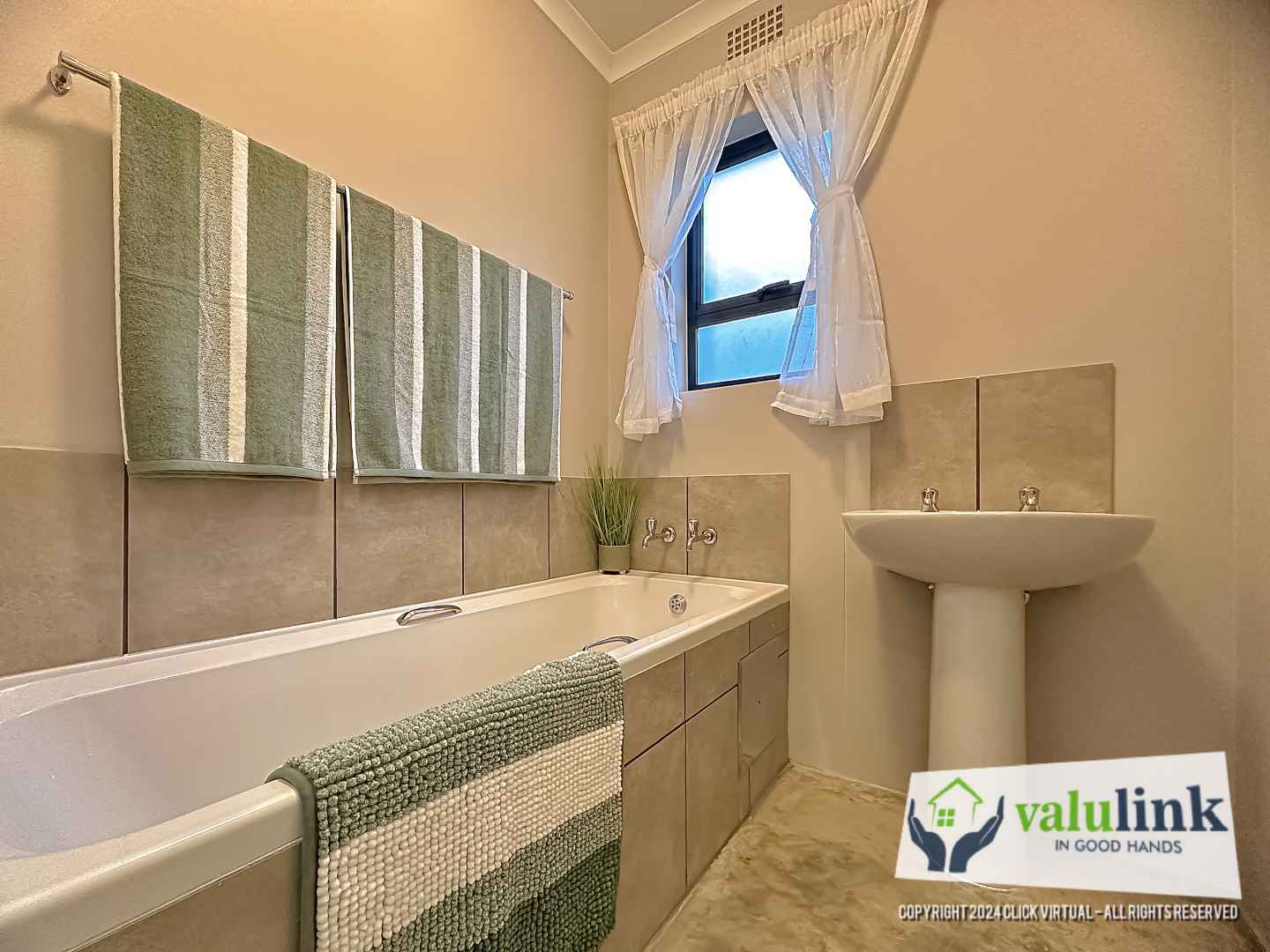 Separate bathroom with a bath and basin. Separate toilet .