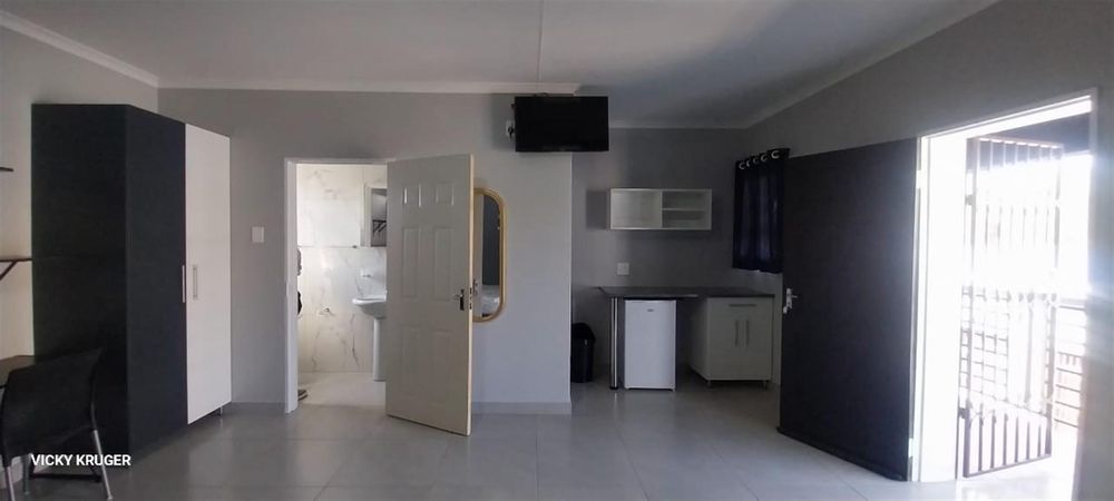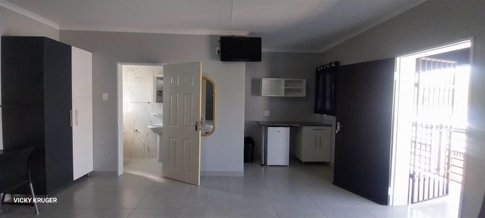 For communal living, the property offers two fully equipped kitchens, each boasting built-in cupboards, a hob, an under-counter oven, and a scullery. Entertaining is a breeze with a built-in braai area, perfect for social gatherings.
