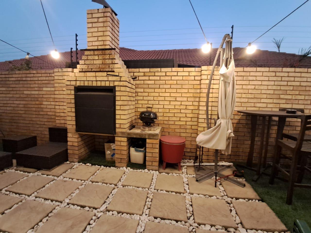 The spacious open-plan lounge and dining area provide a perfect space for family gatherings or entertaining guests. A sliding door leads you to the private patio, where you'll find a built-in braai, ideal for weekend barbecues. This area seamlessly connects to a neat, low-maintenance garden featuring synthetic grass—an oasis that is also pet-friendly.