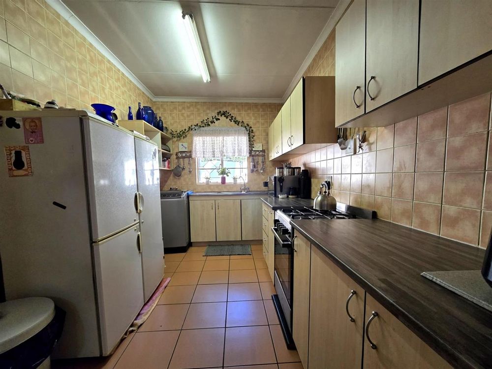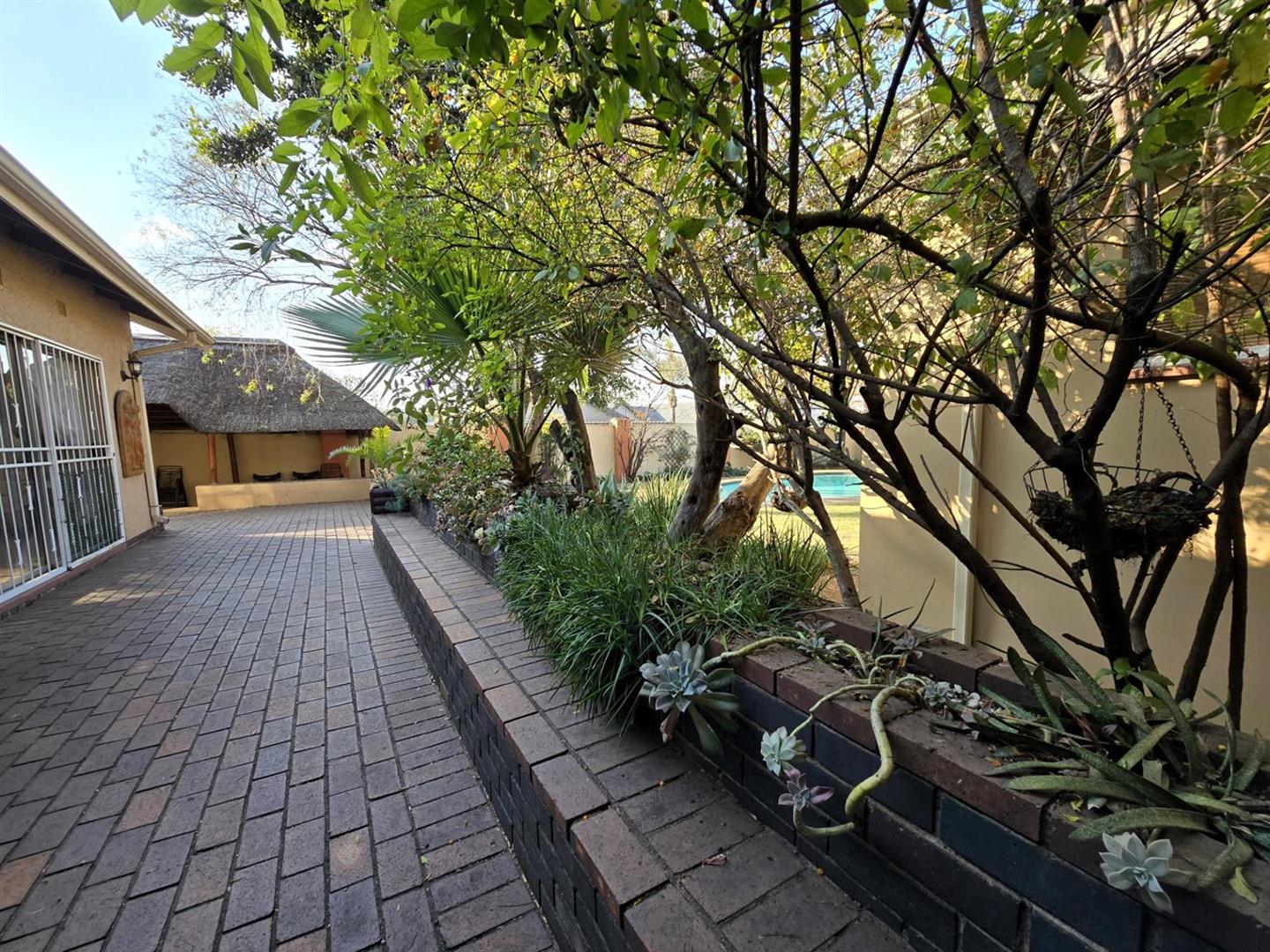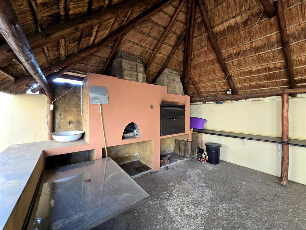 Step outside to discover a private oasis. The property features a sparkling swimming pool and an entertainment area complete with a built-in braai. The home is environmentally friendly, equipped with a solar system powered by 18 solar panels, significantly reducing energy costs.