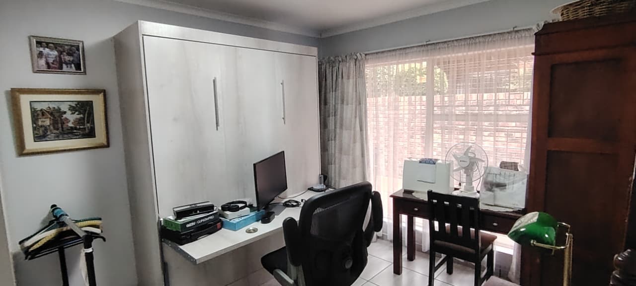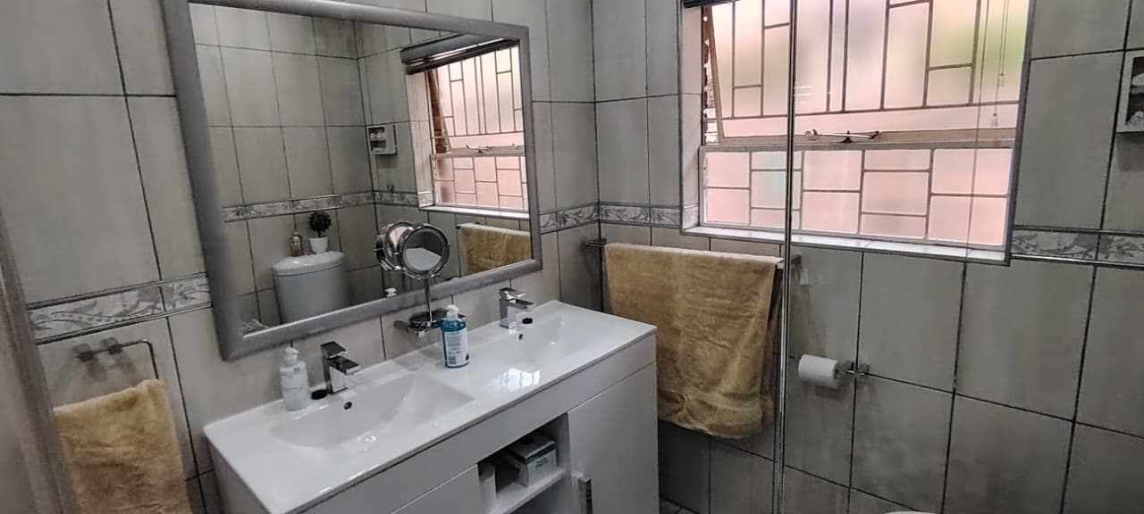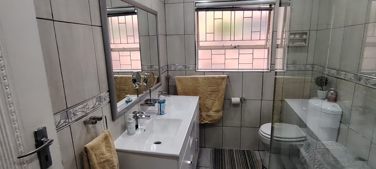 The unit features two generously sized bedrooms, each equipped with upgraded built-in cupboards to maximize storage. The fully tiled modern bathroom is both functional and stylish, offering a spacious shower and a gas geyser to efficiently manage your hot water needs.