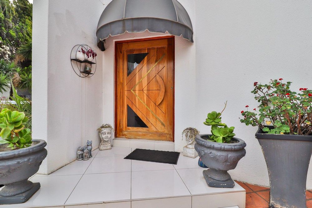 Upon entering, you are greeted by a sun-drenched entrance hall that leads to an open-plan lounge and dining area. Bathed in natural light and framed by glass doors, these spaces offer a seamless connection to the outdoors, where a charming patio and splash pool with a safety net await your enjoyment. The heart of the home is its exquisite kitchen, featuring sleek white gloss cupboards, Caesar stone countertops, a 5-plate gas stove, and an electric eye-level oven. There's ample space for a double-door fridge, and the adjoining scullery accommodates three additional appliances. For those who love to entertain, the private bar area and adjacent sunken entertainment room provide the perfect setting, complete with built-in cupboards, a built-in braai, and fitted blinds.
