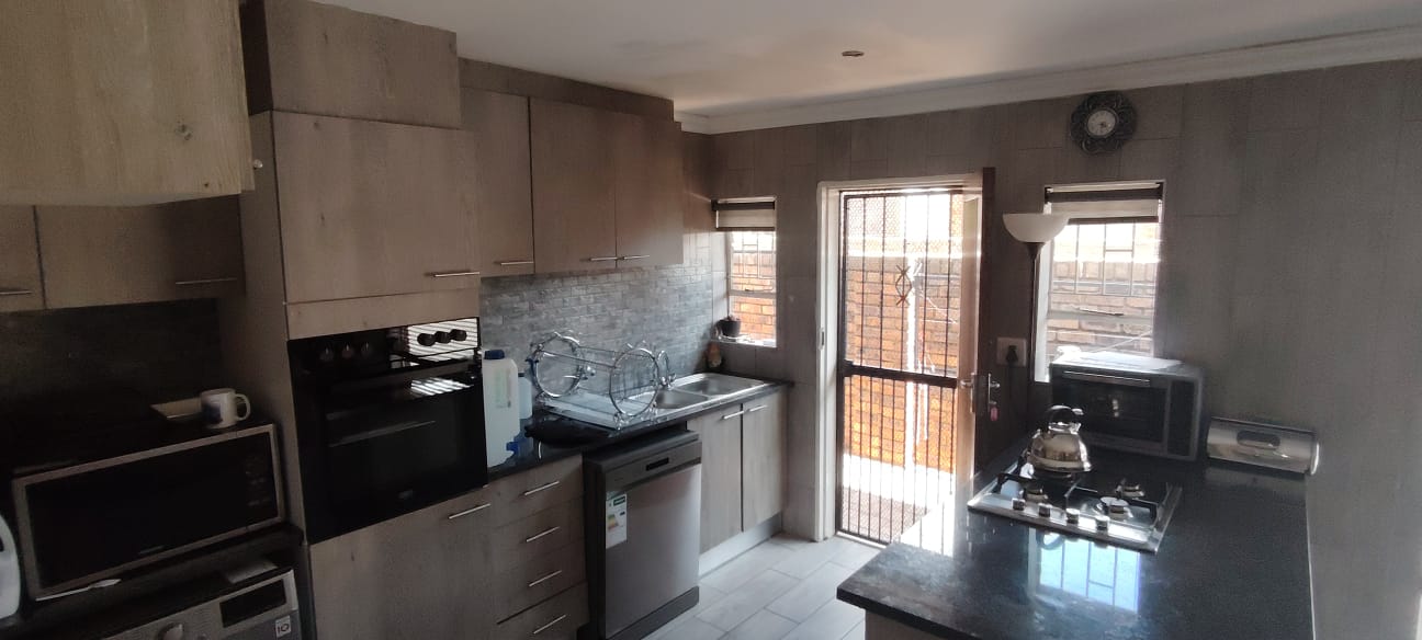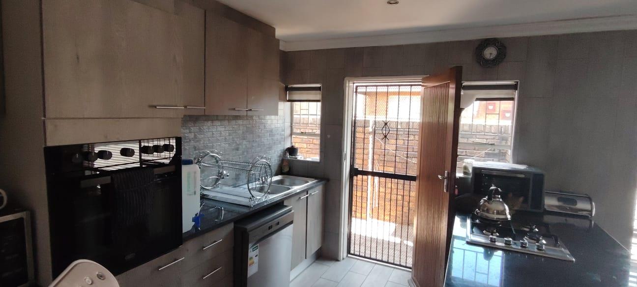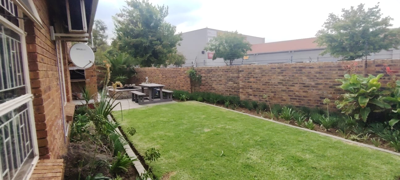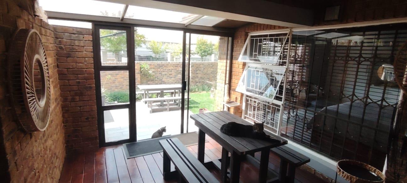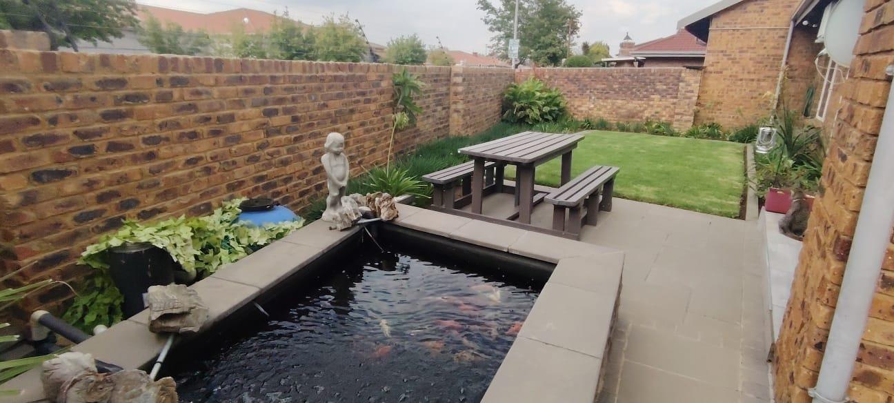 Step outside onto a lovely enclosed patio that overlooks a serene koi pond and beautifully landscaped garden. Enjoy outdoor cooking and gatherings with the convenience of a built-in braai. The kitchen is equipped with a gas hob and boasts elegant granite finishes, providing ample cupboard space for all your culinary needs. Additionally, a separate courtyard offers space for a washing line and more.