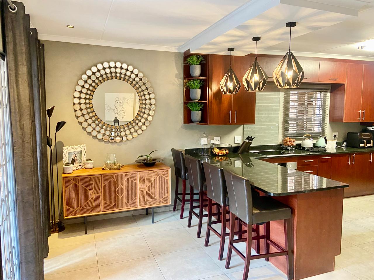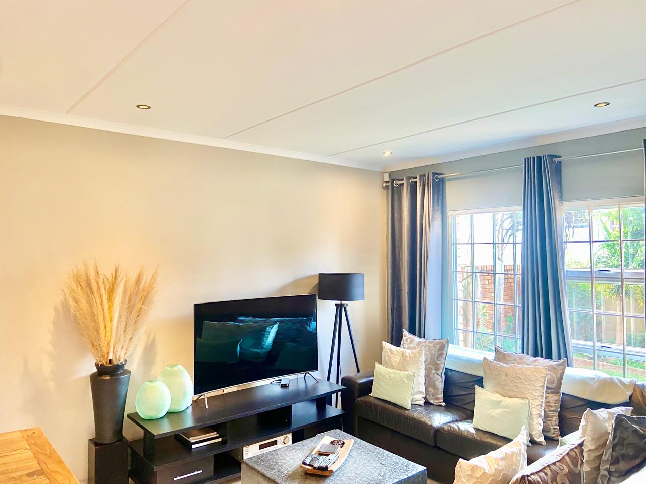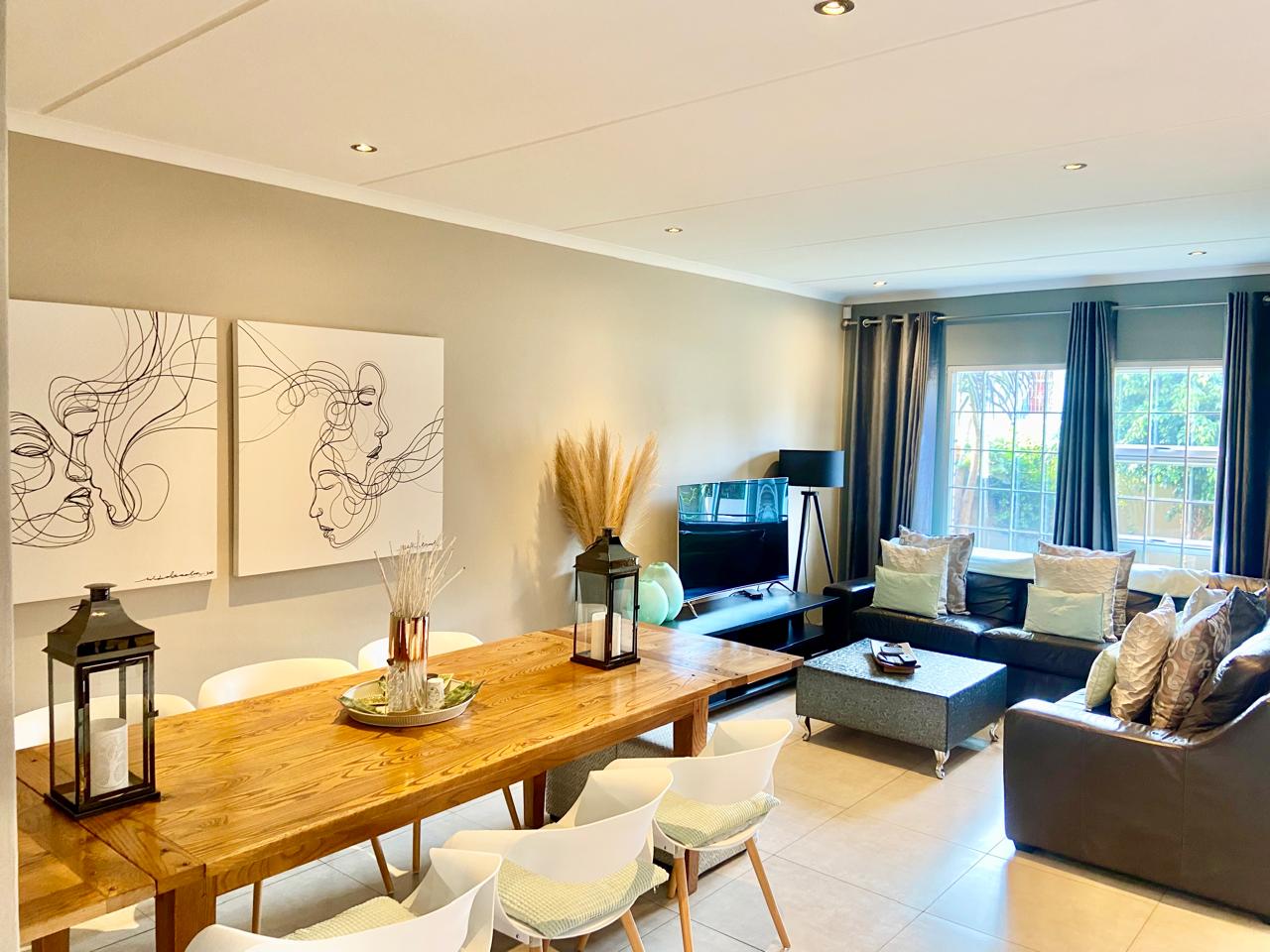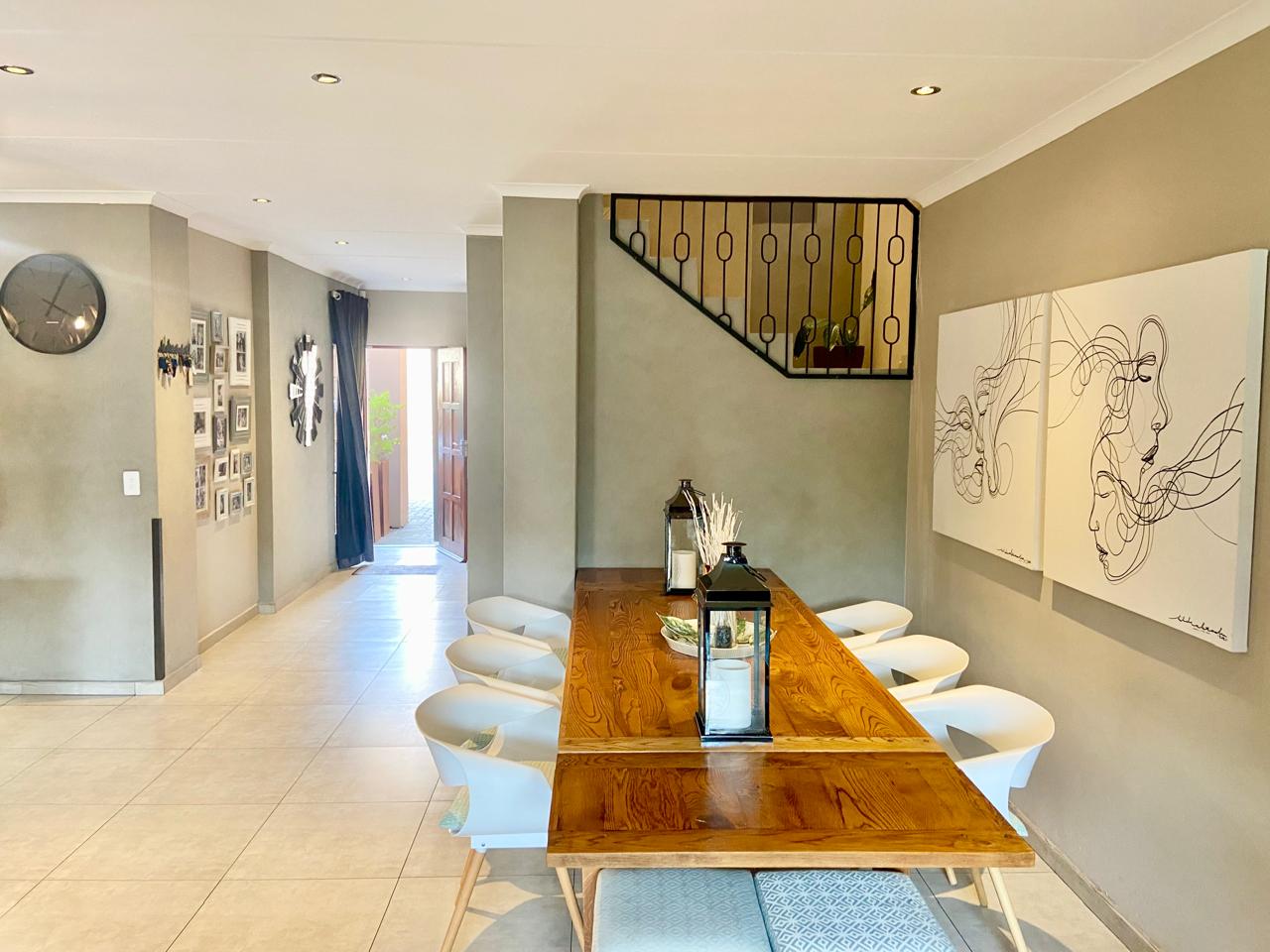 Ascend the striking double-volume staircase to find a cozy pajama lounge and a versatile study area. The main bedroom is a true retreat, featuring ample cupboard space and an ultra-modern en-suite bathroom that exudes luxury. The two additional bedrooms are bright, spacious, and well-appointed, while the second full bathroom offers a luxurious jacuzzi bath for ultimate relaxation.