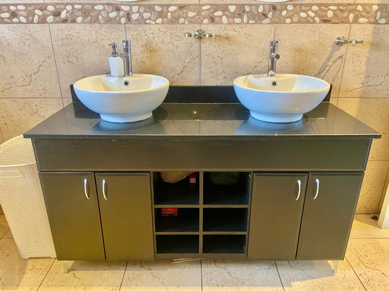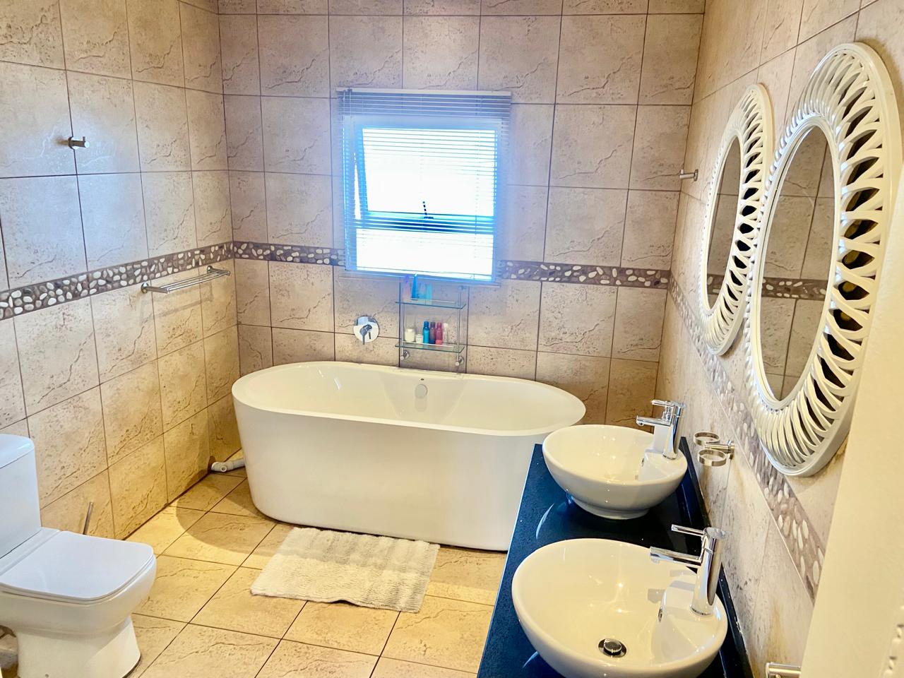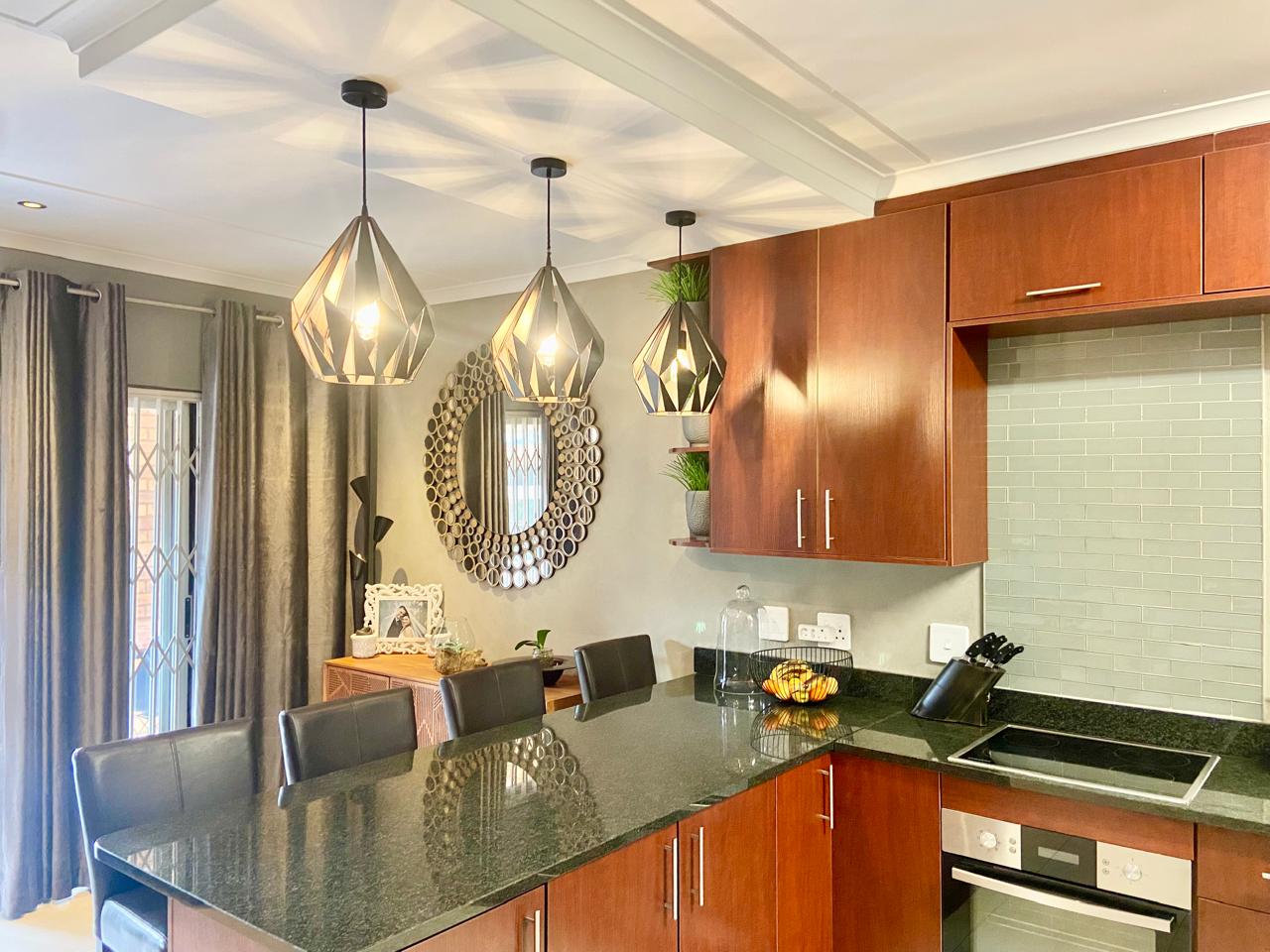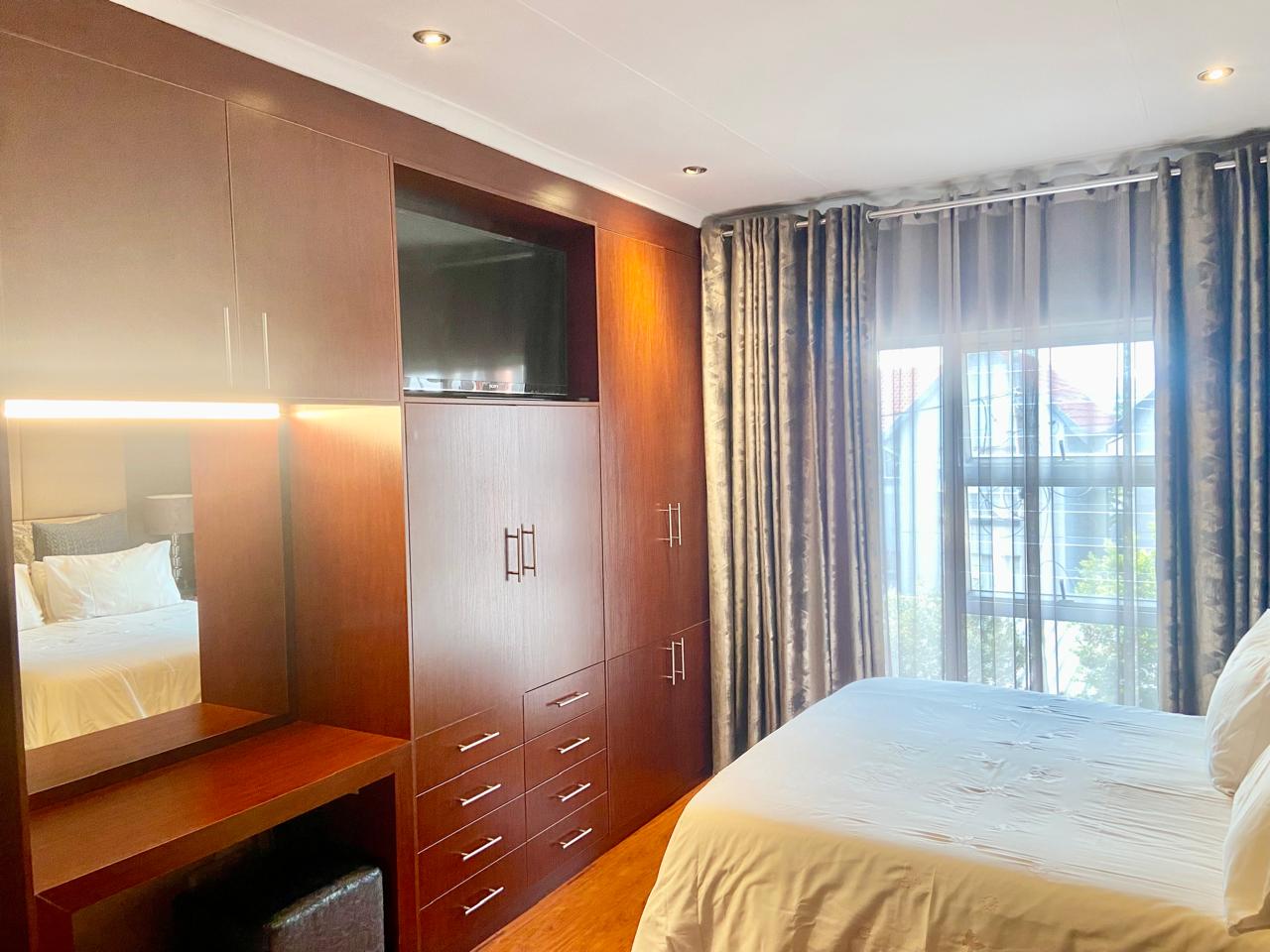Ascend the striking double-volume staircase to find a cozy pajama lounge and a versatile study area. The main bedroom is a true retreat, featuring ample cupboard space and an ultra-modern en-suite bathroom that exudes luxury. The two additional bedrooms are bright, spacious, and well-appointed, while the second full bathroom offers a luxurious jacuzzi bath for ultimate relaxation.