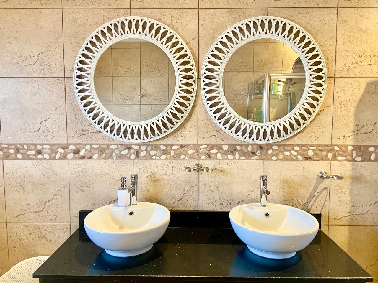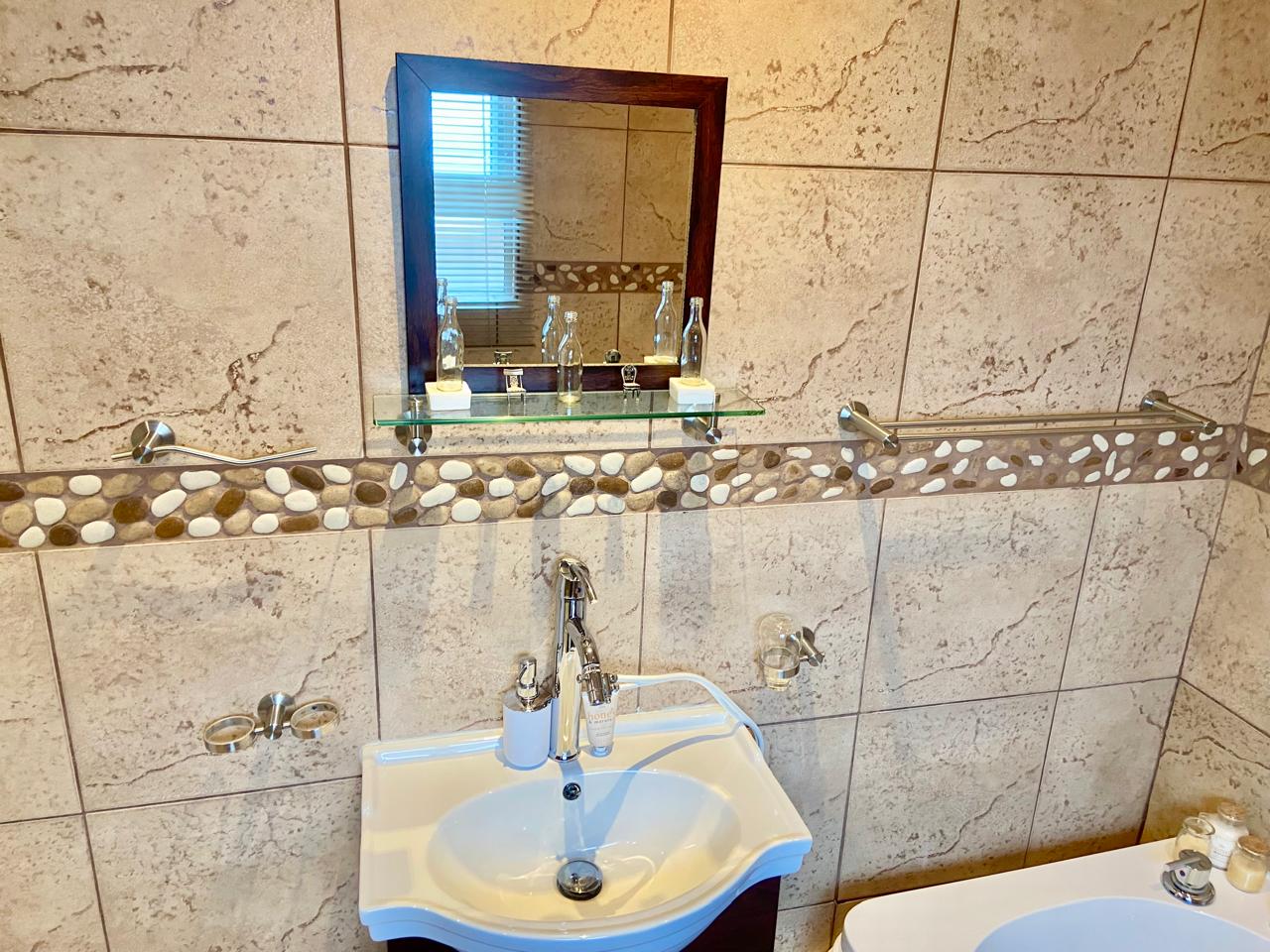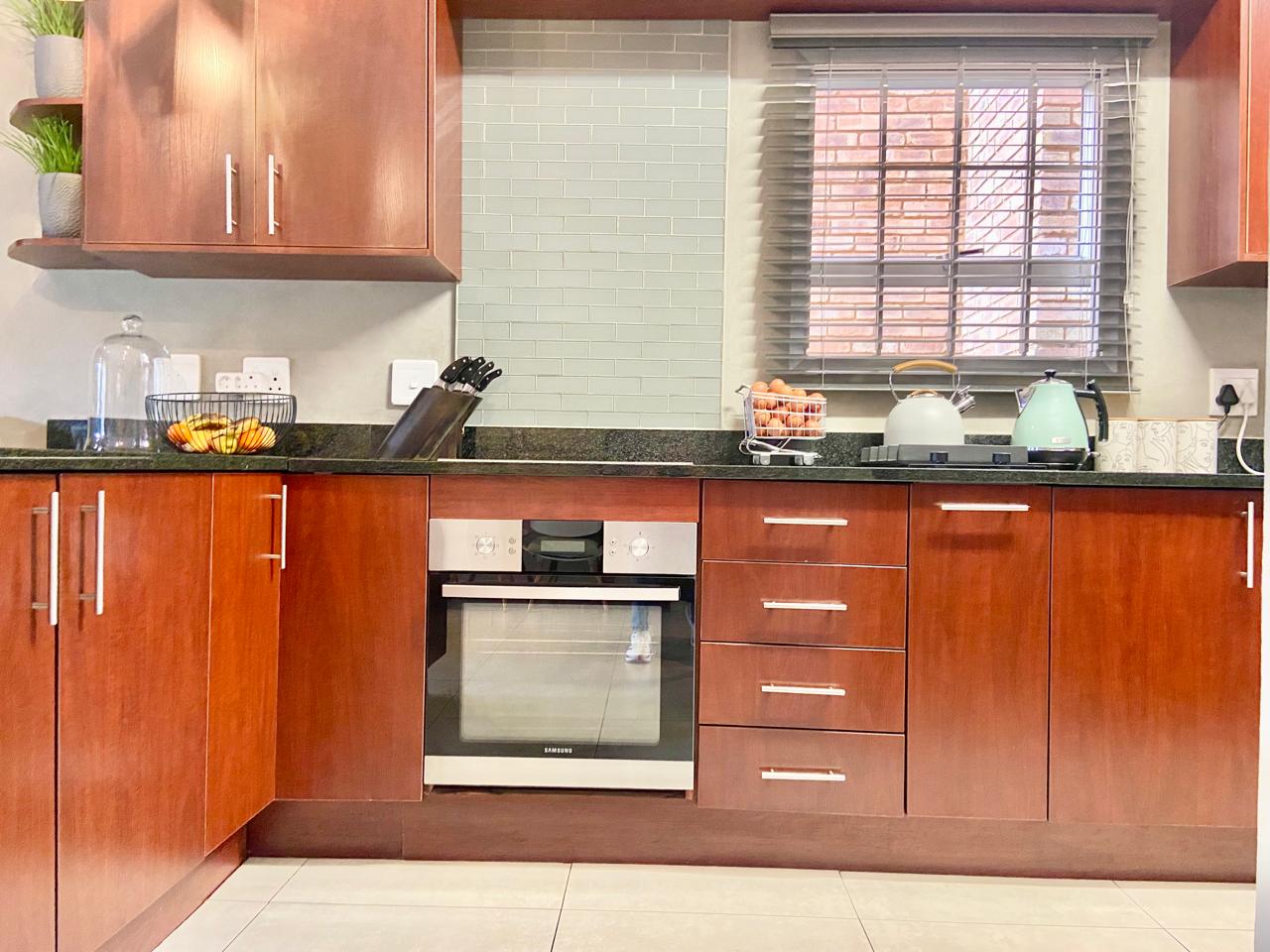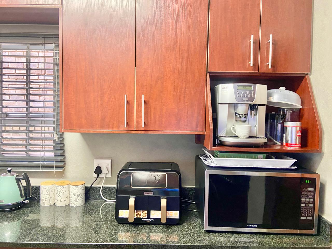Safety and security are prioritized with features such as an electric fence, a comprehensive alarm system with exterior cameras, aluminum burglar proofing on all ground floor windows, and perspex security bars on all upstairs openings.