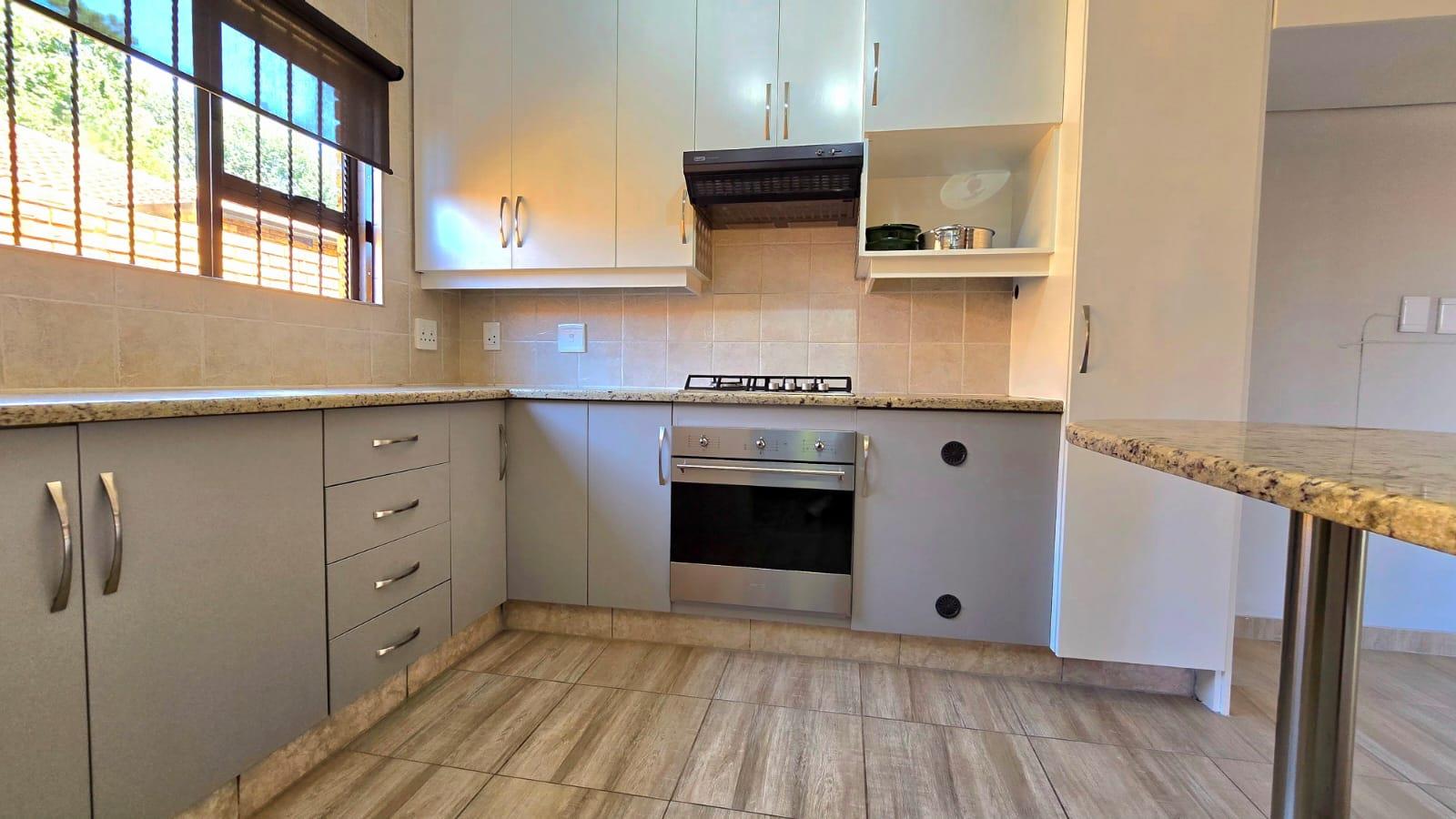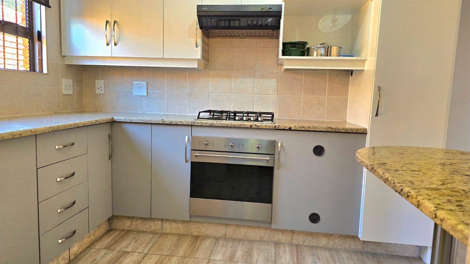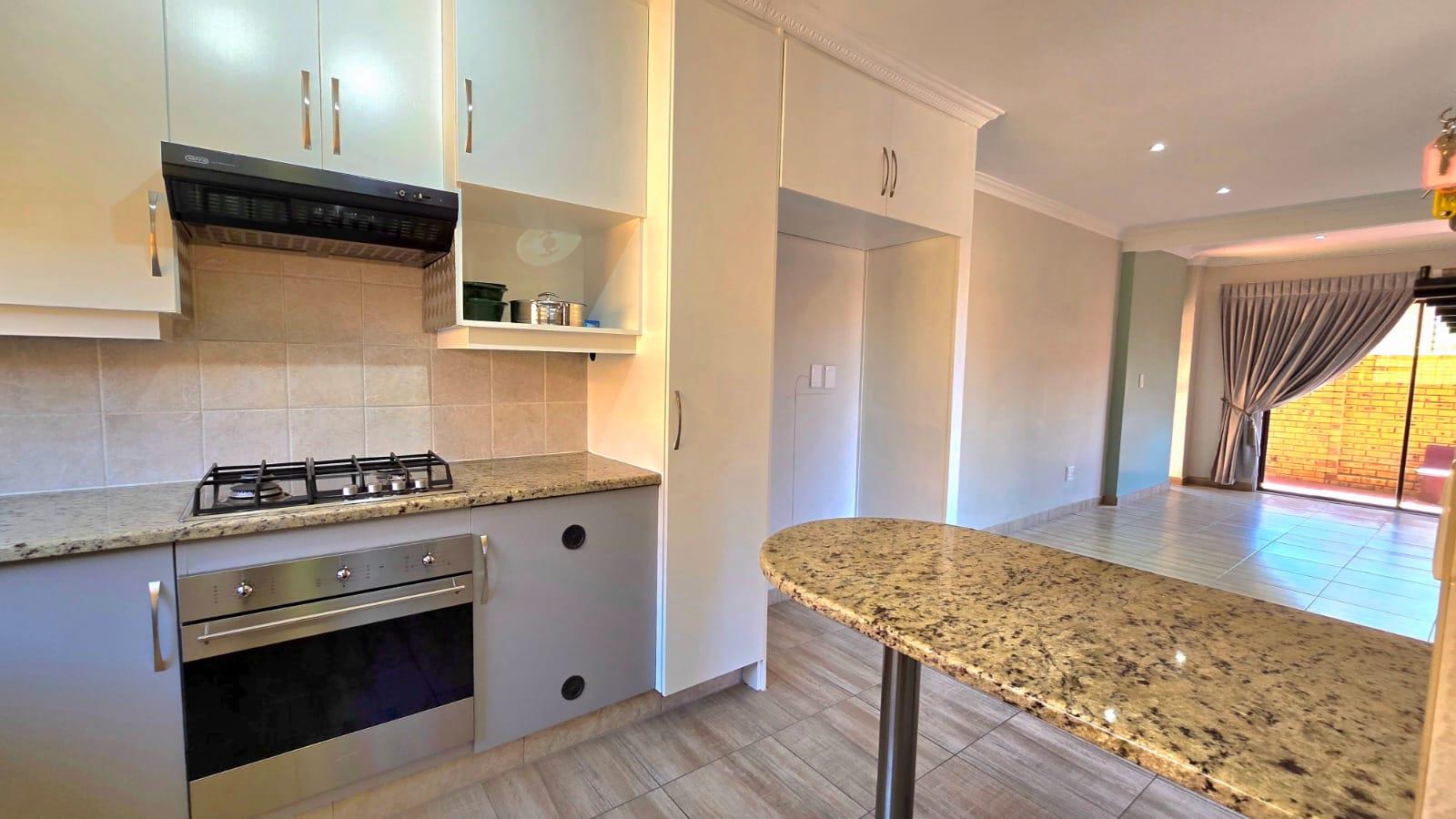 As you enter the beautifully landscaped complex, you'll be enveloped by a serene and tranquil ambiance. Inside, the open-plan layout seamlessly connects the modern kitchen and lounge area, which boasts top-of-the-line features such as granite countertops, a gas stove, built-in cupboards, a scullery, and a breakfast nook. Step outside to enjoy the covered patio, complete with a built-in braai area, overlooking the meticulously maintained garden.