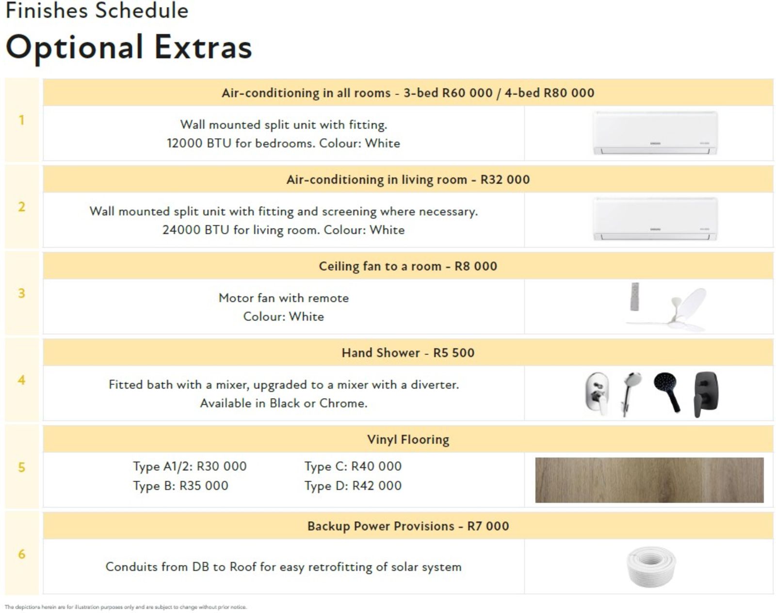 Please note that the images you see are for illustrative purposes only and may change without notice. Rates mentioned are approximate, and levies are estimated at R1,400 per month for the first 12 months, with adjustments thereafter. The first payment for rates and levies is due from the date the land is transferred to you.