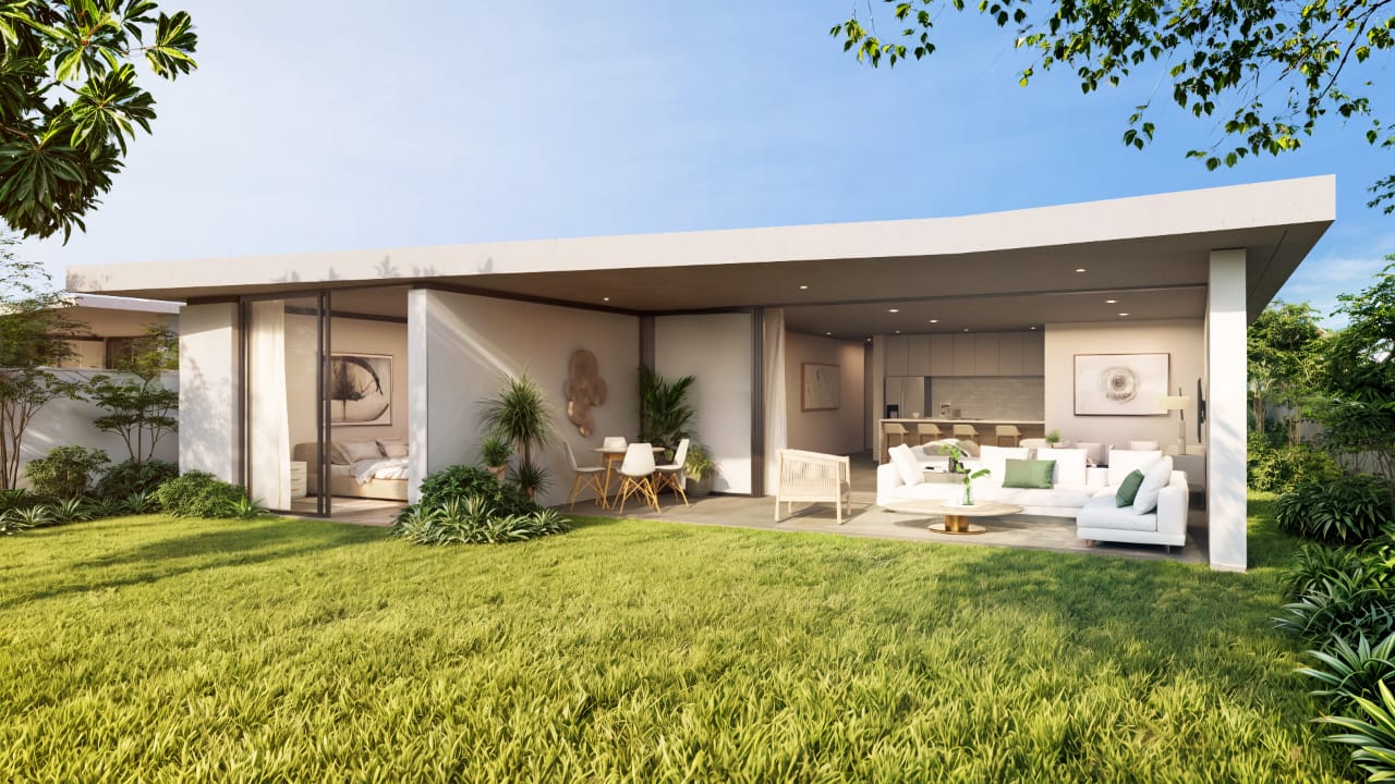 The home includes a private garden, providing a peaceful outdoor retreat.