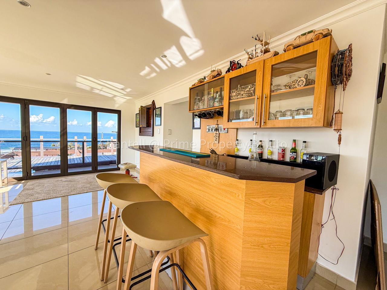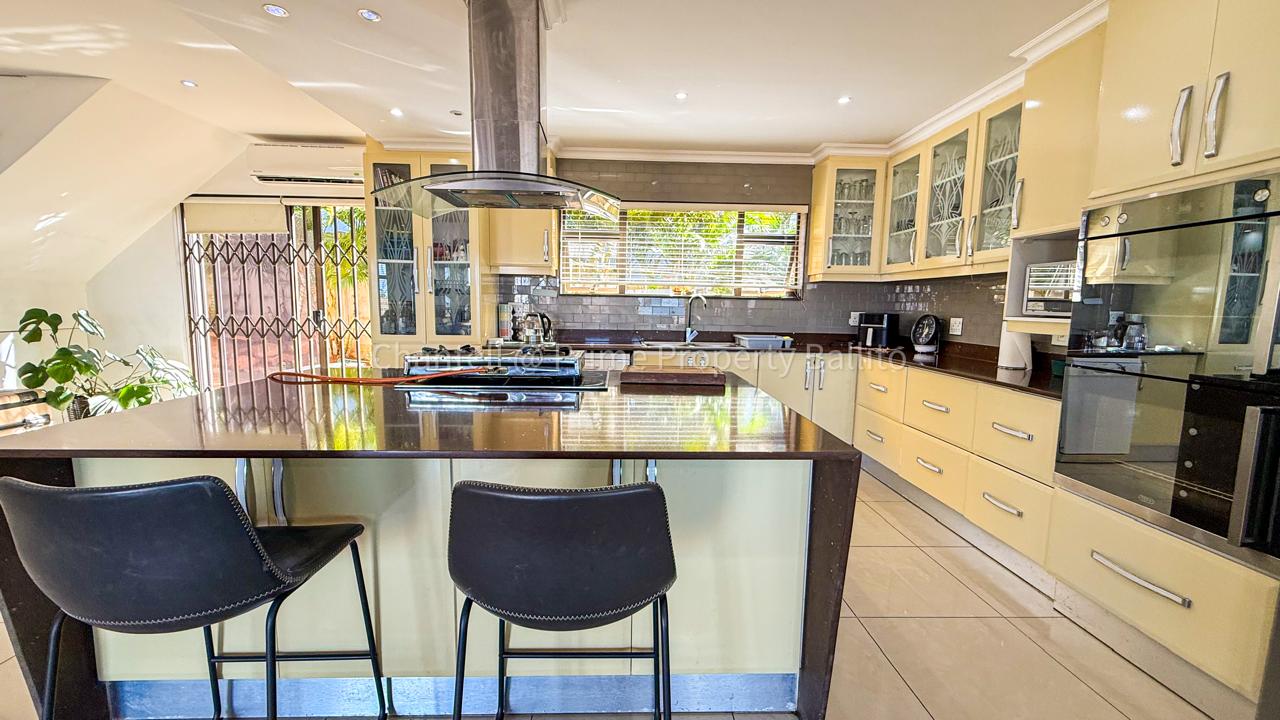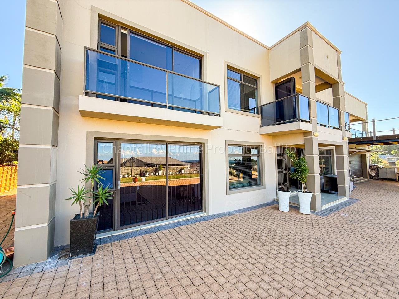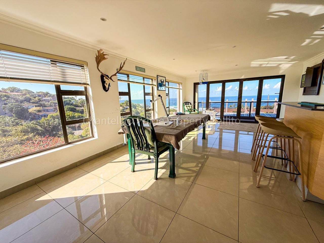 Perched on a scenic hillside in beautiful Salt Rock, Ballito, on the North Coast, this elegant five-bedroom home (all en-suite) offers breathtaking ocean views from sunrise to sunset. Step inside and feel instantly at home — the spacious open-plan living area seamlessly connects a modern, well-appointed kitchen, dining space, and a relaxed lounge that flows out to the garden.