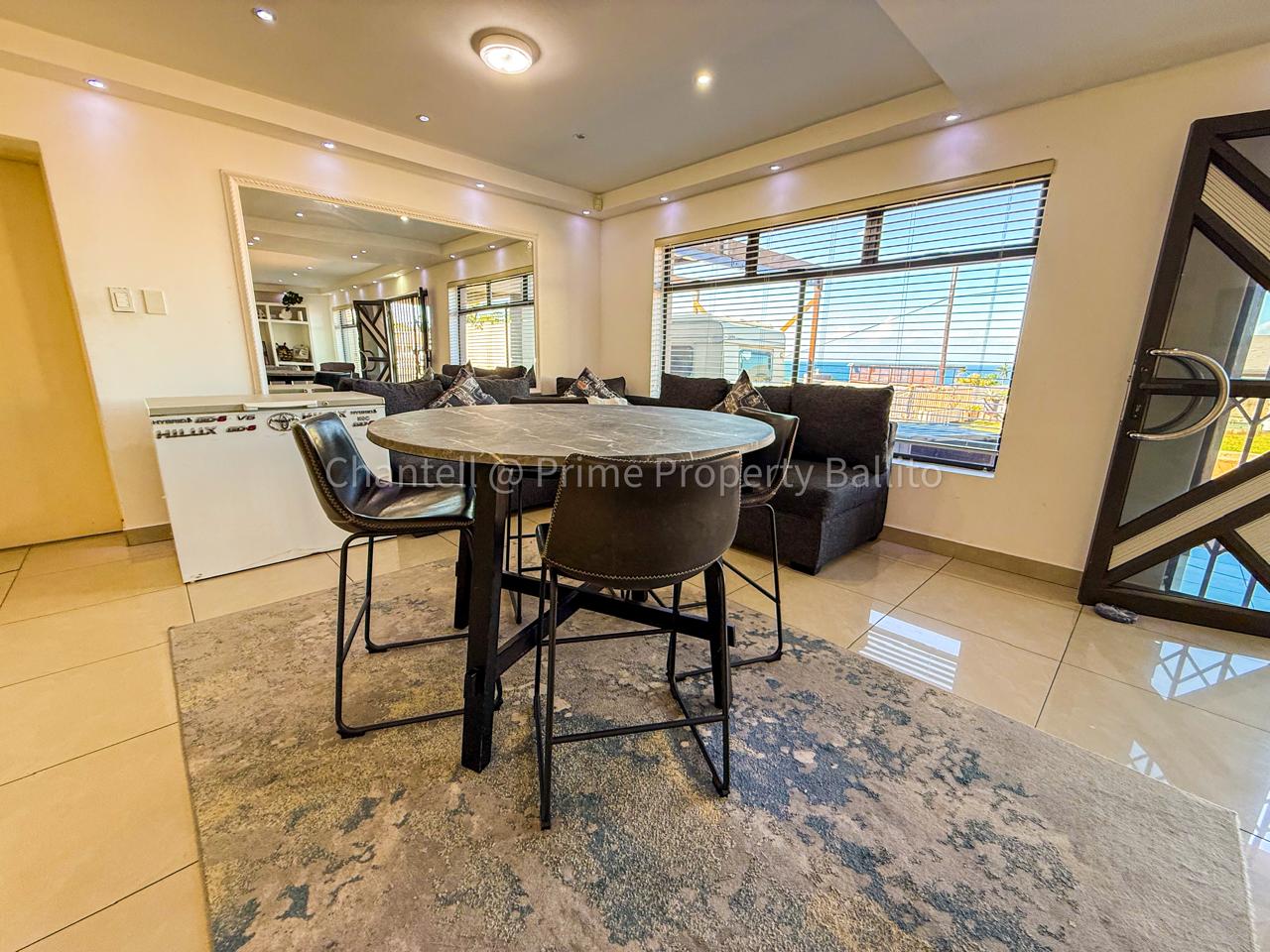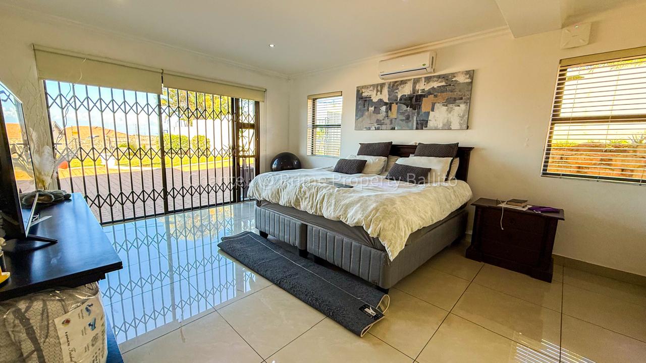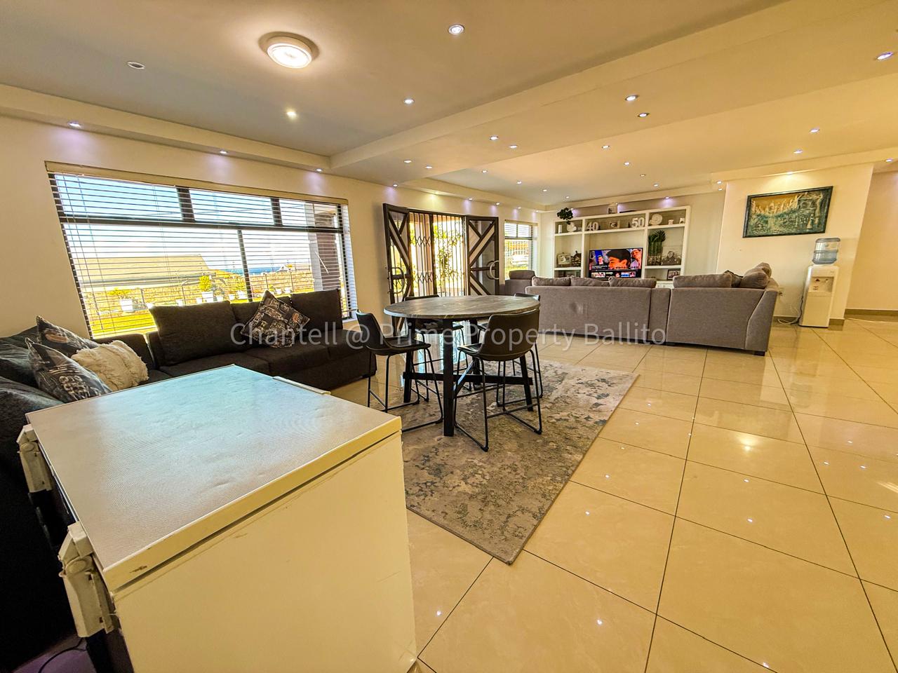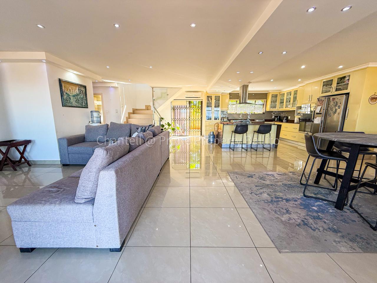 Perched on a scenic hillside in beautiful Salt Rock, Ballito, on the North Coast, this elegant five-bedroom home (all en-suite) offers breathtaking ocean views from sunrise to sunset. Step inside and feel instantly at home — the spacious open-plan living area seamlessly connects a modern, well-appointed kitchen, dining space, and a relaxed lounge that flows out to the garden.
