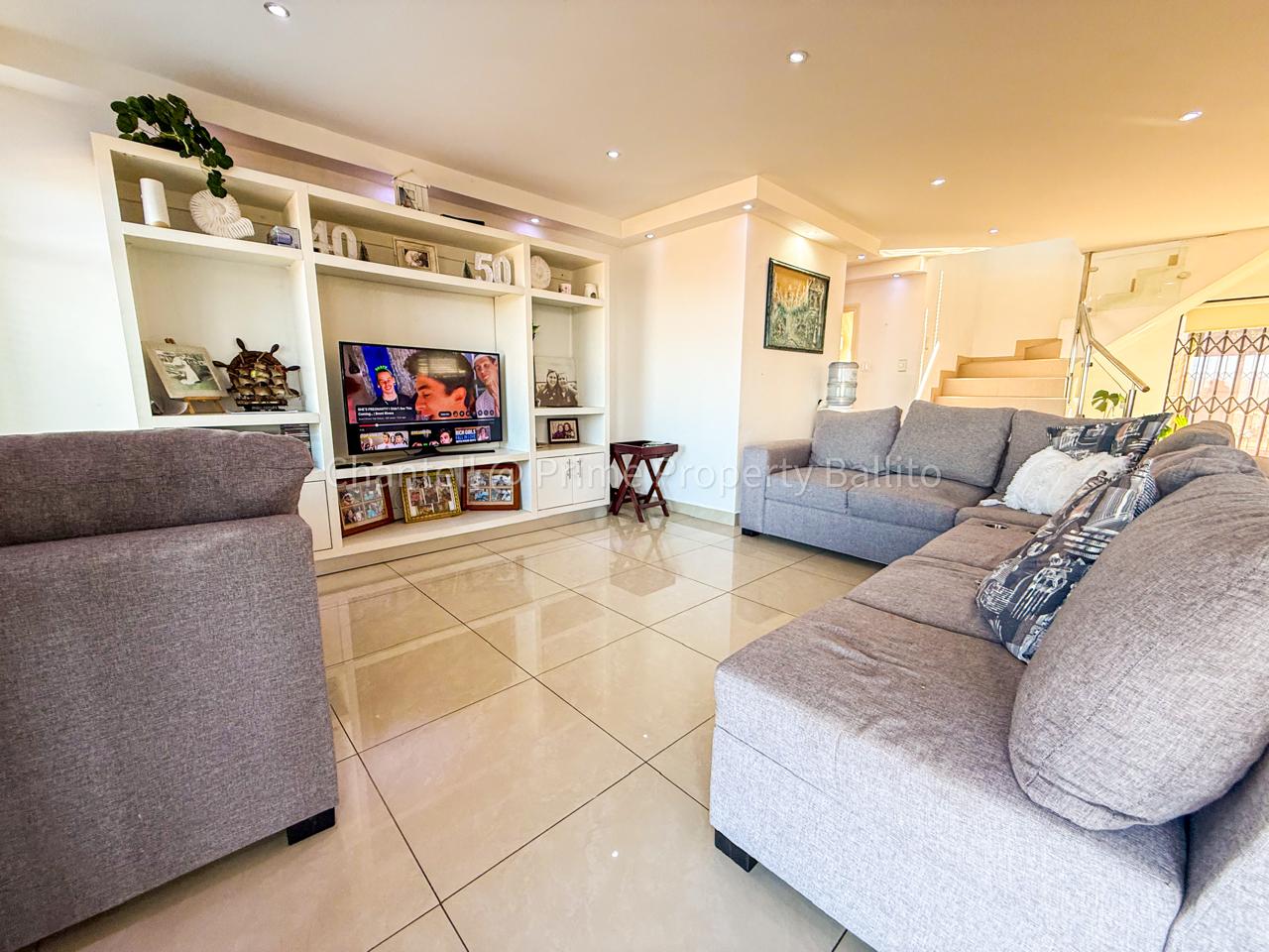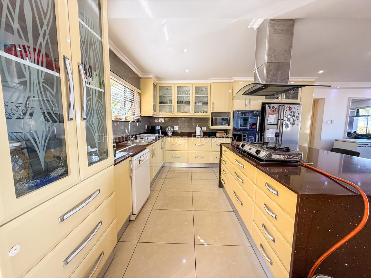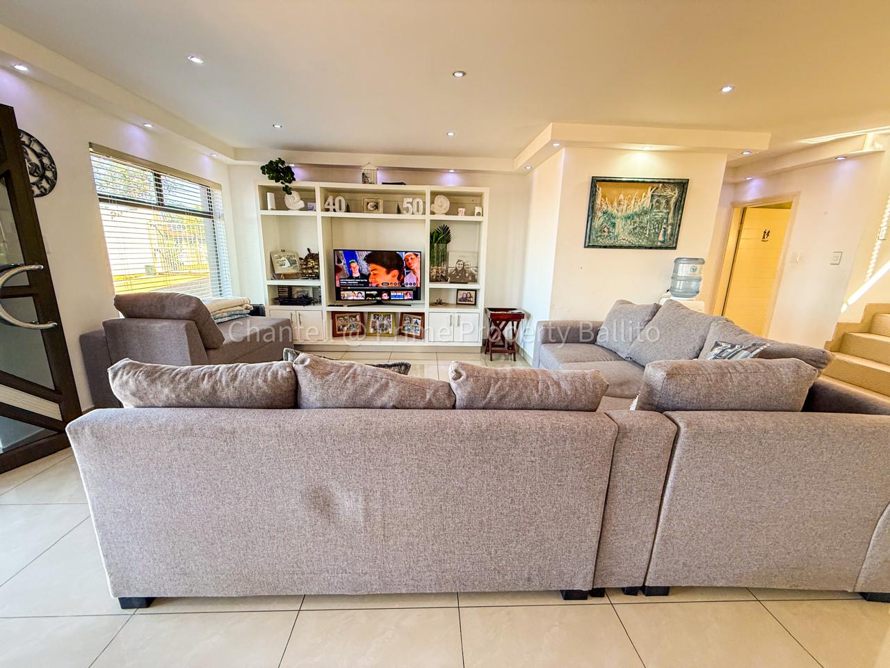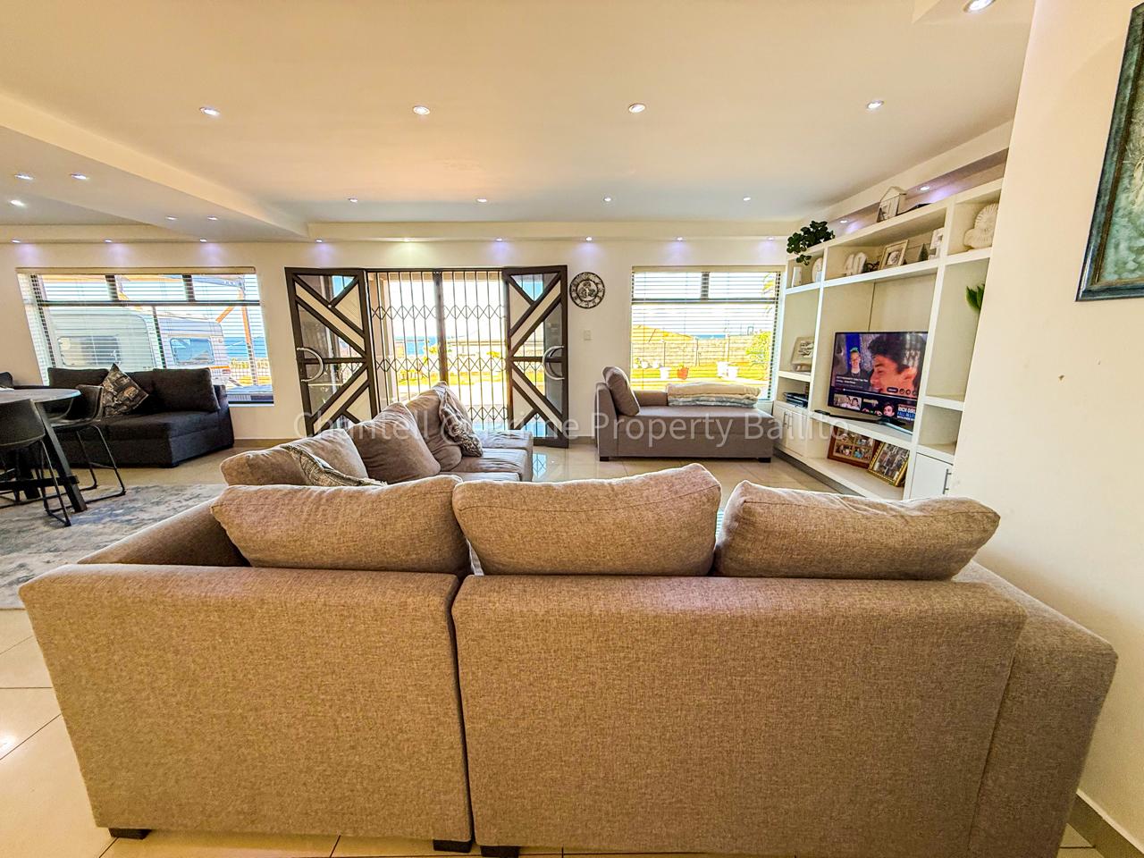 Perched on a scenic hillside in beautiful Salt Rock, Ballito, on the North Coast, this elegant five-bedroom home (all en-suite) offers breathtaking ocean views from sunrise to sunset. Step inside and feel instantly at home — the spacious open-plan living area seamlessly connects a modern, well-appointed kitchen, dining space, and a relaxed lounge that flows out to the garden.
