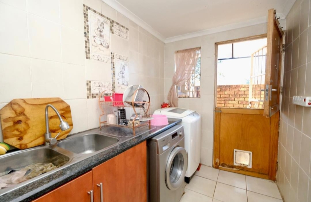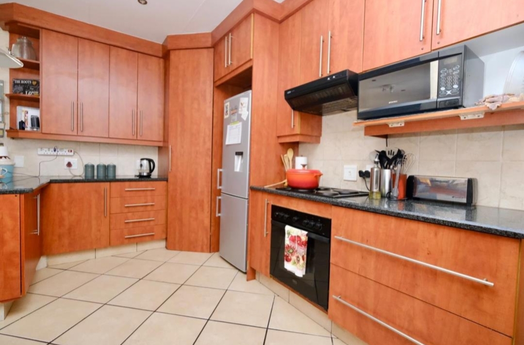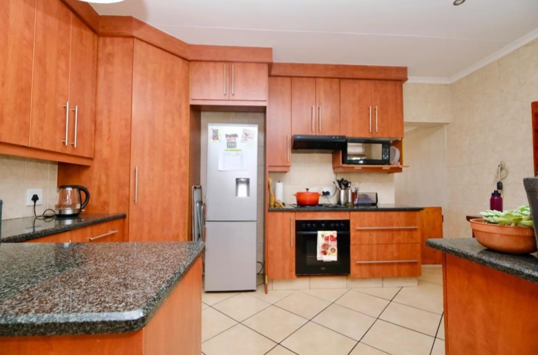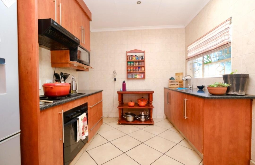 The modern kitchen features ample cabinetry, a convenient separate scullery, and plenty of room for effortless organisation.