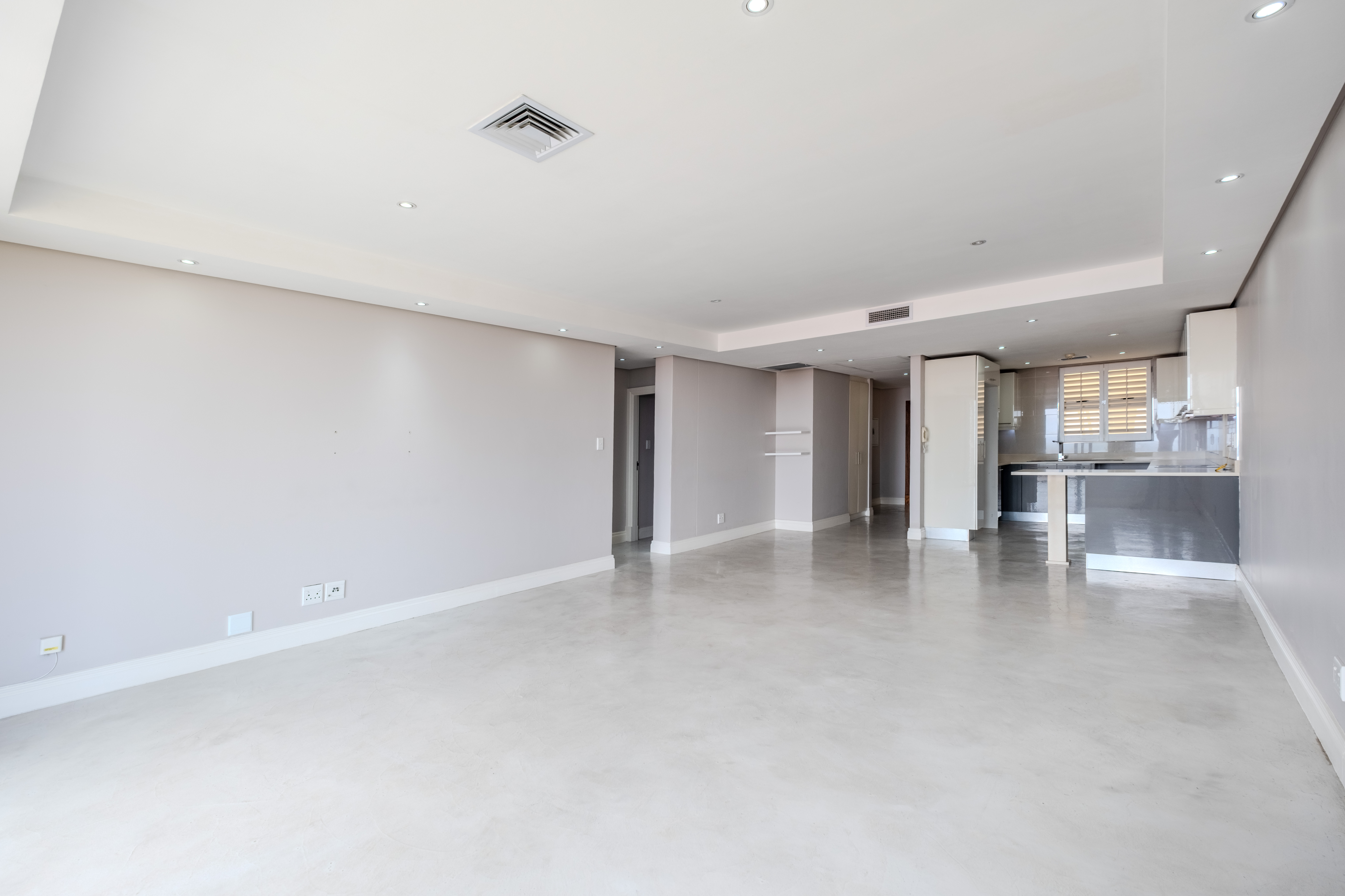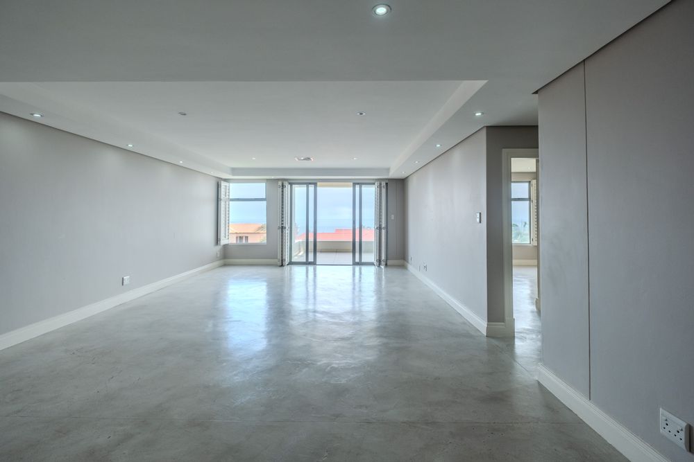 This stylish two bedroom two bathroom apartment is ideally located in the heart of Umhlanga Rocks and offers beautiful sea views and modern coastal living. The open plan kitchen and living area creates a seamless flow, finished with screed concrete flooring, generous cupboard space, and Caesarstone countertops.
