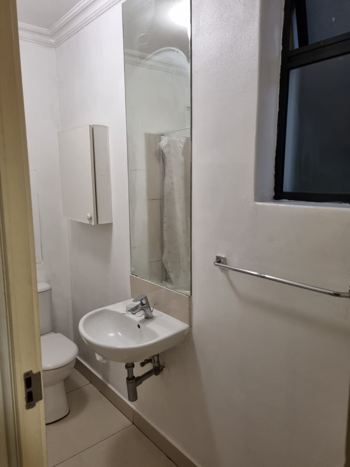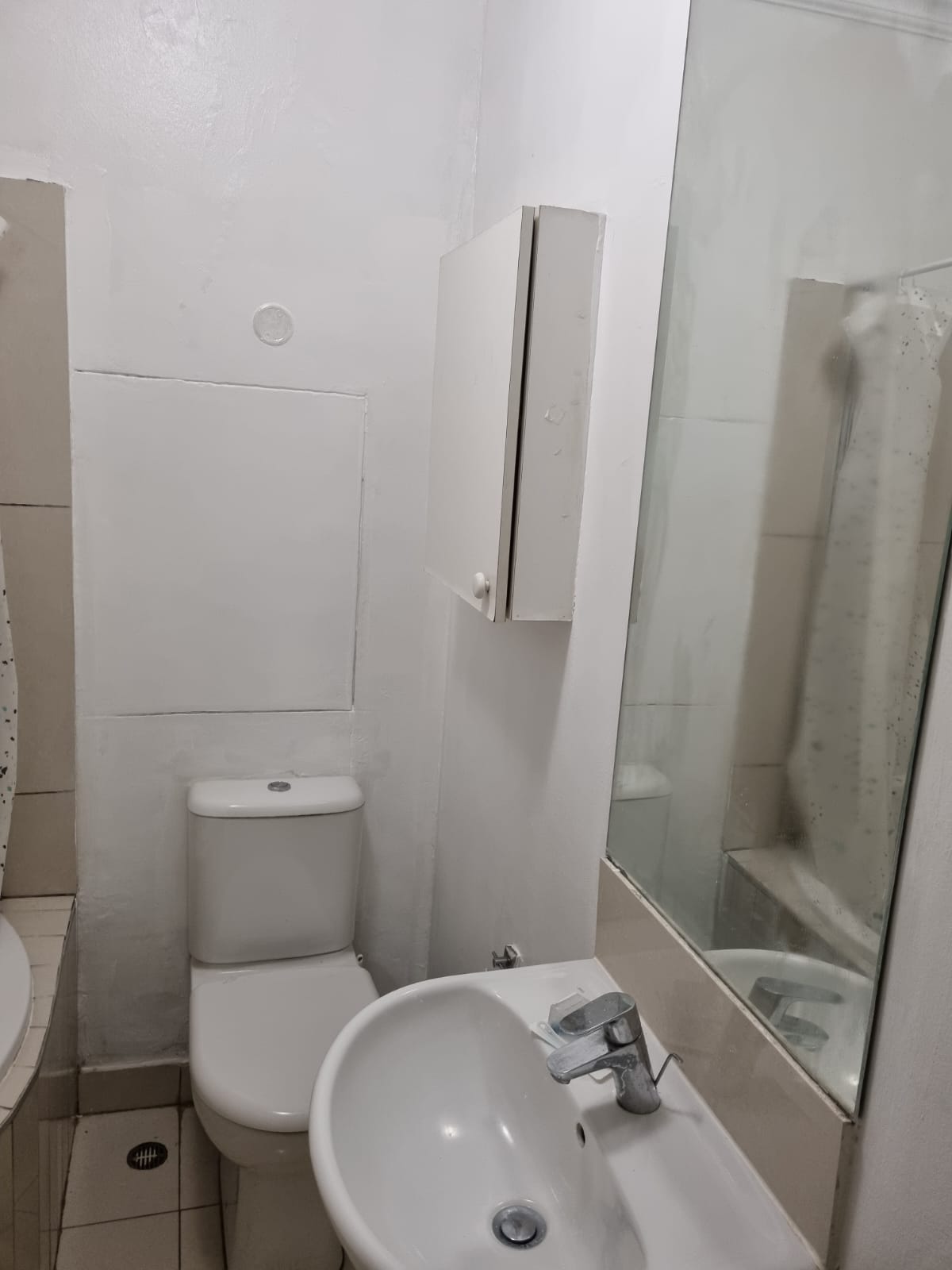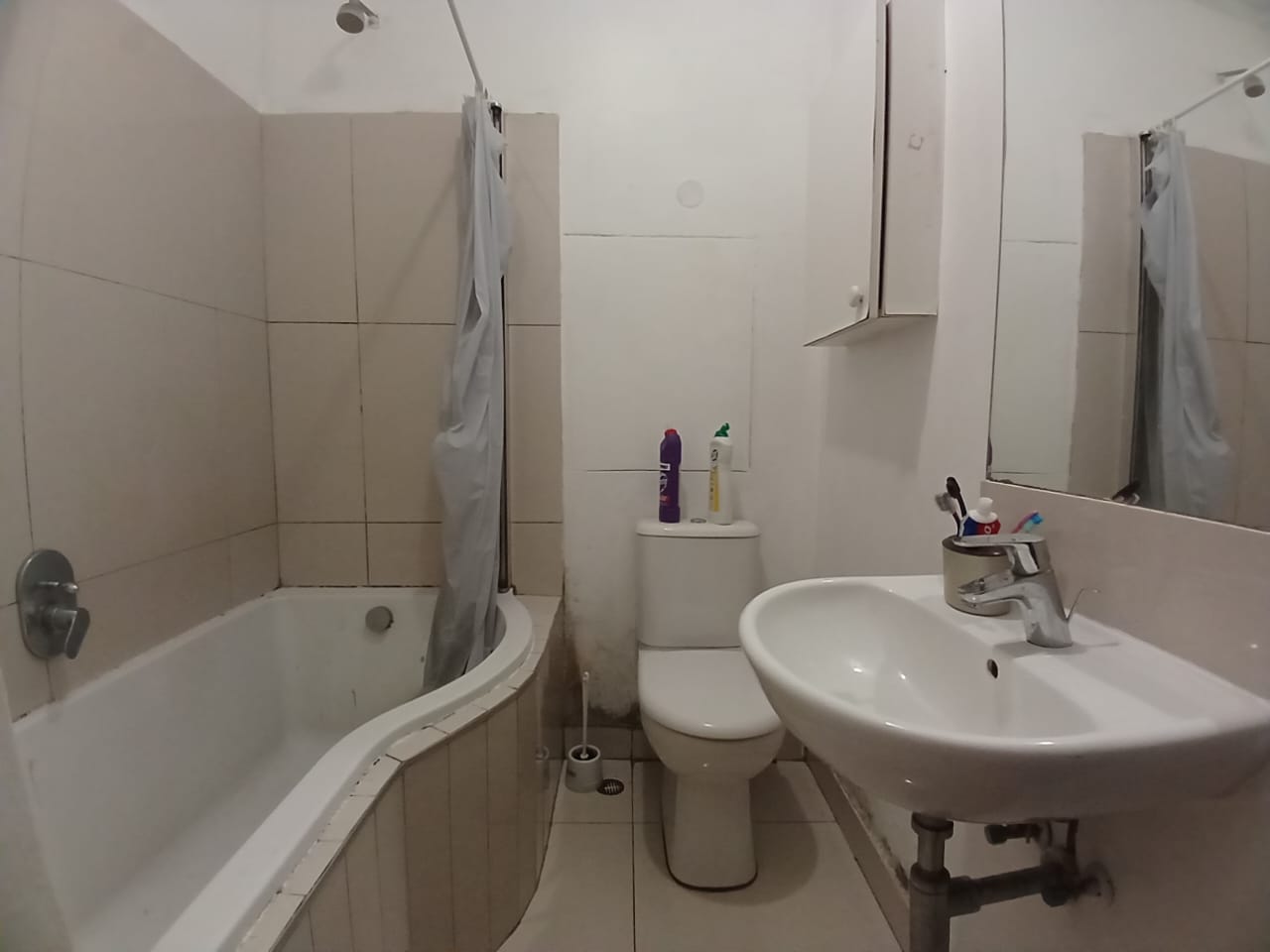 This contemporary home features an open-plan living area that flows seamlessly into a sleek, fully fitted kitchen with high-quality finishes. The spacious bedroom includes built-in cupboards and large windows that bring in plenty of natural light, while the elegant bathroom is designed with modern fittings and a refreshing shower.
