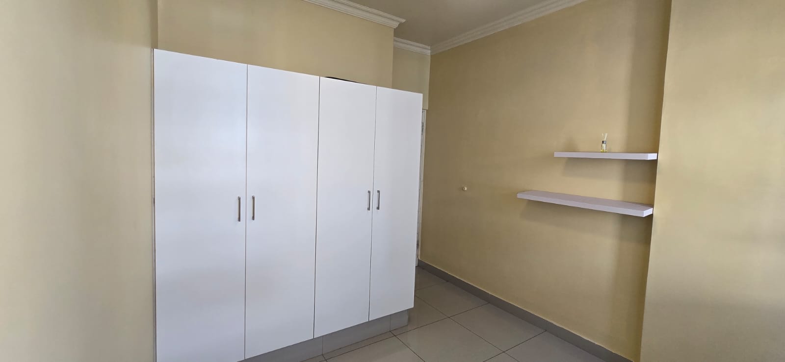 Both bedrooms are well-sized and fitted with built-in cupboards, while the bathroom is elegantly designed with a modern shower. The apartment also includes two dedicated parking bays, providing excellent convenience and added value.