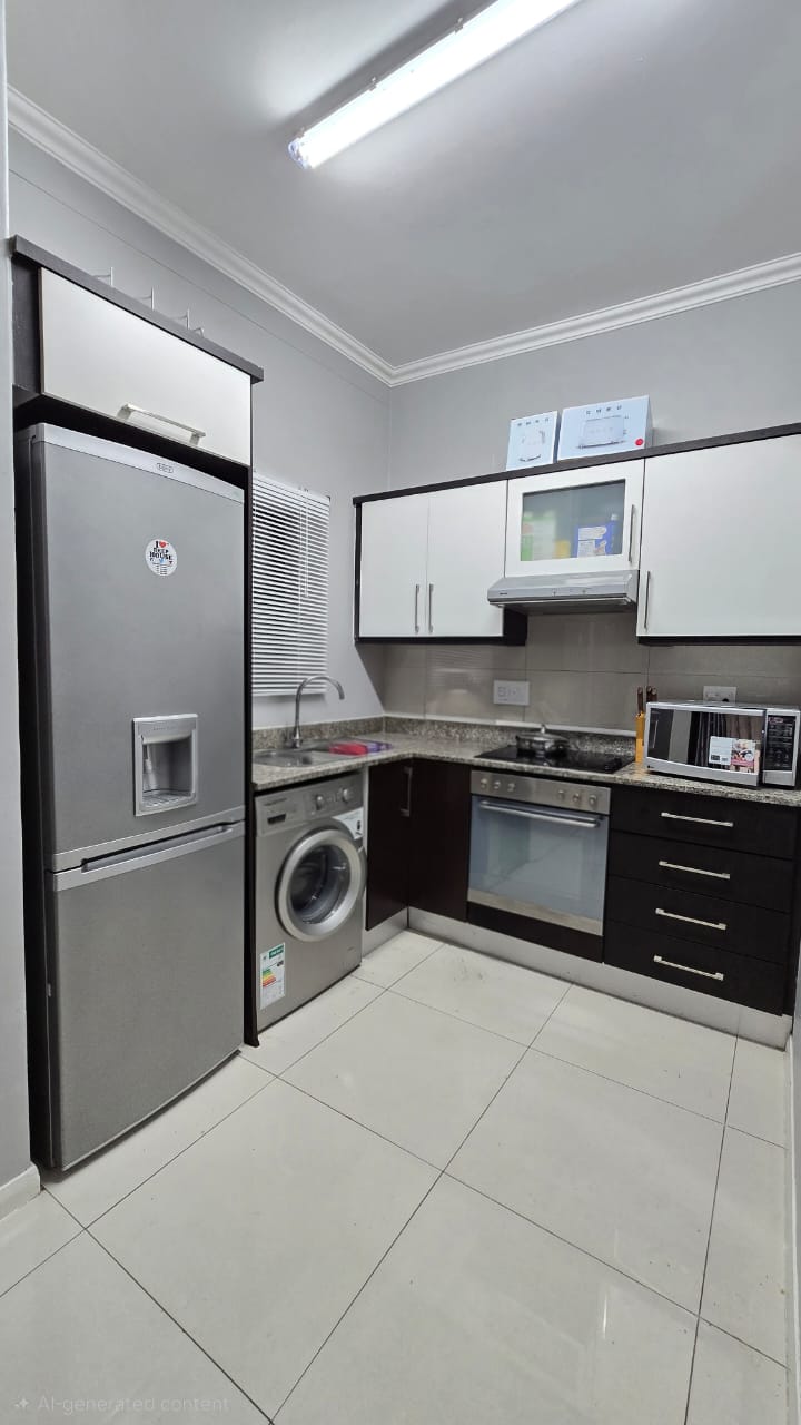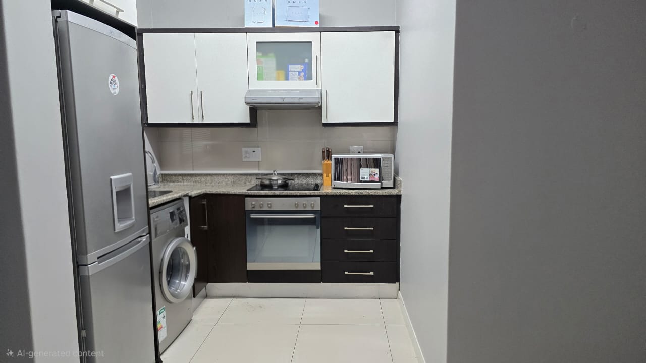This apartment includes a fully equipped kitchen with modern appliances.