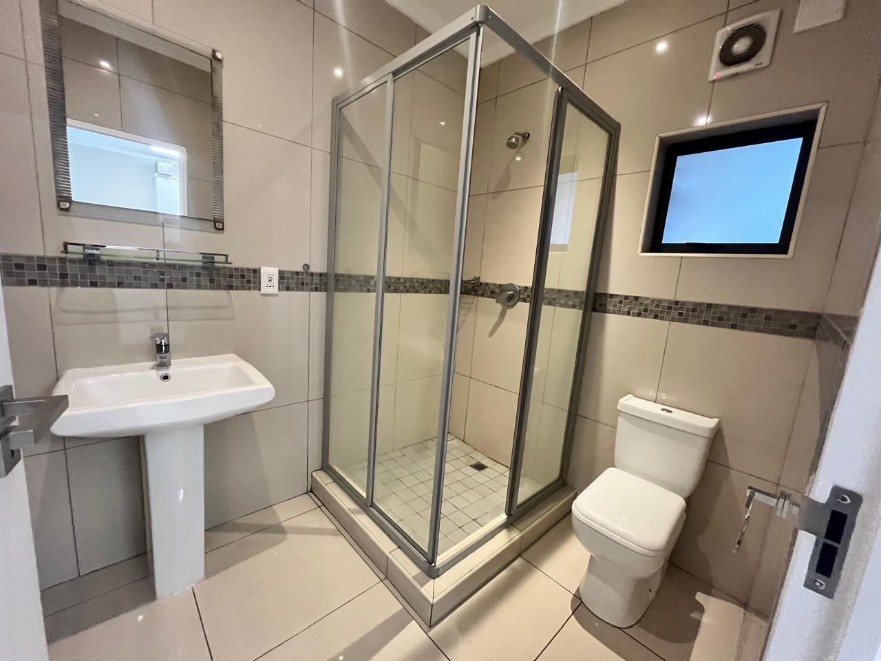 Two bedrooms paired with one modern bathroom.