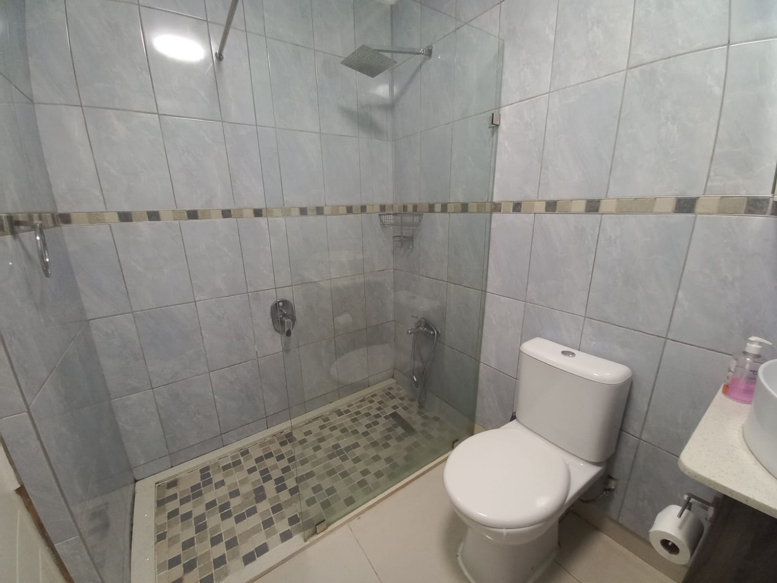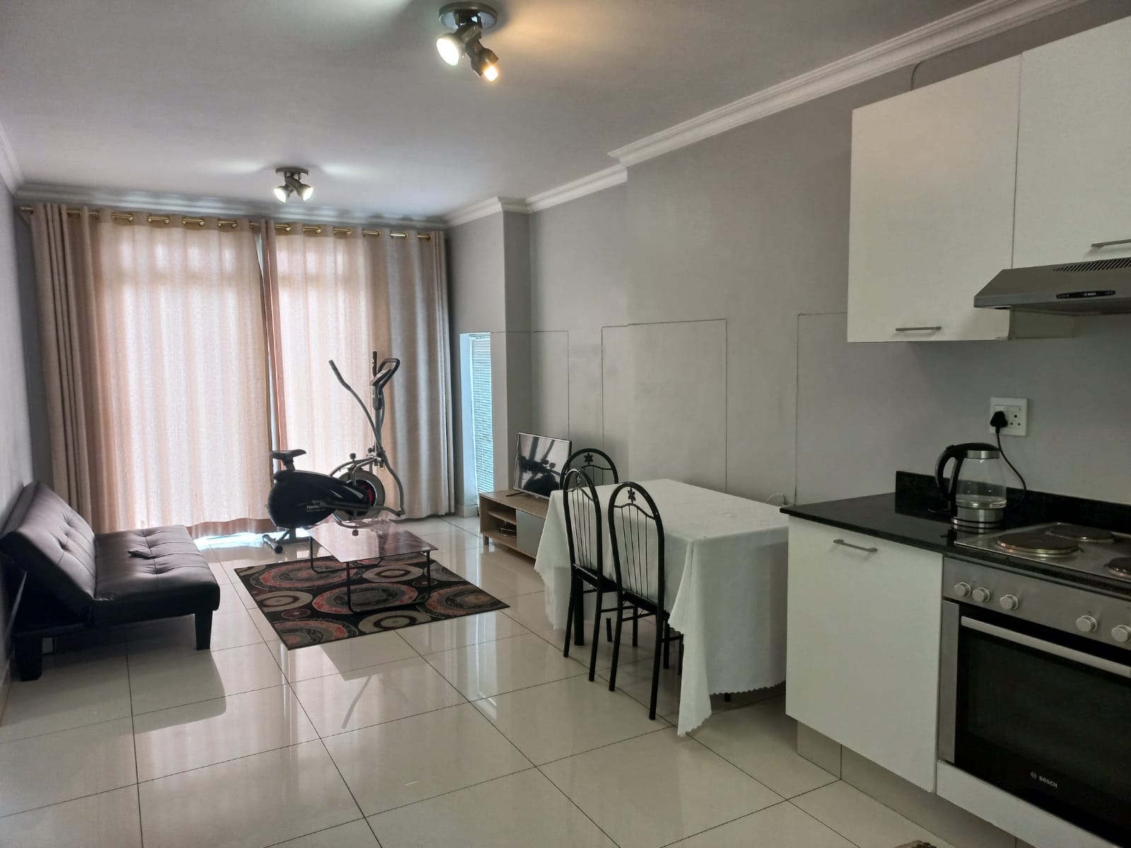 Pool and gym in the complex.