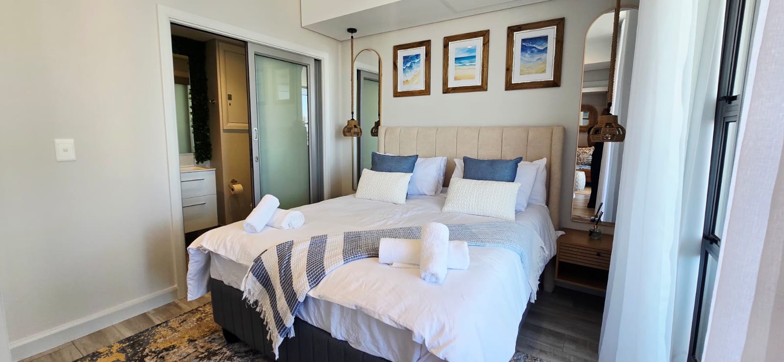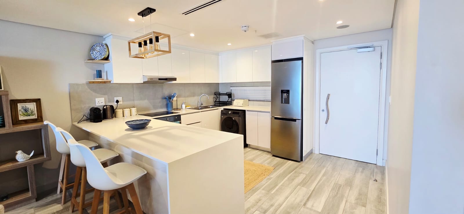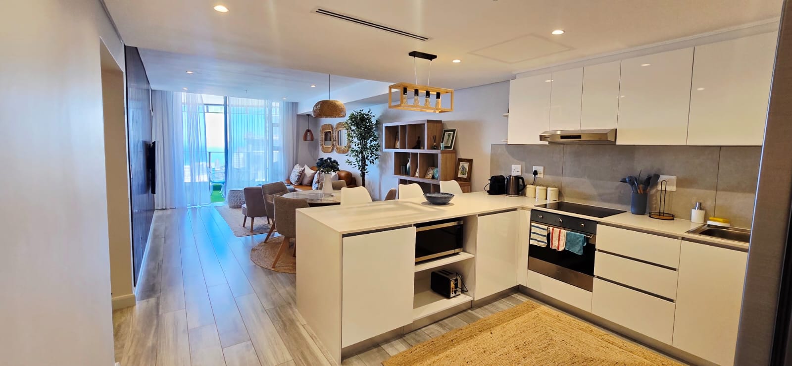 Enjoy elevated coastal living in this luxurious, fully furnished two-bedroom penthouse set within a brand-new beachfront development boasting uninterrupted sea views. The home offers a spacious open-plan living and dining area, a sleek modern kitchen, and two beautifully appointed en-suite bedrooms. A private balcony invites you to take in the ocean vistas, while direct access to the mall below, secure living, and immediate proximity to the beach complete this exceptional seaside lifestyle.