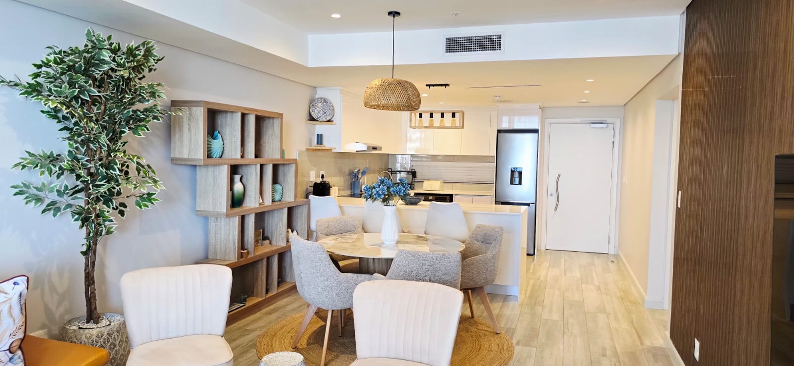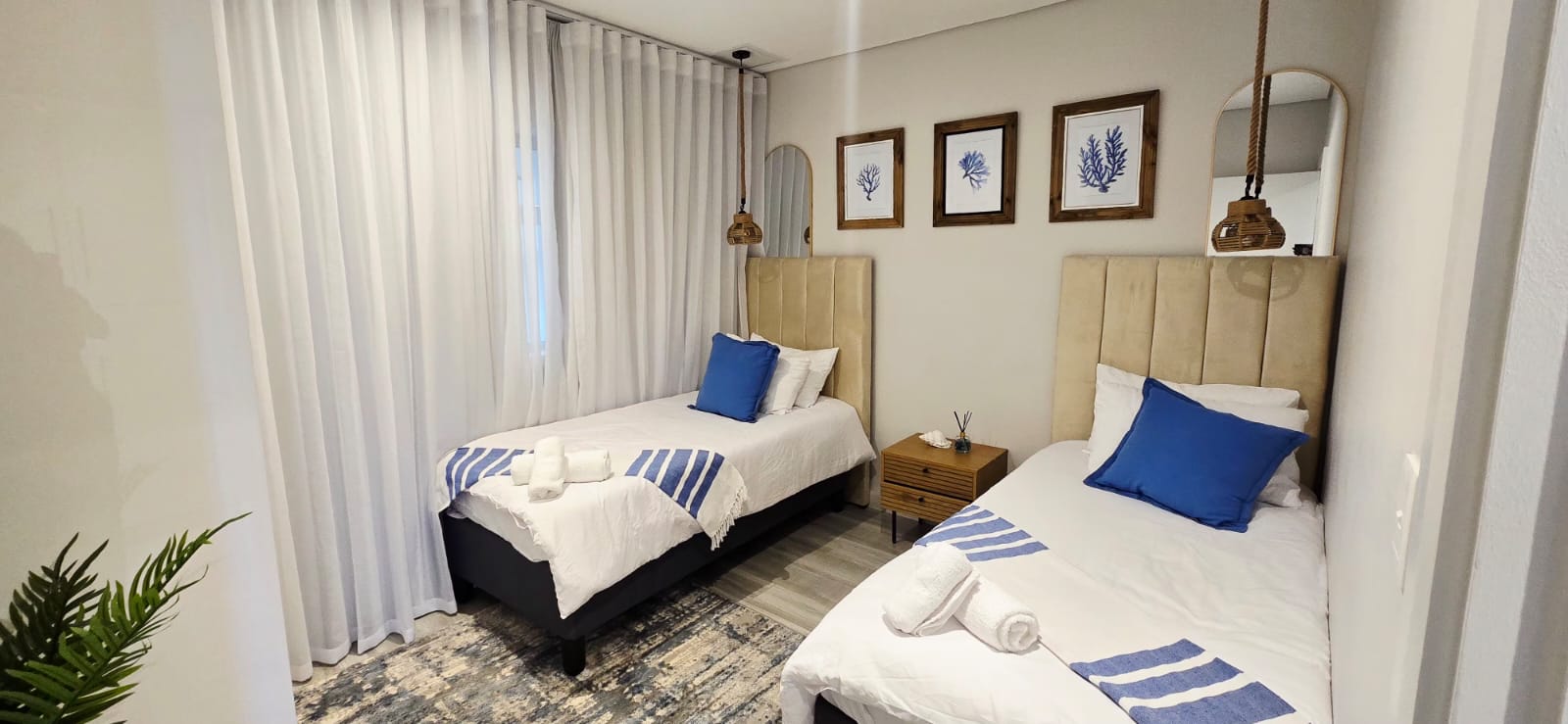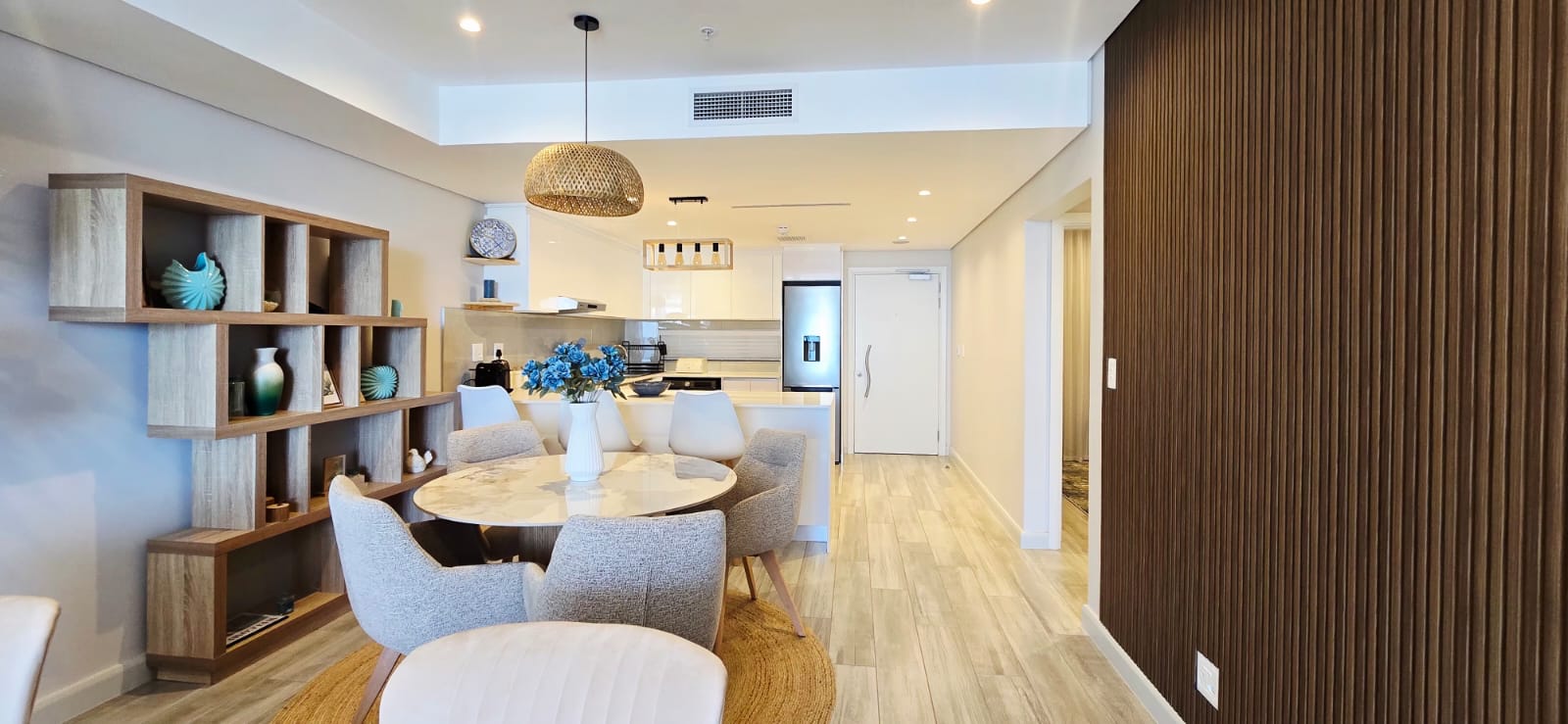 Enjoy elevated coastal living in this luxurious, fully furnished two-bedroom penthouse set within a brand-new beachfront development boasting uninterrupted sea views. The home offers a spacious open-plan living and dining area, a sleek modern kitchen, and two beautifully appointed en-suite bedrooms. A private balcony invites you to take in the ocean vistas, while direct access to the mall below, secure living, and immediate proximity to the beach complete this exceptional seaside lifestyle.