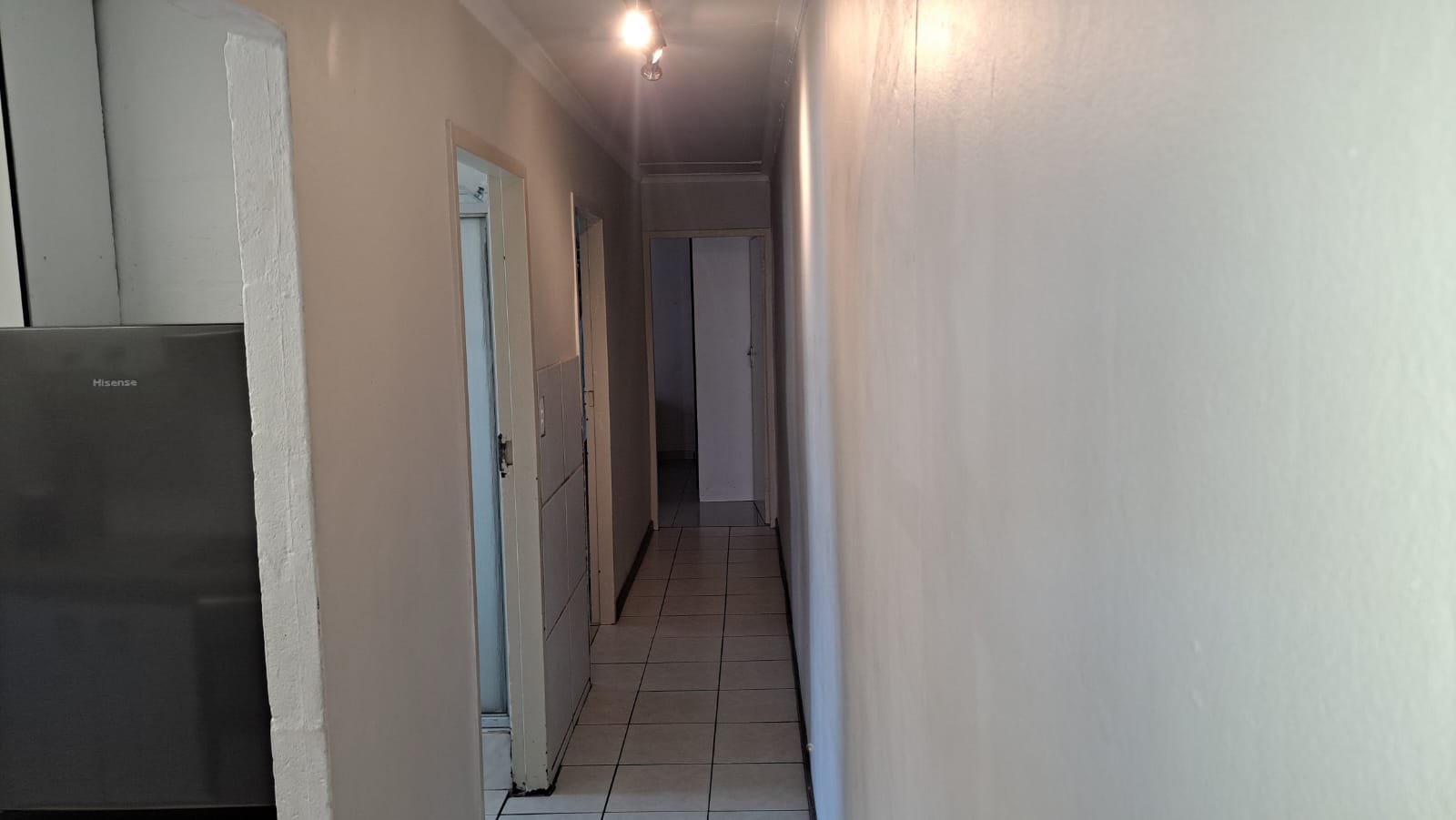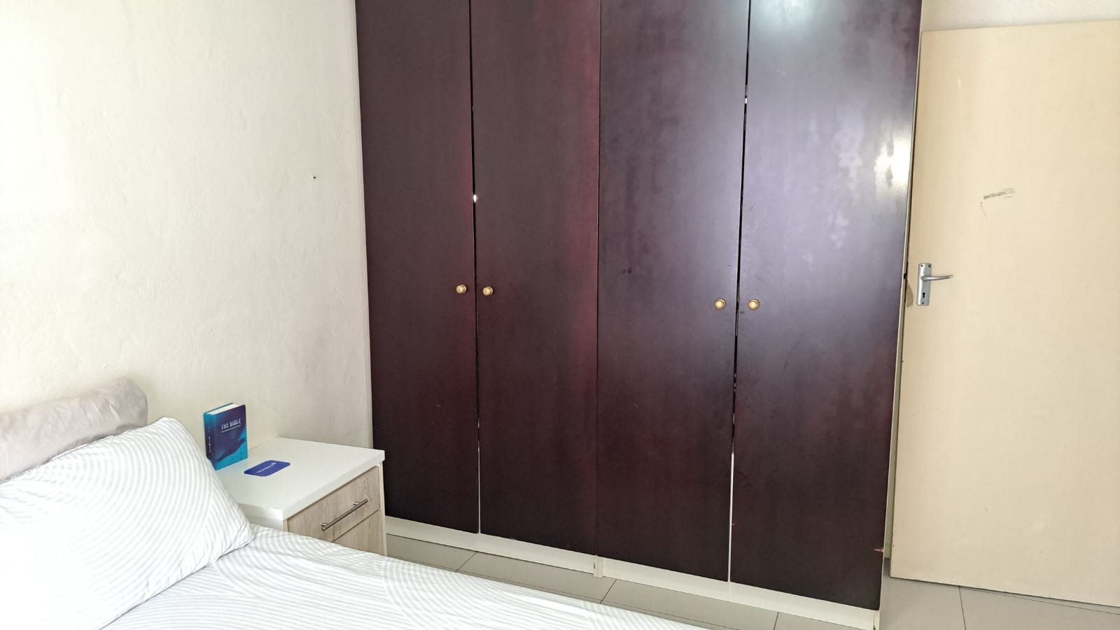 Neat free-standing 2 bedroom house in quiet and neighbourly section of New Woodlands. The house has a lounge and tiles throughout. Both bedrooms have bic's. Family bathroom has a bath, shower, toilet and basin. Kitchen has bic's, a hob and oven. There's also a separate laundry area with connections for a washing machine and dish washer. The laundry space is big enough to incorporate a pantry as well.