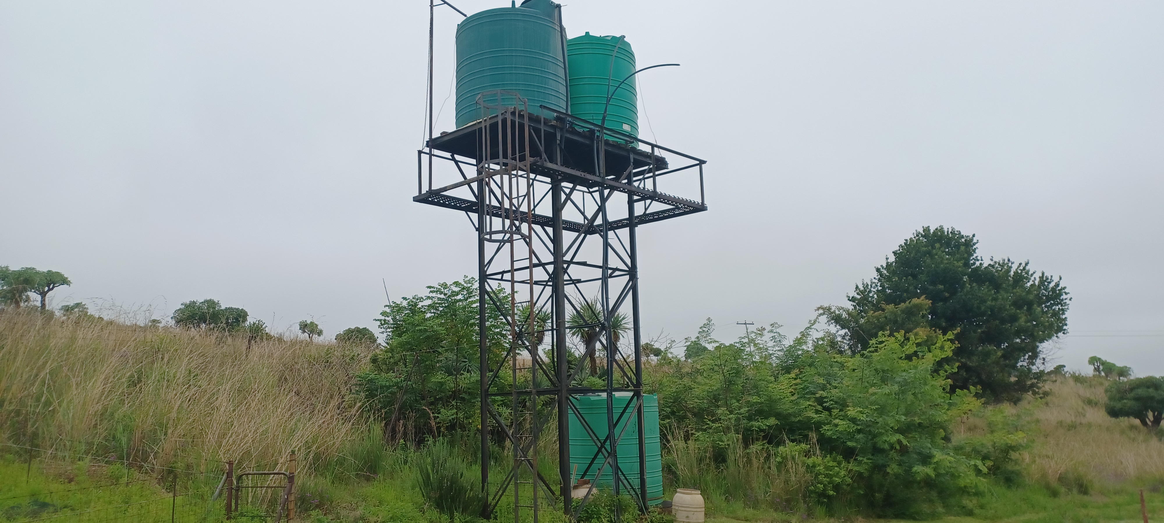 The land is divided into four manageable camps, making pasture management straightforward. Additionally, there is a small pigsty capable of comfortably housing six large pigs. The property features two boreholes, one of which is fully equipped and in use, with a water storage capacity of 15,000 liters supported by a large water tower to ensure adequate pressure.
