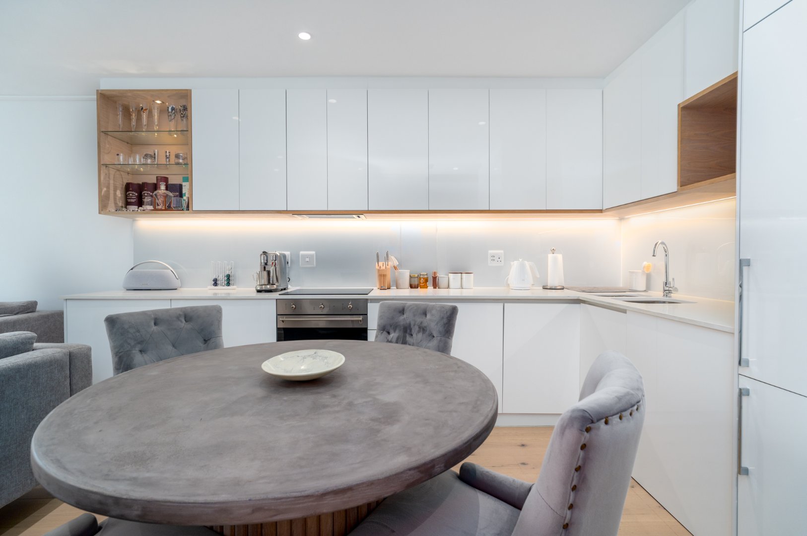 Designer Kitchen – Integrated dishwasher, washer/dryer combo, plus space for a wine cooler, all hidden behind seamless cabinetry.