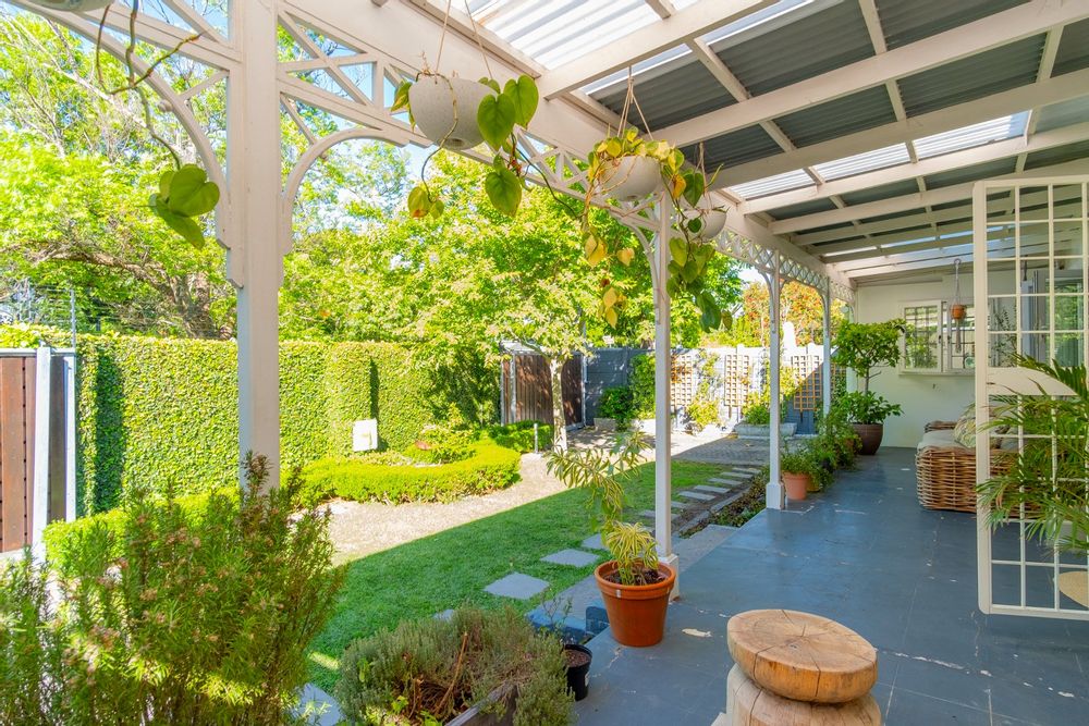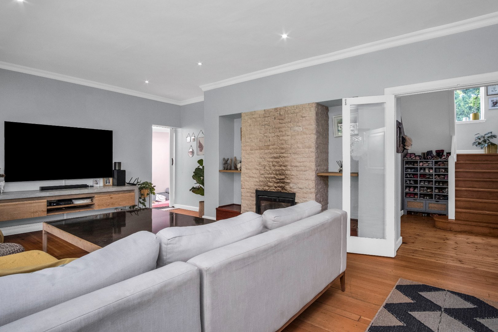Open-Plan Living & Dining Areas - An airy lounge and dining room offer an open-plan layout perfect for entertaining or family gatherings. The lounge features a cozy fireplace, while stack-back windows open to the charming front patio and garden, bringing plenty of sunlight into these rooms. The dining area easily accommodates a large table for hosting friends and family.