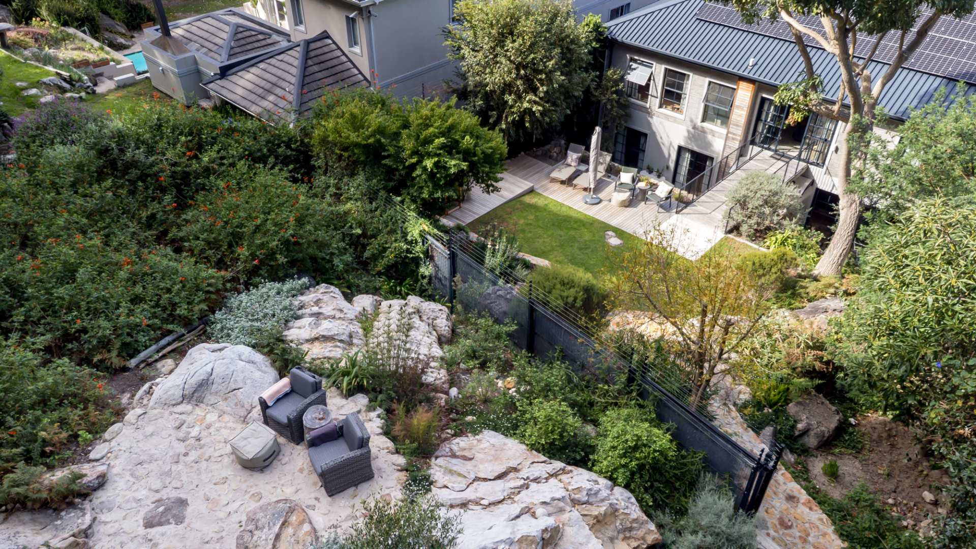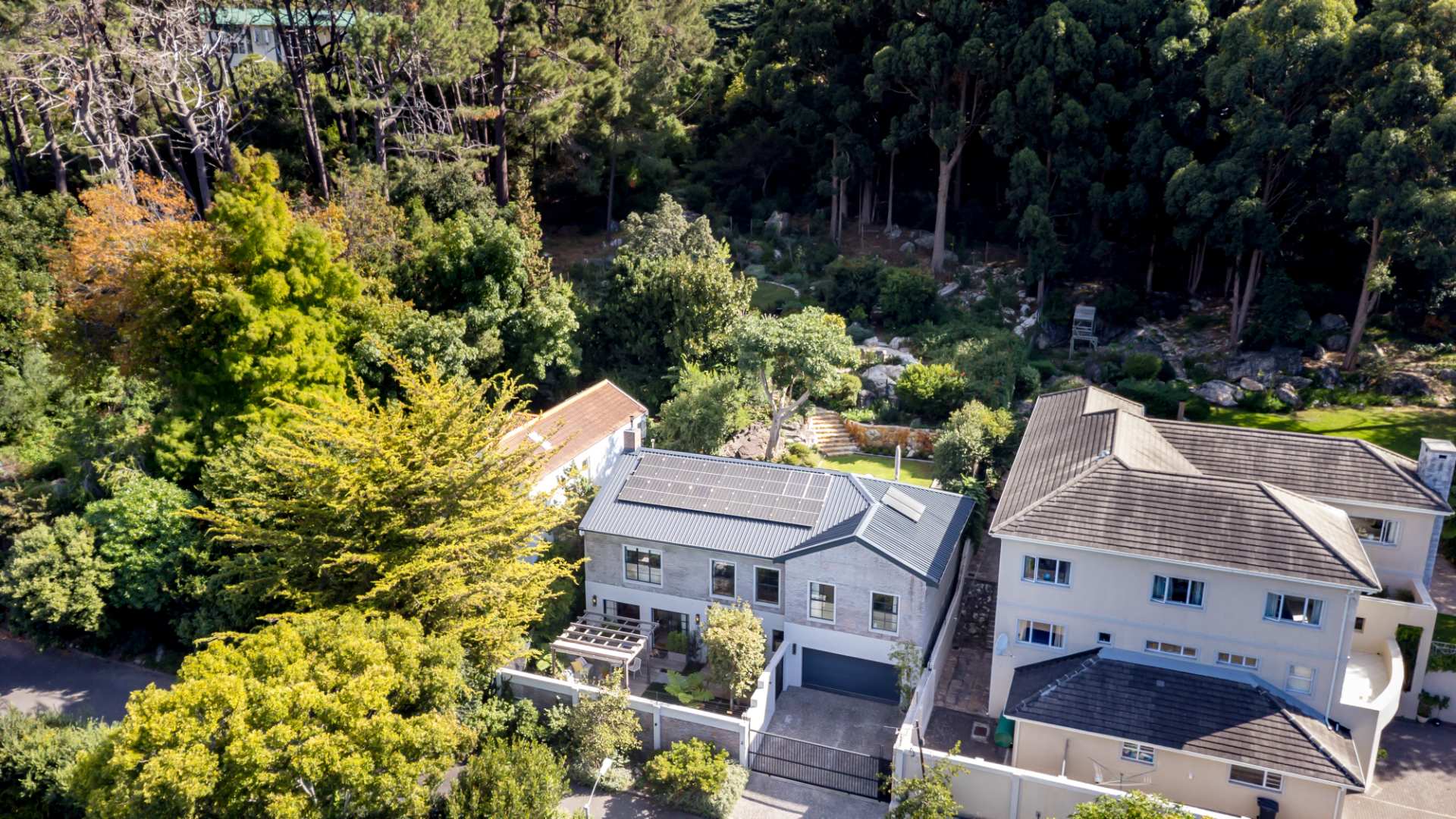 An eye for details throughout this home such as wall panelling and solid wood interior doors are appreciated in person to those that value high end features and finishes. 100% off the grid with 36 solar panels, two x 5kva Deye inverters and two Volta batteries (1 x 14kw & 1 x 10kw), not only creating seamless family living but embracing what nature has to offer while providing a long-term saving solution. Fitted with all the security for peace of mind consisting of CCTV cameras, electric fencing, exterior beams, an alarm system, intercom, pedestrian gate and automatic driveway gate, with direct access from the double garaging into the house and secure parking for a further 2 cars.