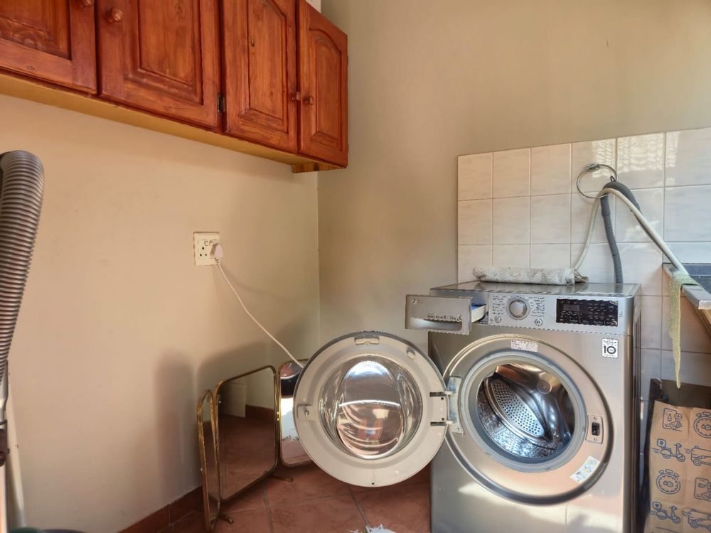 Generous in size, the second home offers 3 well-sized bedrooms and 2 bathrooms, with the master bedroom boasting an en-suite. The open-plan lounge and dining area, enhanced by an air-conditioning unit, flow seamlessly to the family kitchen with wooden cupboards, hob, and eye-level oven. Outdoors, a built-in braai and expansive garden set the stage for relaxed family living and entertaining. Added convenience includes a separate laundry room, a double garage, a double carport, and additional secure parking.