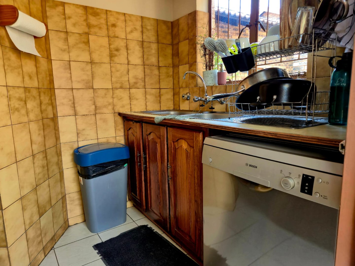 This inviting home features 2 spacious bedrooms and 2 bathrooms, including a master en suite with shower and a second bathroom with bath. The open-plan lounge and dining area lead onto a patio overlooking the private garden, while the kitchen is fitted with ample cupboard space, melamine countertops, and a separate scullery with laundry connections. A single garage and extra parking complete this practical unit. Unfortunately no photos but very similar to House 2.
