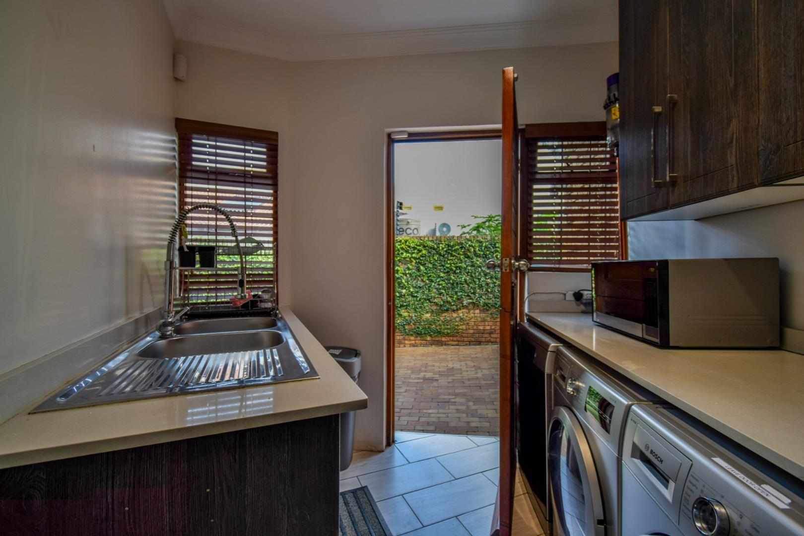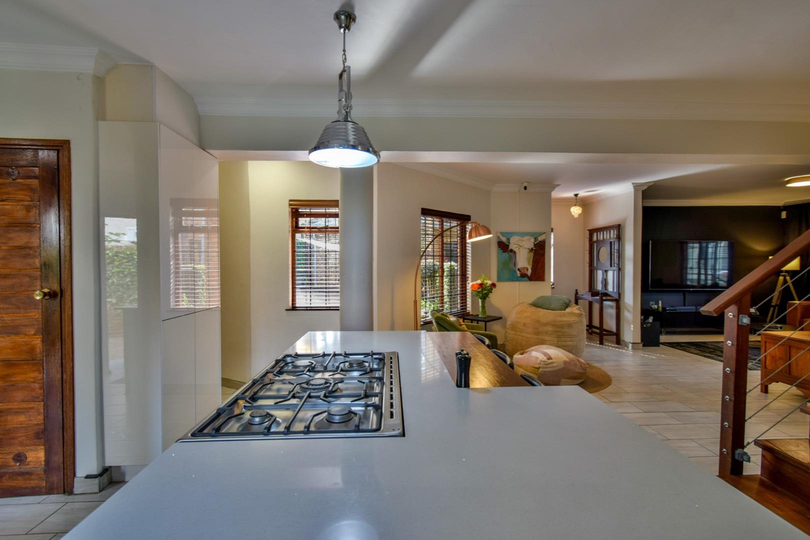 -Modern open-plan kitchen with ample cupboard space, breakfast nook, gas hob and separate scullery with pantry and three appliance spaces