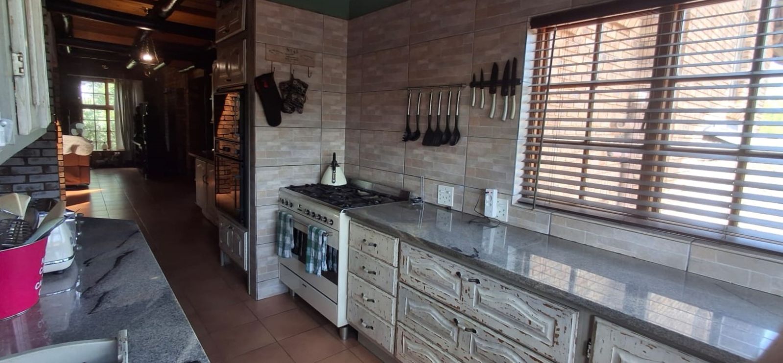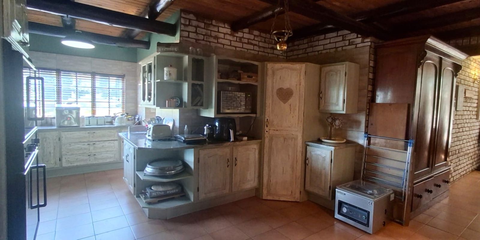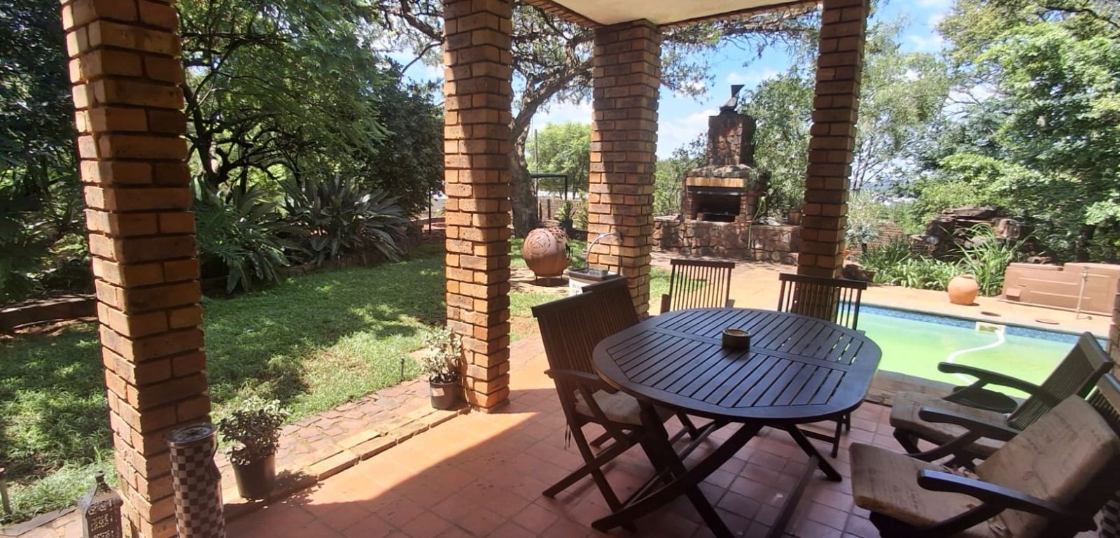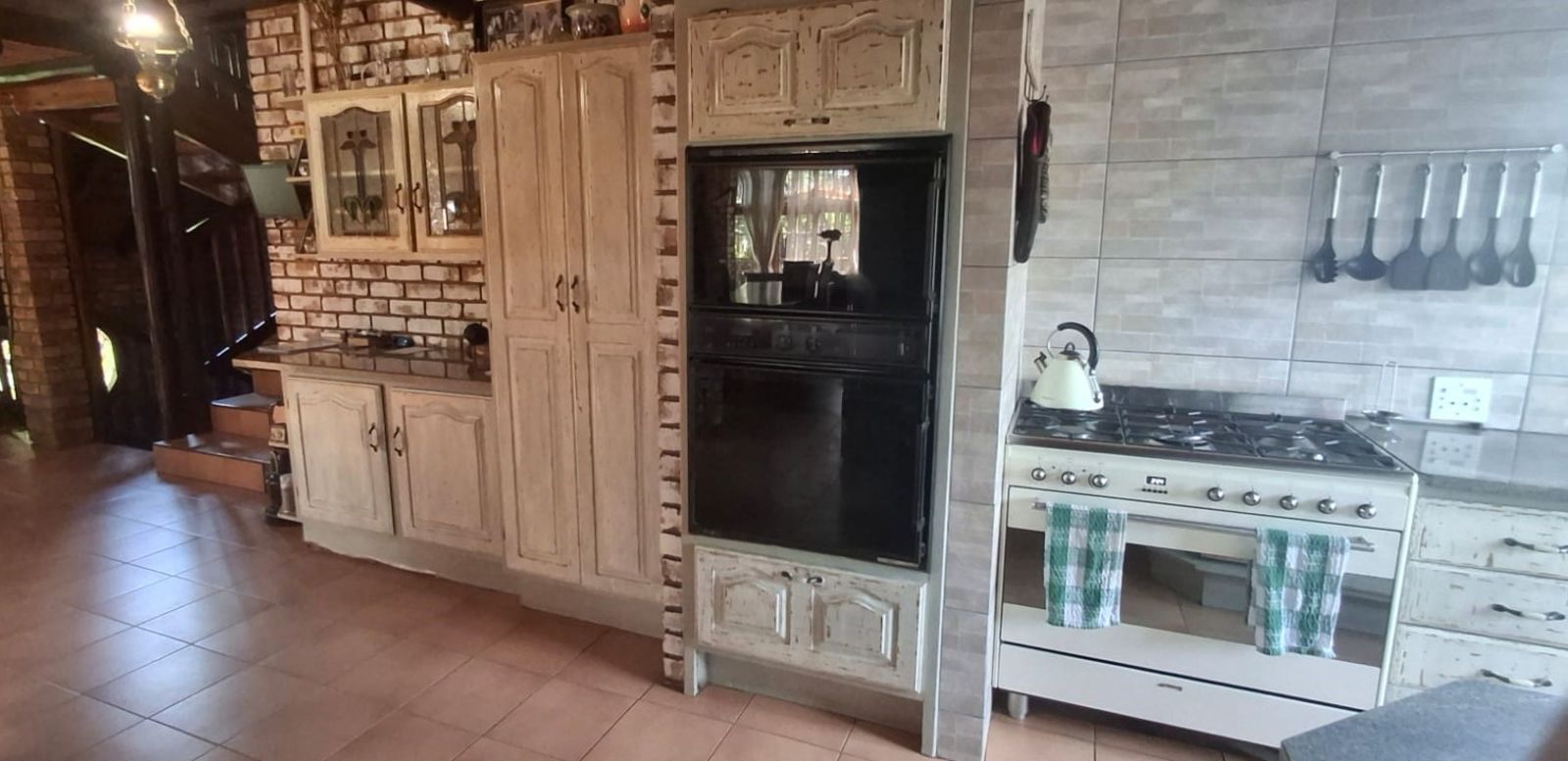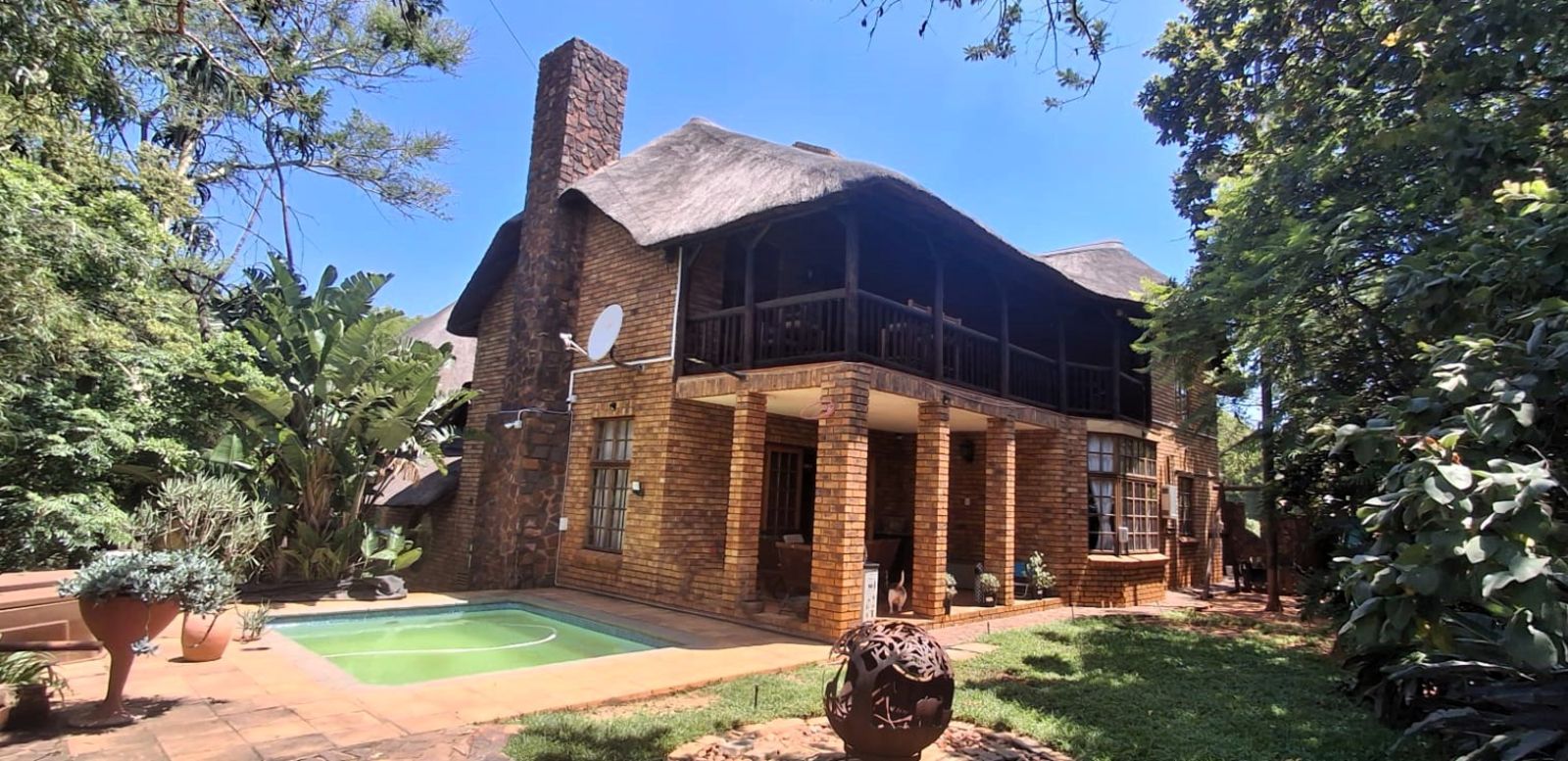 Enjoy beautifully landscaped gardens, a heated pool, built-in braai, and charming thatch finishes throughout. Added extras: 3 automated garages, solar panels, and inverter system.