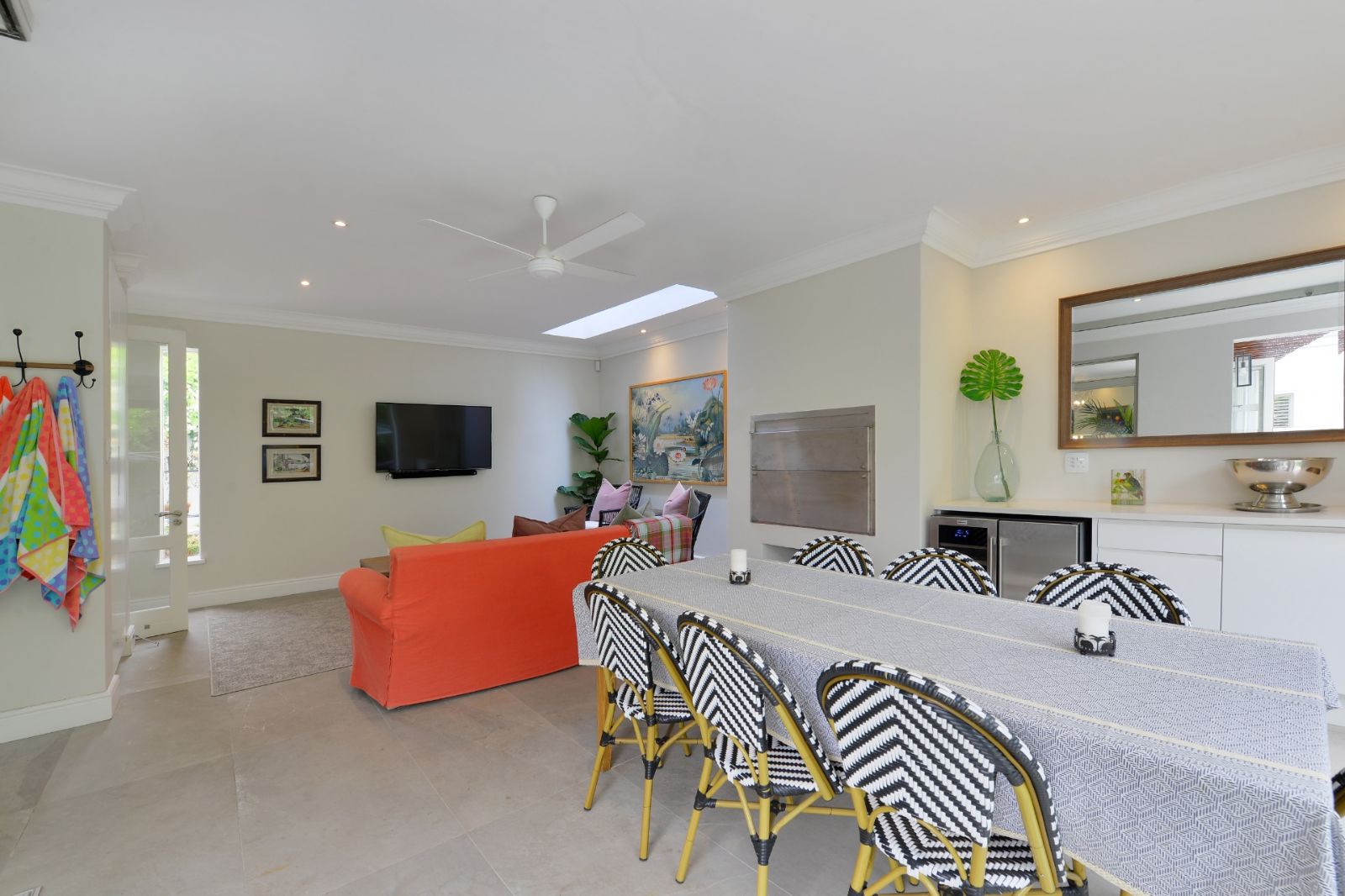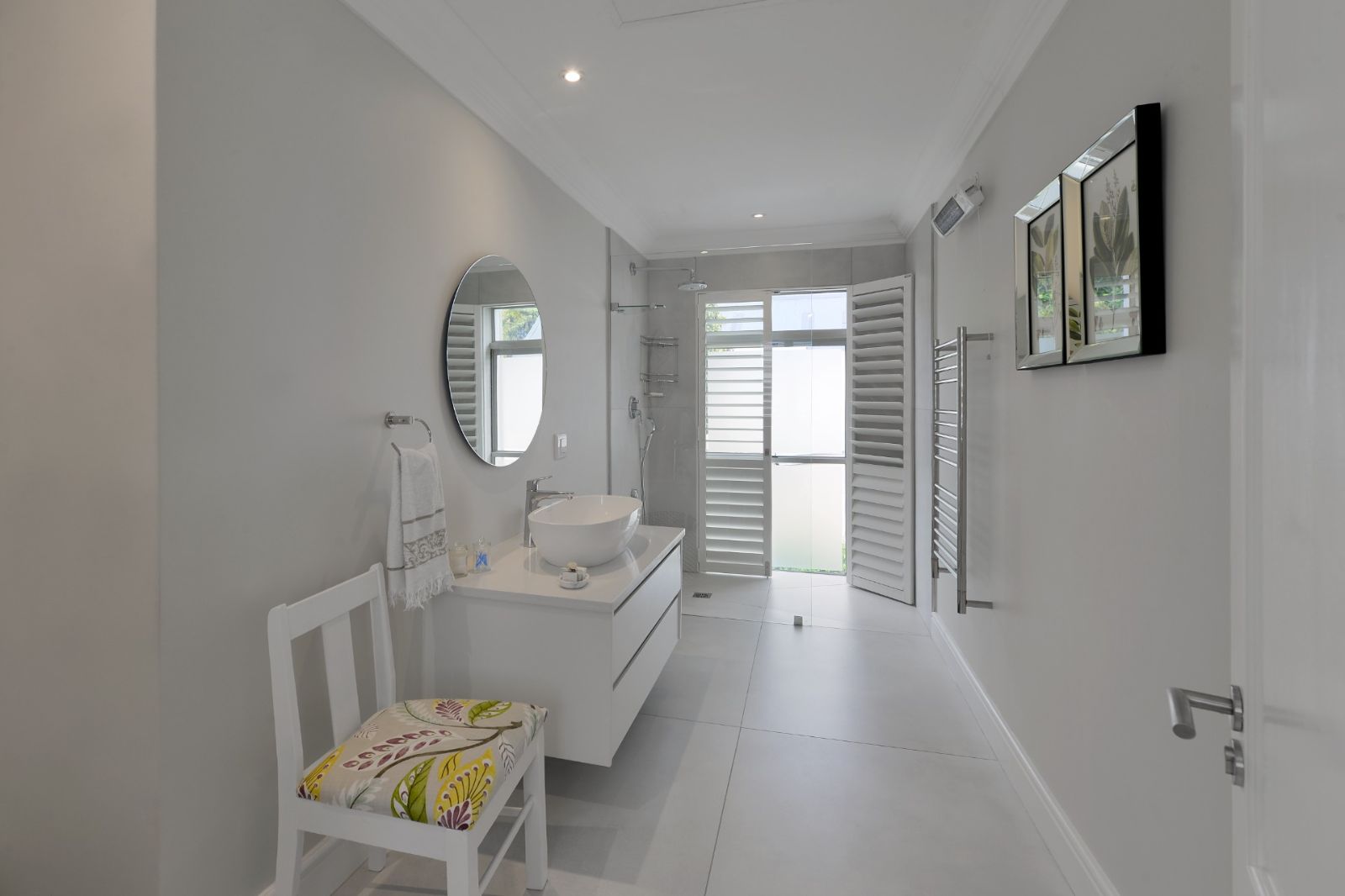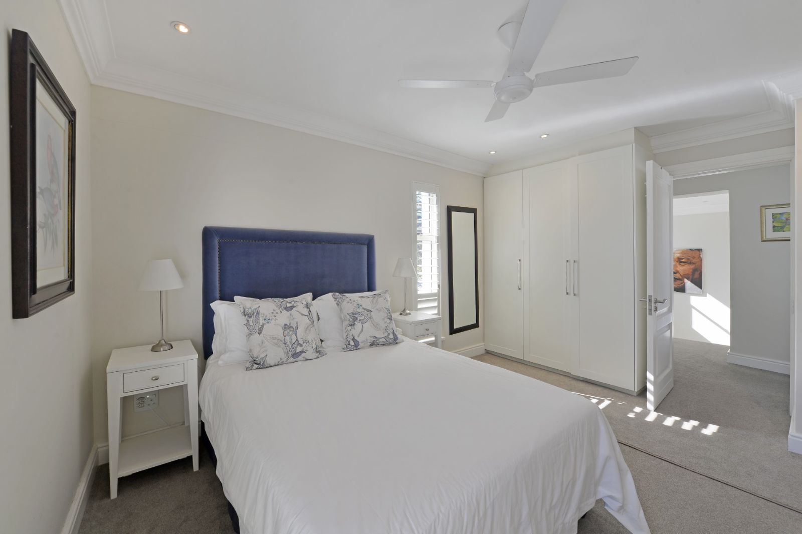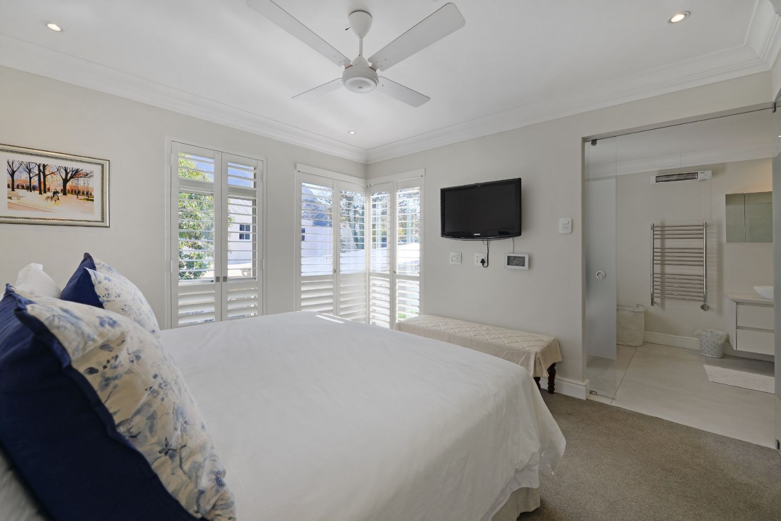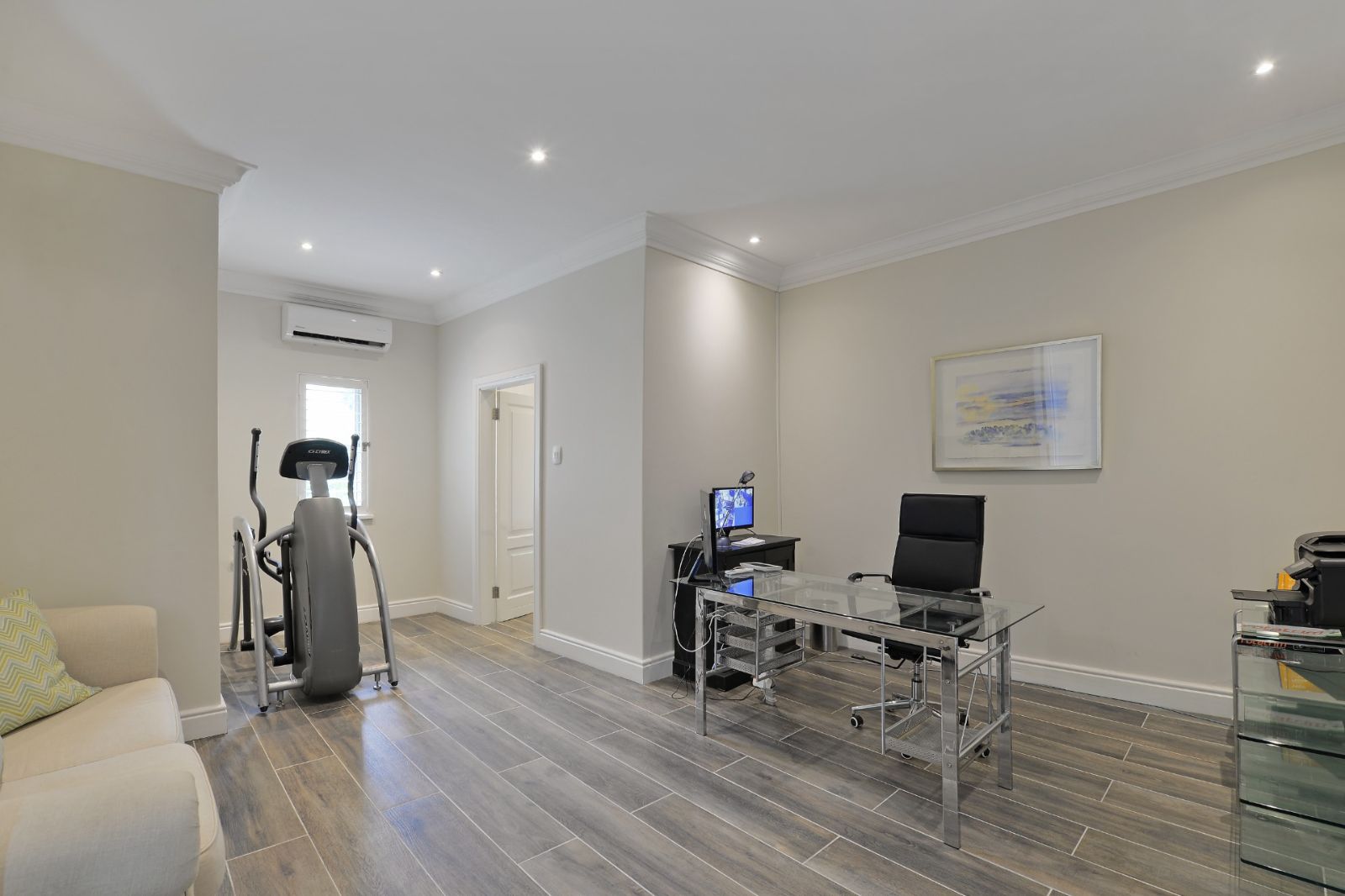 Recently built, this modern home is the epitome of chic lock-and-go in the heart of Newlands Village, equipped with every carefully thought-out modern convenience such as solar electricity backup and rainwater harvesting, filtration and storage. The open plan living room is the heart of the home, and has expansive openings to the landscaped courtyard and pool deck with mountain views. The adjacent TV room / enclosed patio caters for more informal entertaining or the Sunday braai irrespective of the weather, complete with the swimming pool within the living area with frameless glass enclosure. Natural light floods the fitted kitchen through skylights. Upstairs the main bedroom is en suite with a full bathroom in glass walls and dressing room. Two further bedrooms share a family bathroom.