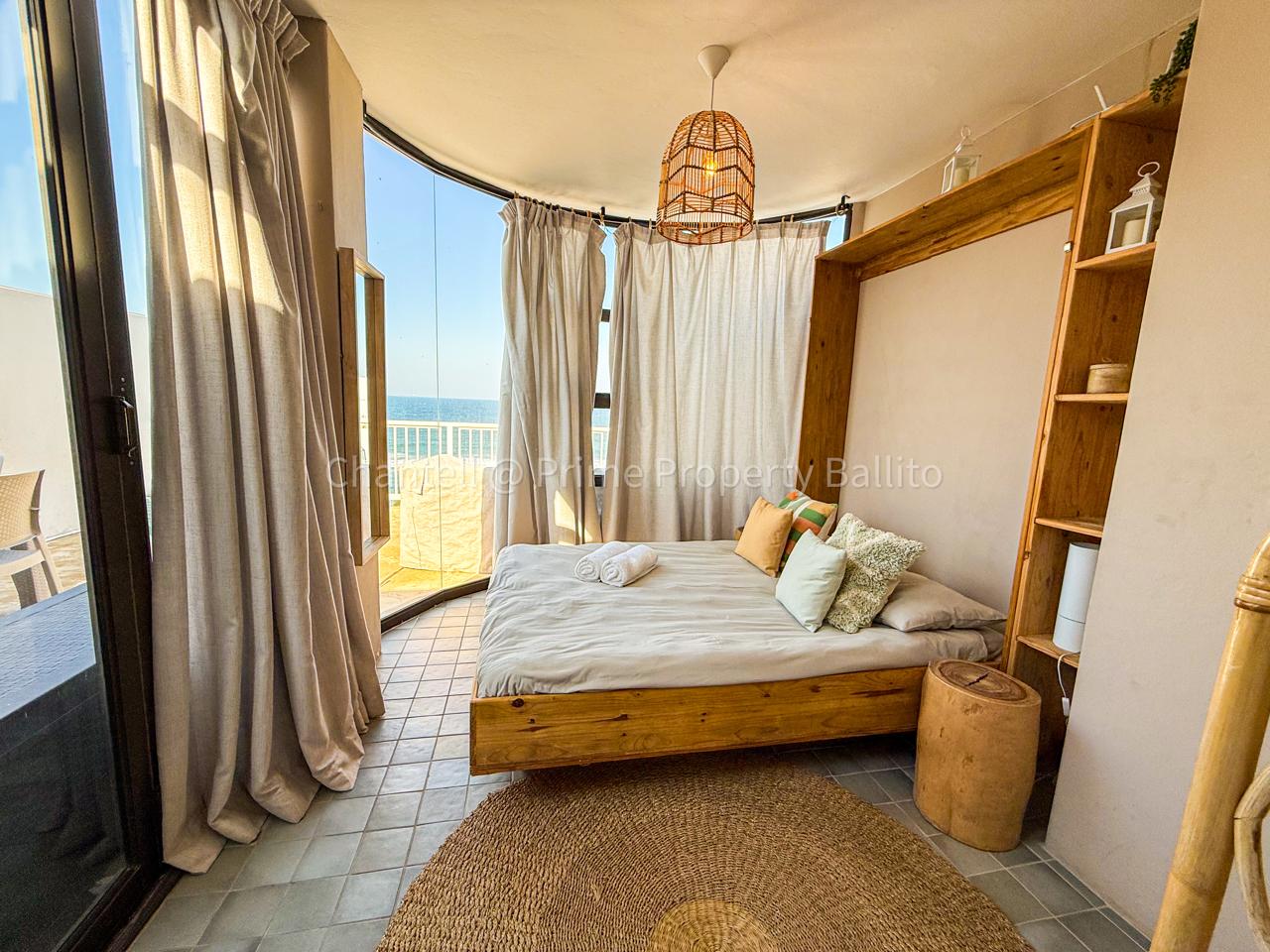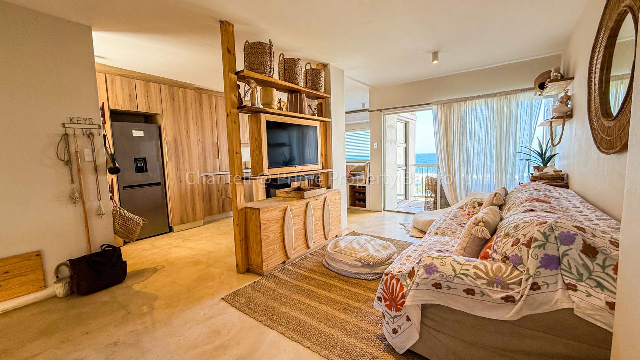 Experience beachside living at its best in this beautifully renovated 3-bedroom, 2-bathroom triplex apartment, perched on the top floor of a sought-after beachfront complex. Soak in sweeping sea views from every room, enjoy open-plan living that flows onto a sea-facing balcony, and relax in stylish, fully furnished interiors ready for immediate use or rental. The main bedroom features an en-suite and private balcony, while two additional bedrooms share a modern bathroom—one with its own balcony overlooking the Indian Ocean.