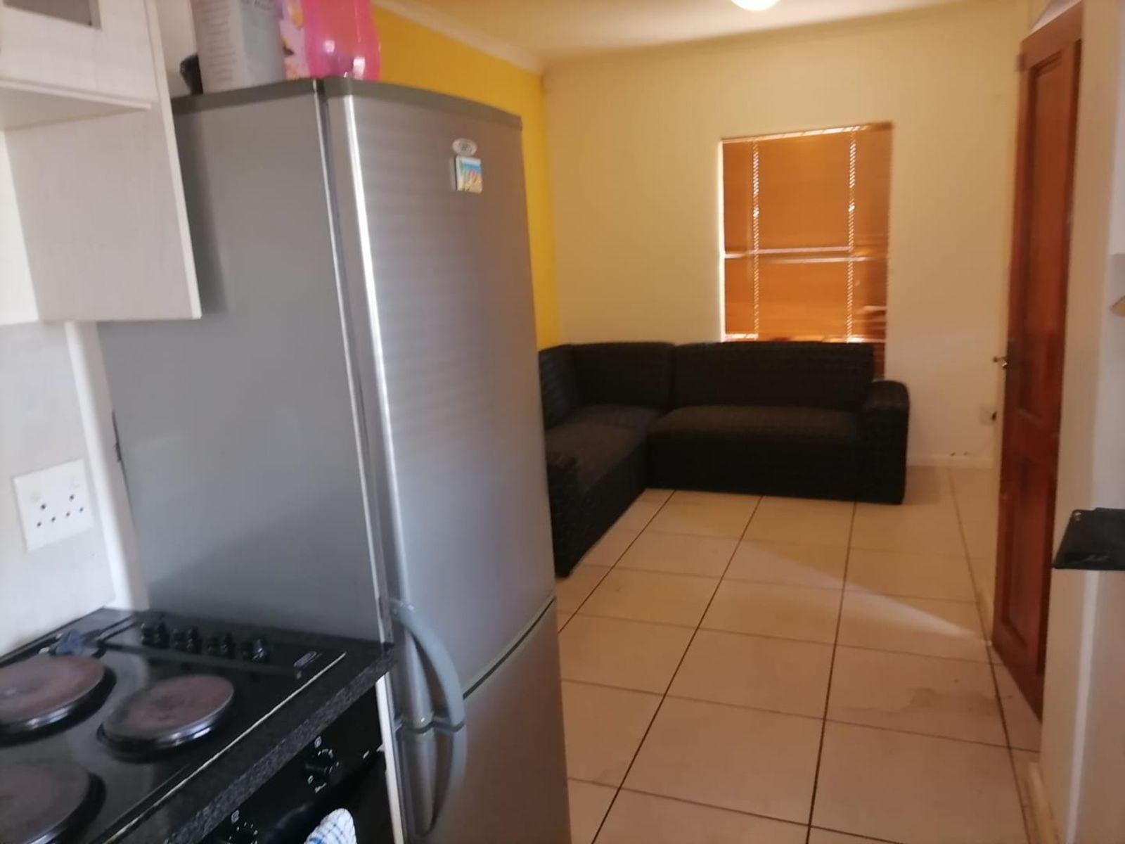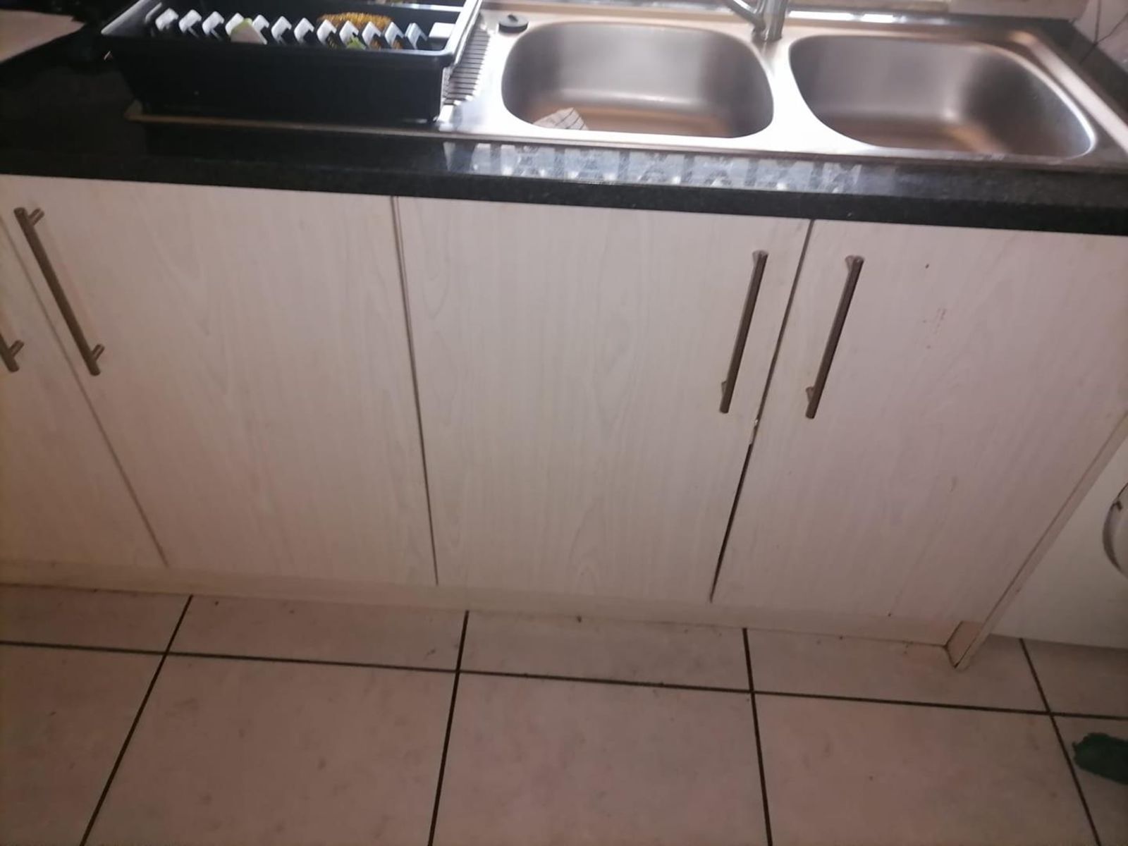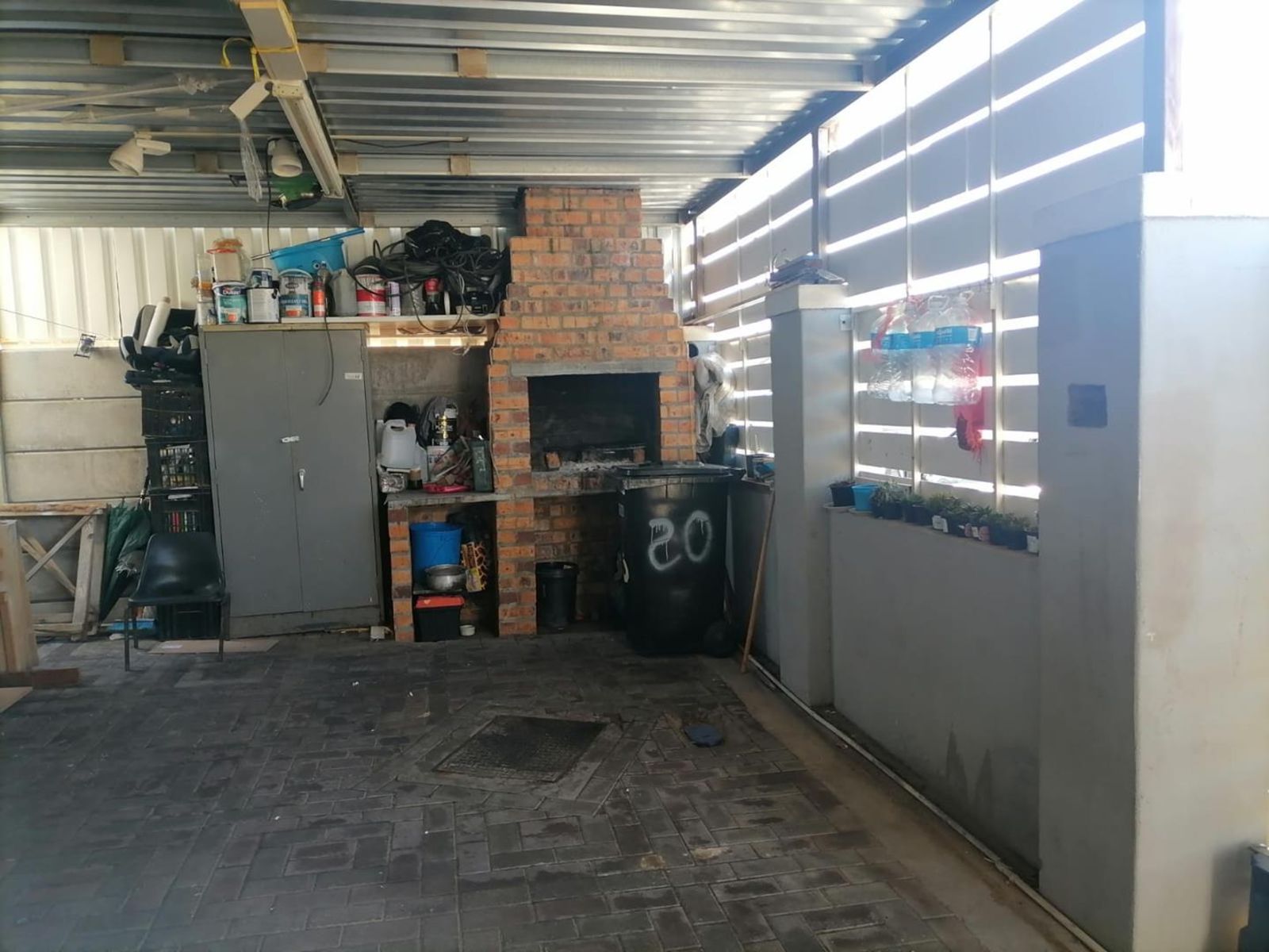 The spacious living room flows into an open plan kitchen that is equipped with ample space for your microwave, fridge, and either a washing machine or dishwasher. The kitchen also boasts a built-in electric oven and stove, along with additional built-in cupboards for storage. The under-roof parking area easily accommodates two vehicles and offers a delightful space for outdoor entertainment with its built-in braai.
