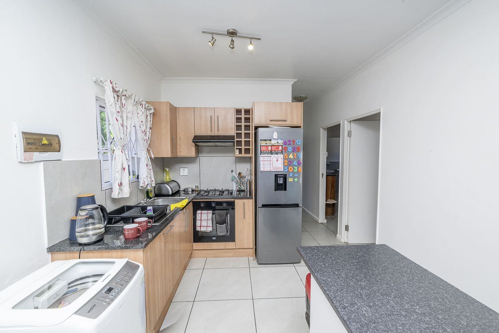 Step in through a covered front entrance with a security gate. You’ll immediately see an open plan space combining the L-shaped living room, dining area, and kitchen. The kitchen is ready to go, with a gas hob, electric oven, extractor fan, a double sink, and plenty of built-in cabinets (top and bottom) with granite countertops. There’s even a water point for your washing machine or dishwasher.