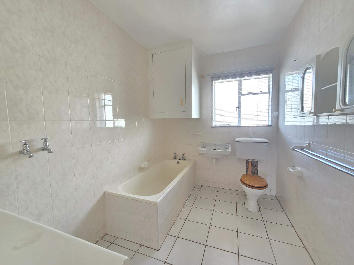Main bathroom with bath, toilet & basin, plus plumbing your washing machine