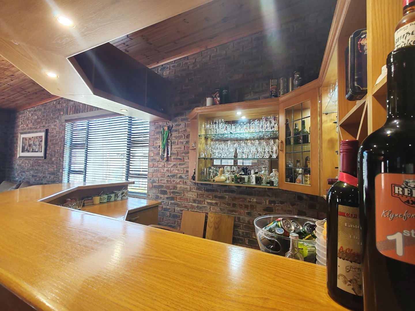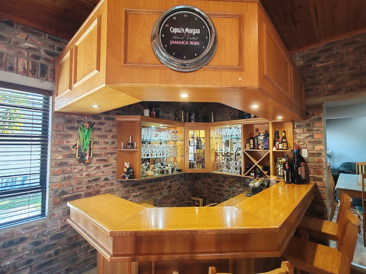 - Beautiful oak wood built-in countertop bar area, with wine racks, mirrors and cupboard space, a bonus of a quality pool table that will remain.