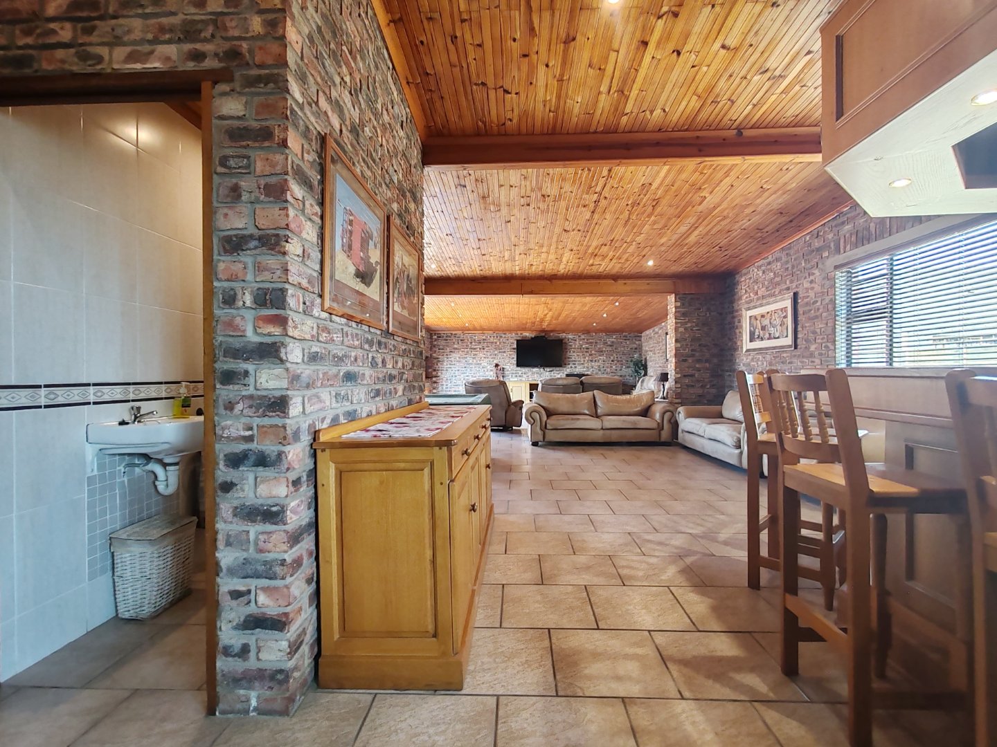 - Multiple living spaces: Perfect for the entertainer. TV/Family/entertainment room with built-in braai, fitted aircon.