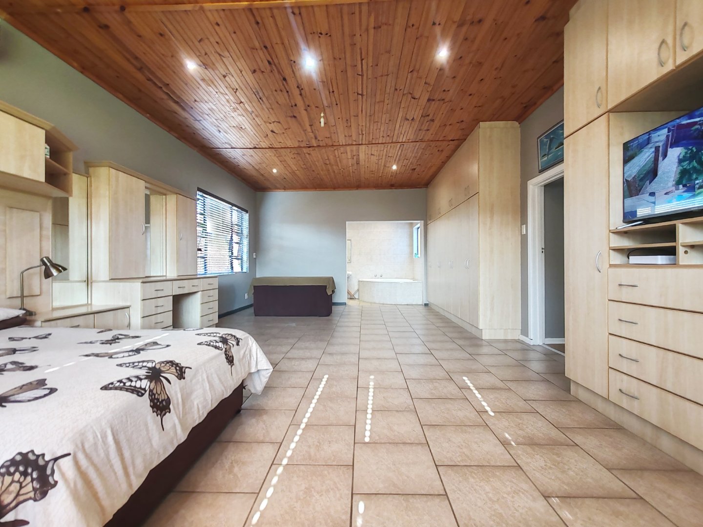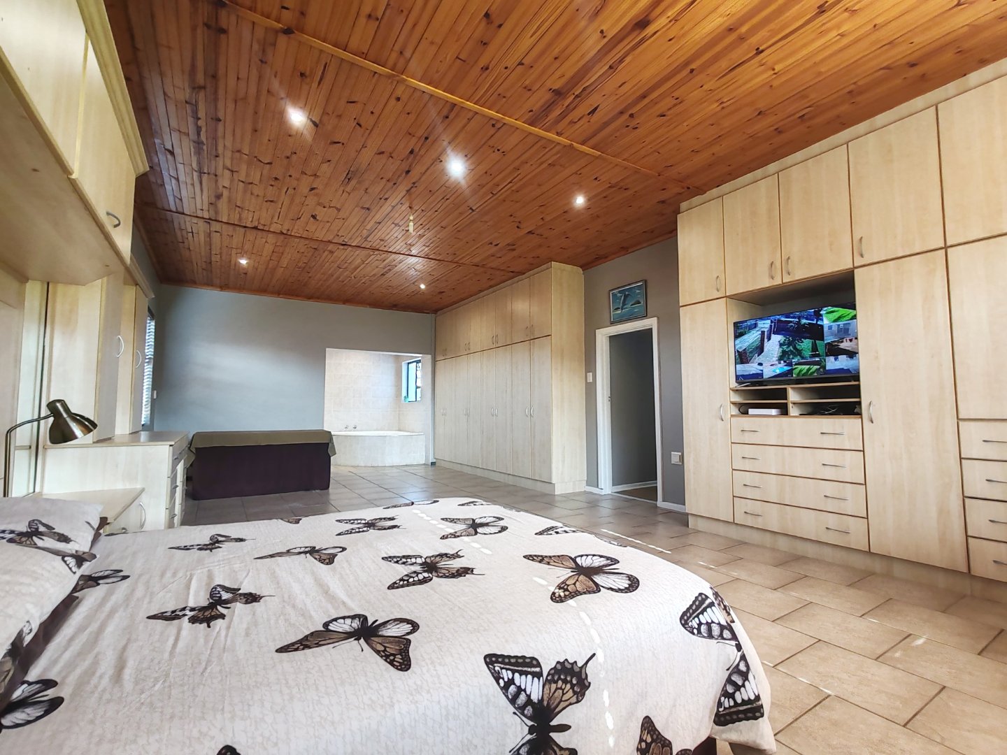 - The master Bedroom also has a built in padded headboard and dresser, loads of BIC’s CCTV set up and full ensuite with corner bath