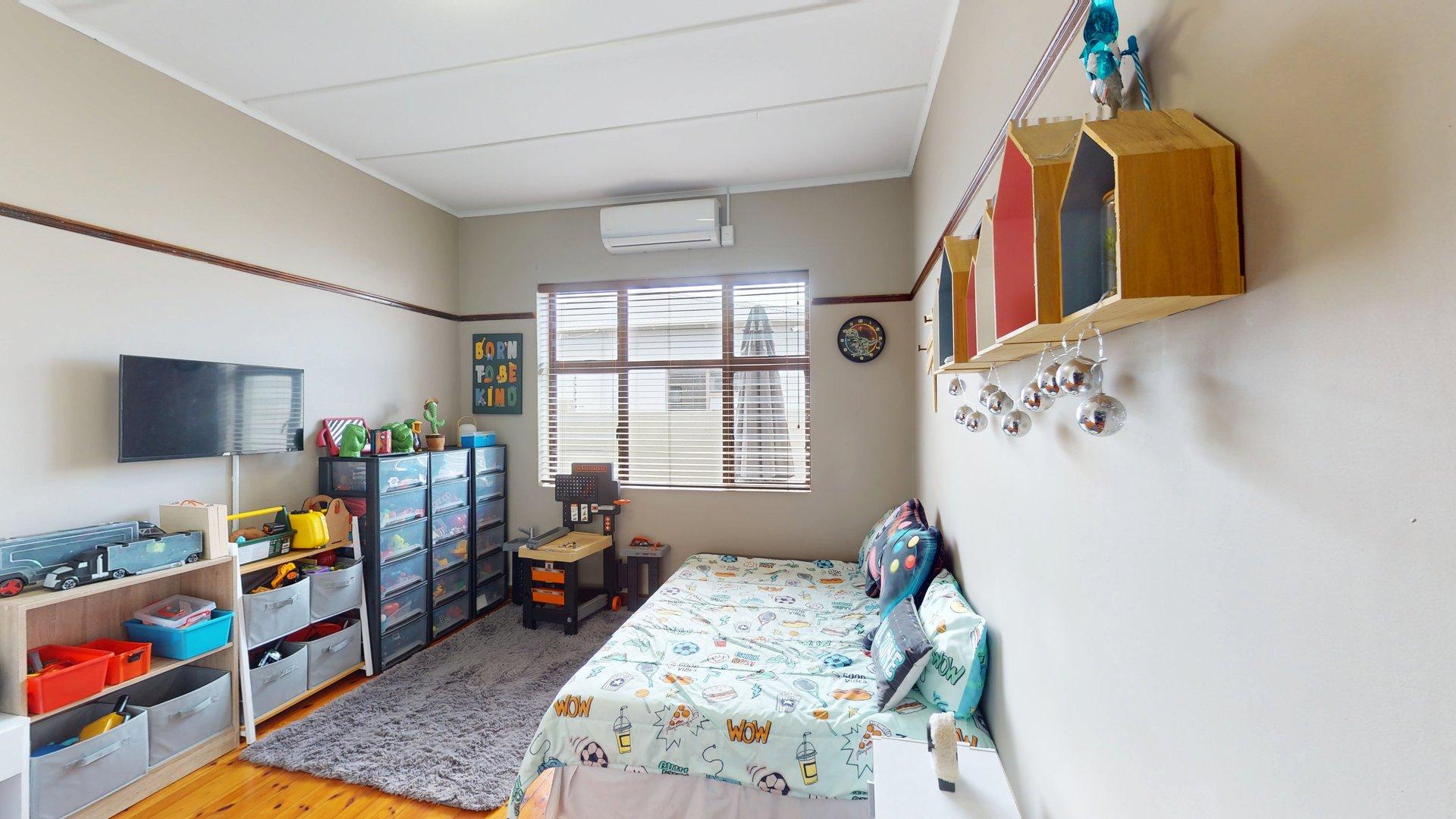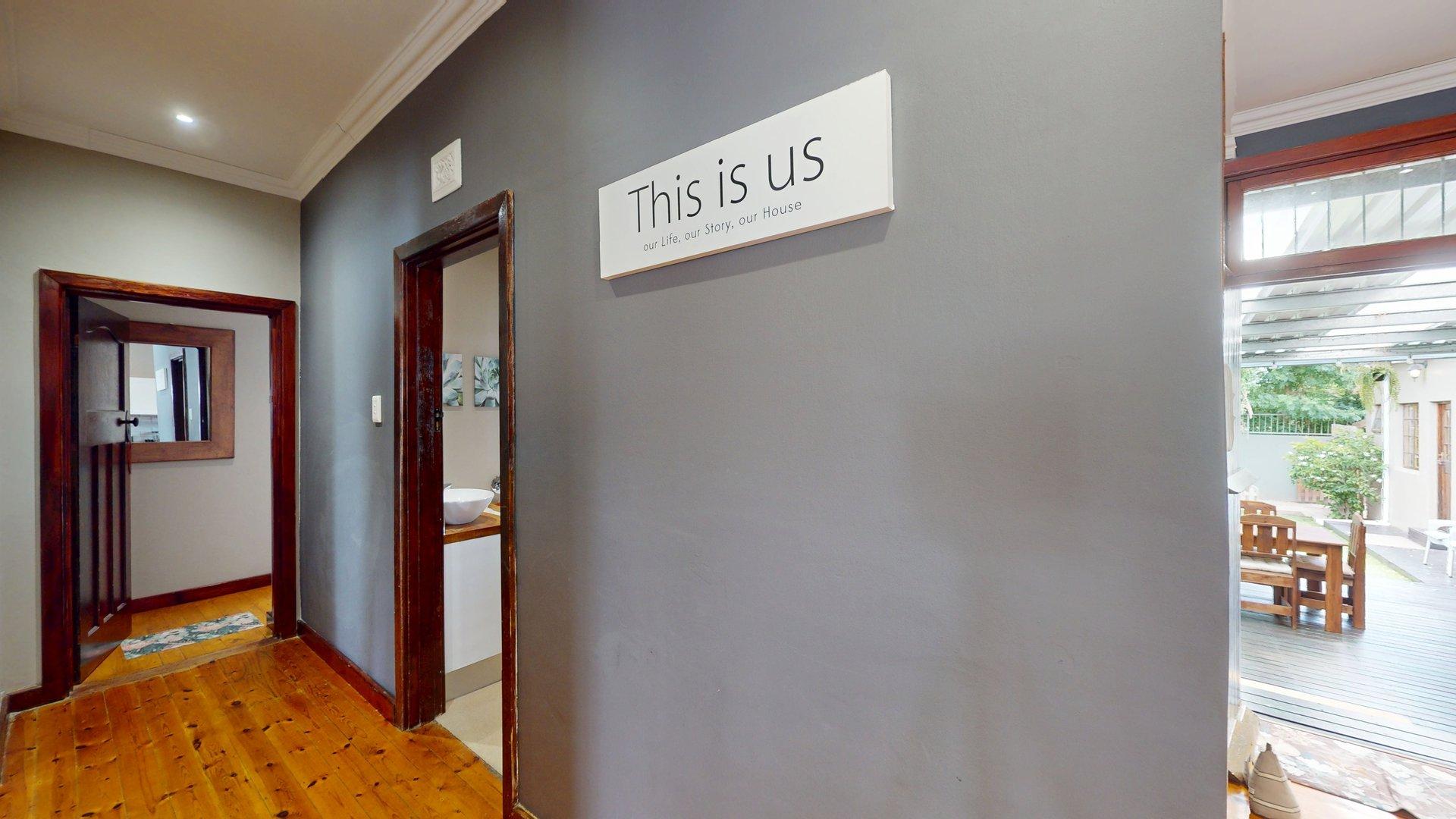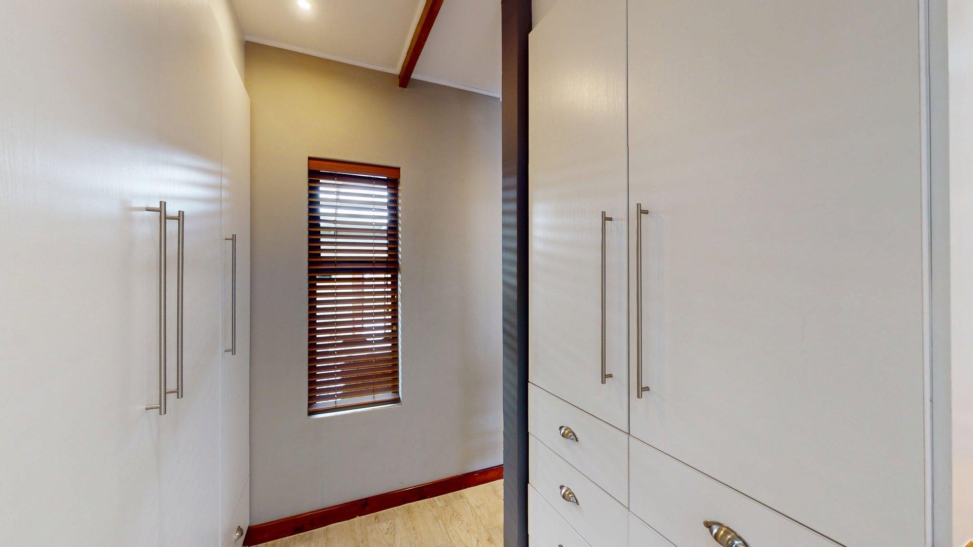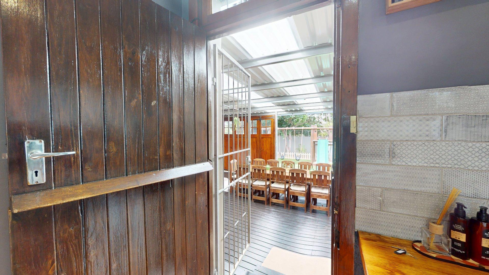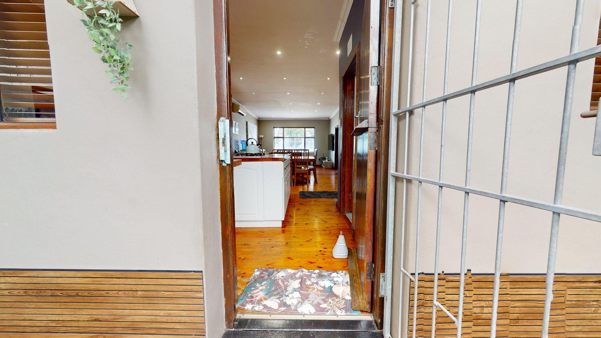 Sustainability and security have been well considered, with features including a large water tank connected to the home for domestic use, a solar geyser, and solar-powered exterior lighting for added security. The property is fitted with an alarm system, and the fully enclosed, manicured garden provides a safe, private environment for children and pets. An outside garden shed offers convenient additional storage.