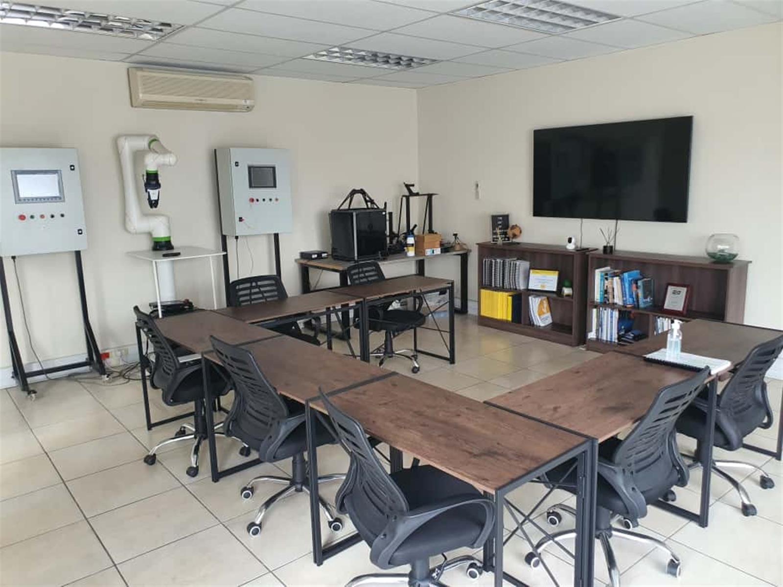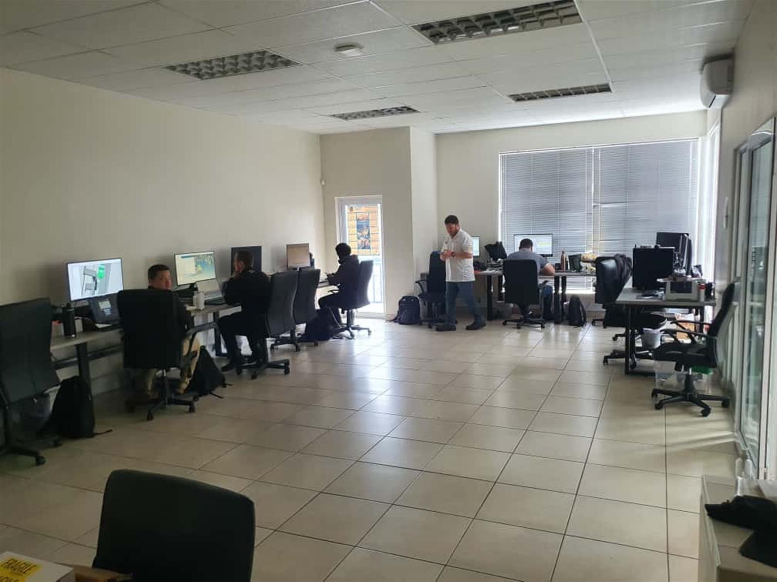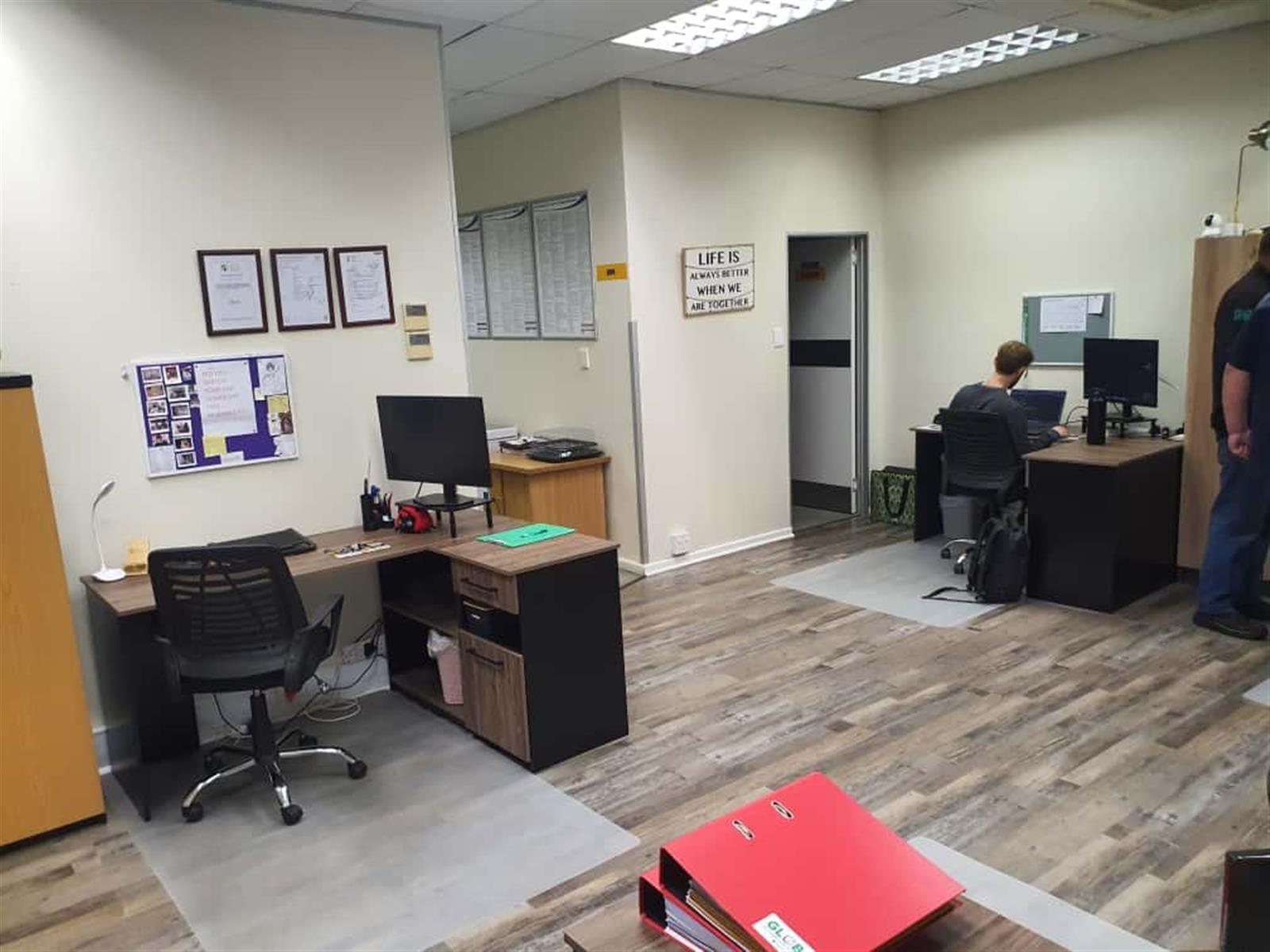 A spacious air-conditioned reception area leads to a large boardroom and multiple private offices, complemented by several open-plan areas that can be configured to suit operational requirements. Additional features include large storage rooms, multiple kitchens, and two sets of separate male and female ablutions, ensuring convenience for both office and warehouse staff.