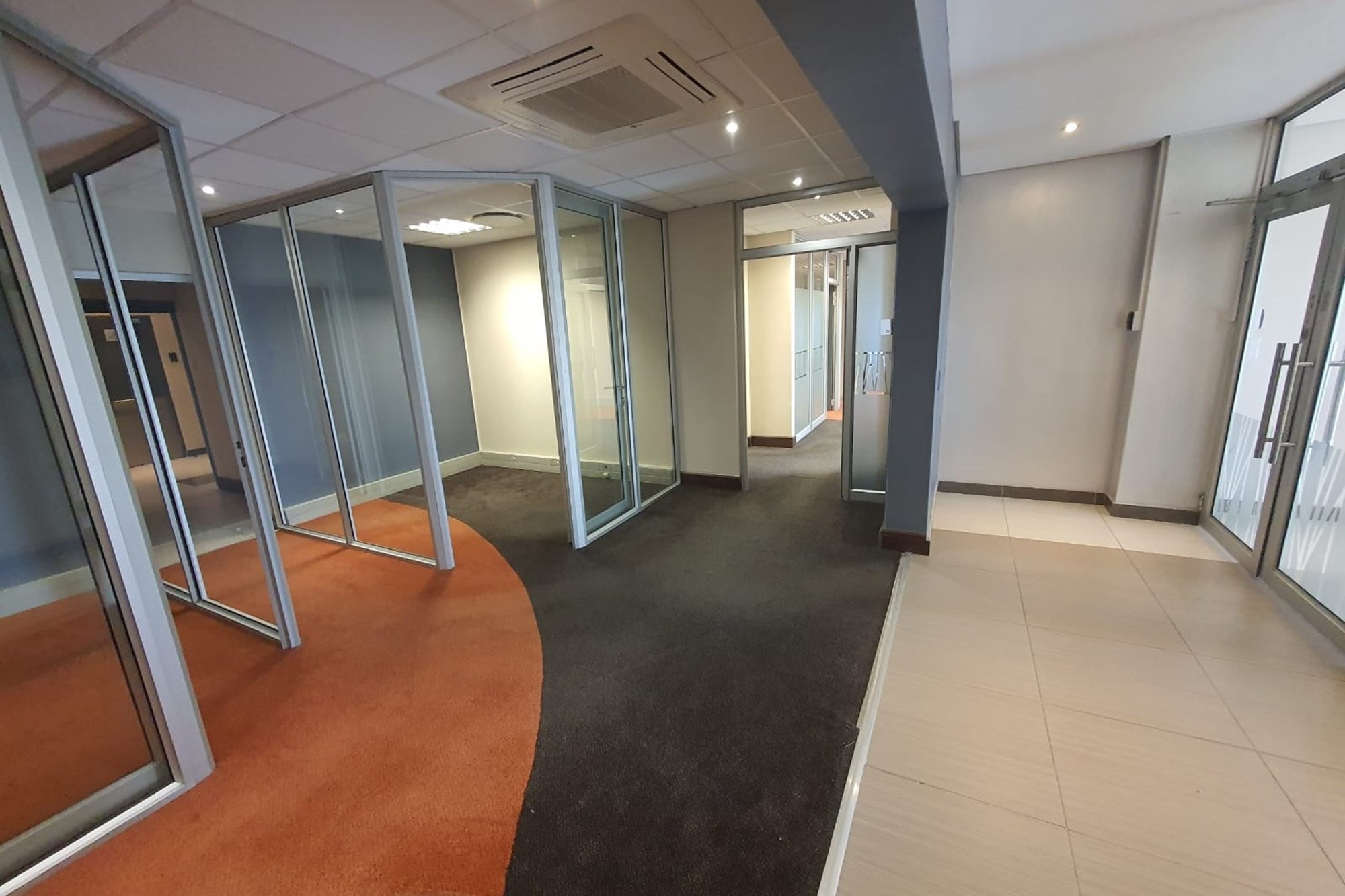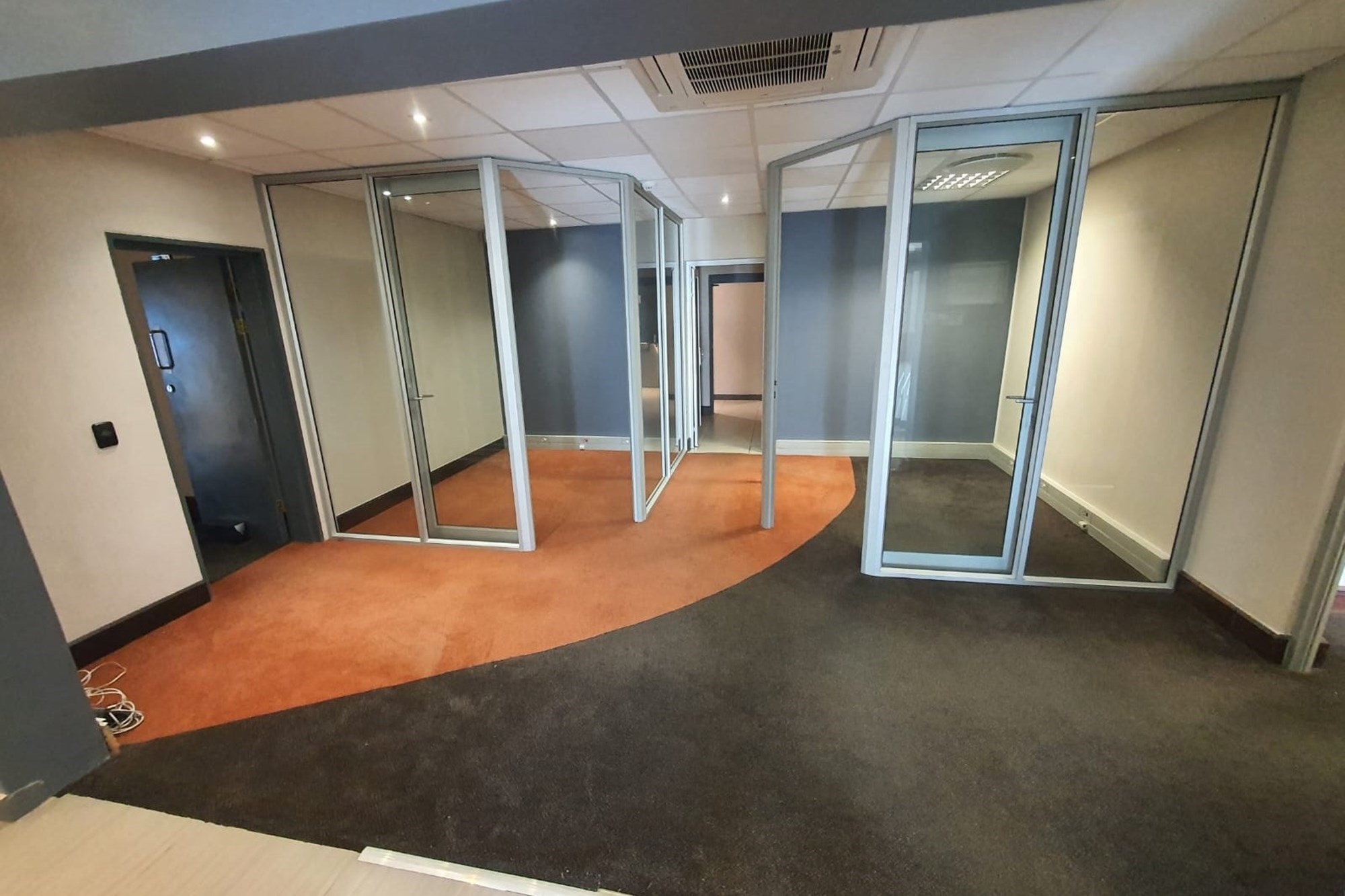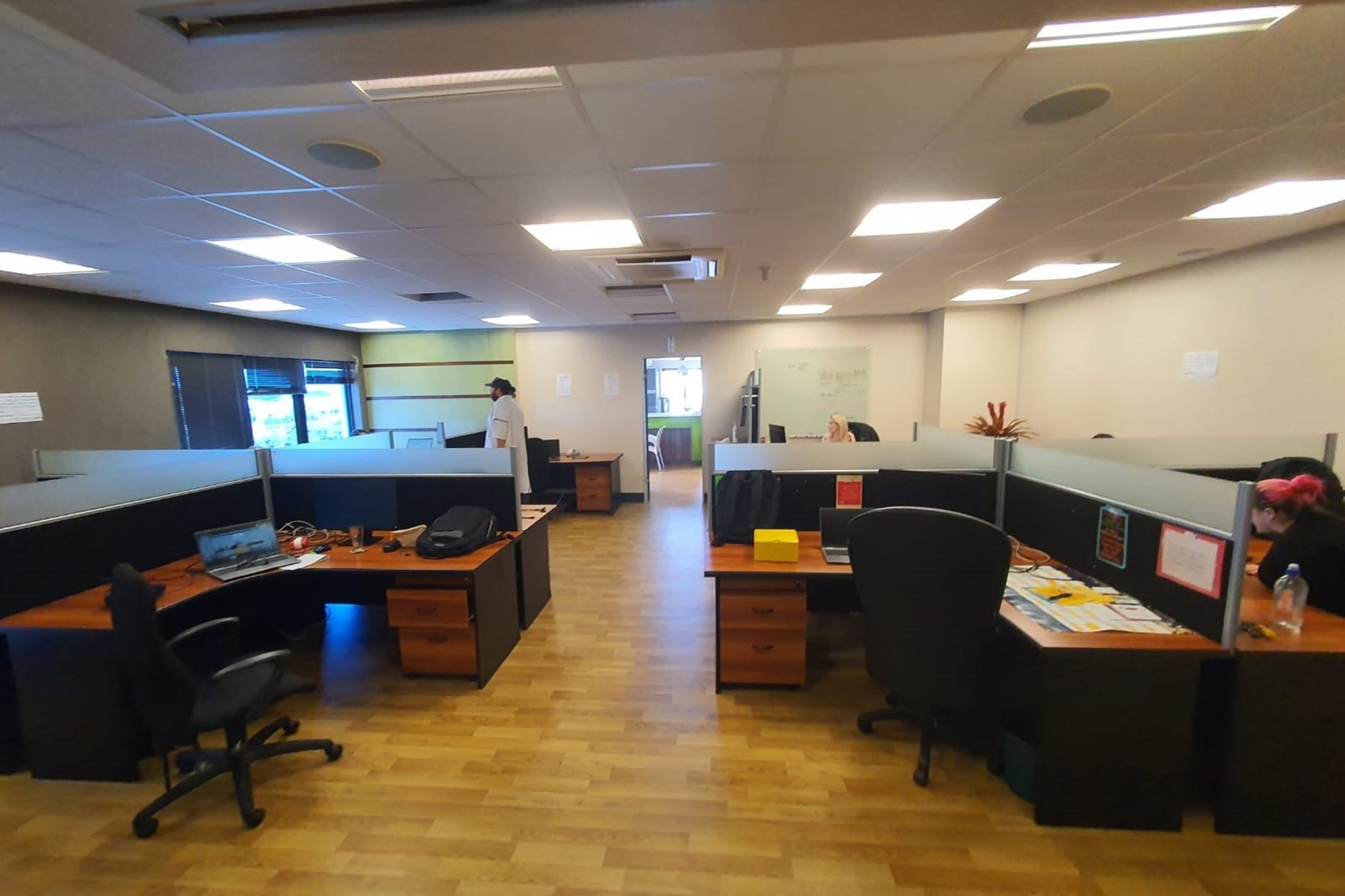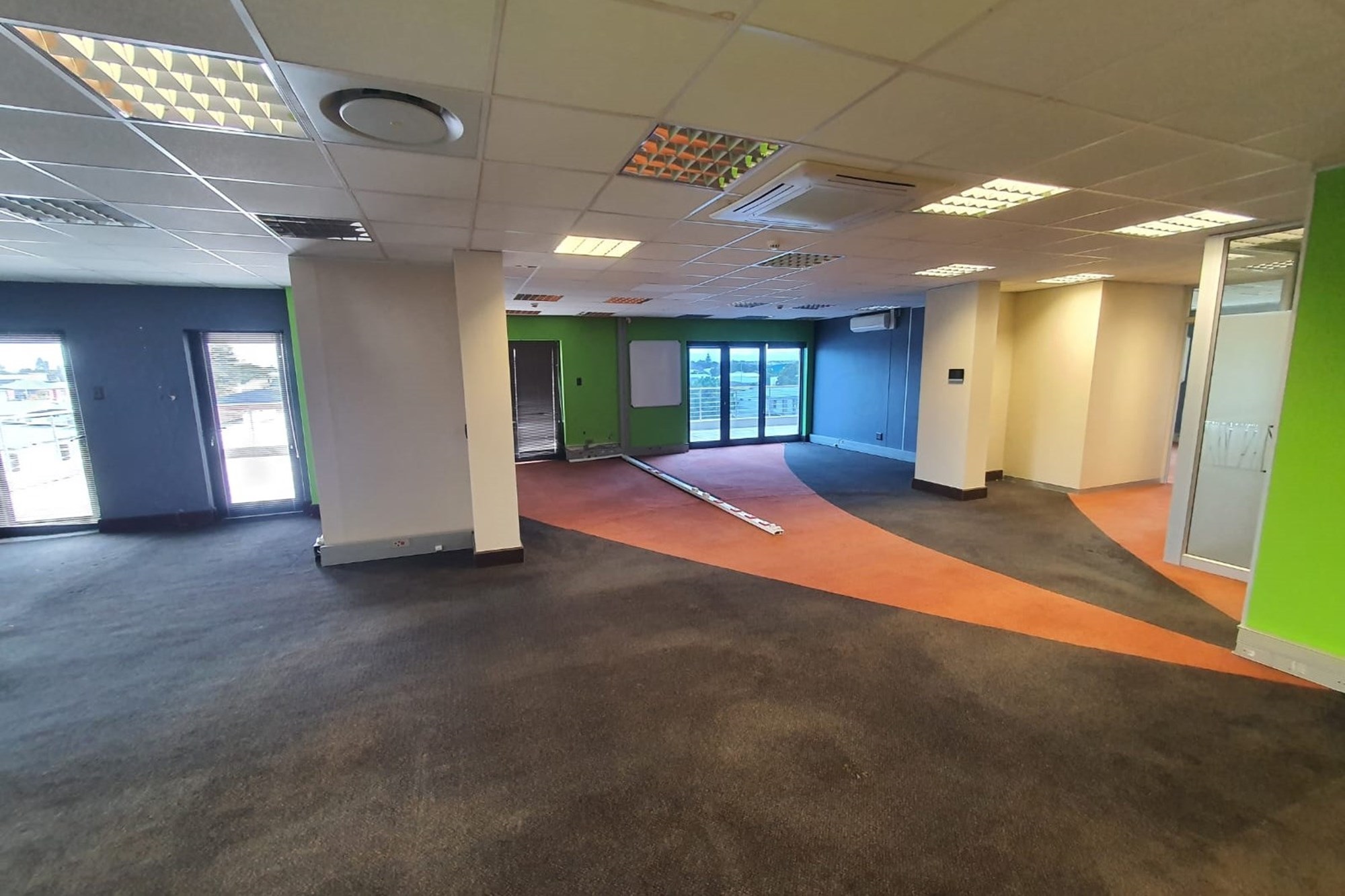 High-quality finishes throughout include air-conditioning, fibre-ready connectivity, fitted blinds, and a mix of carpet, tile, and laminated flooring, creating a modern and comfortable workspace.