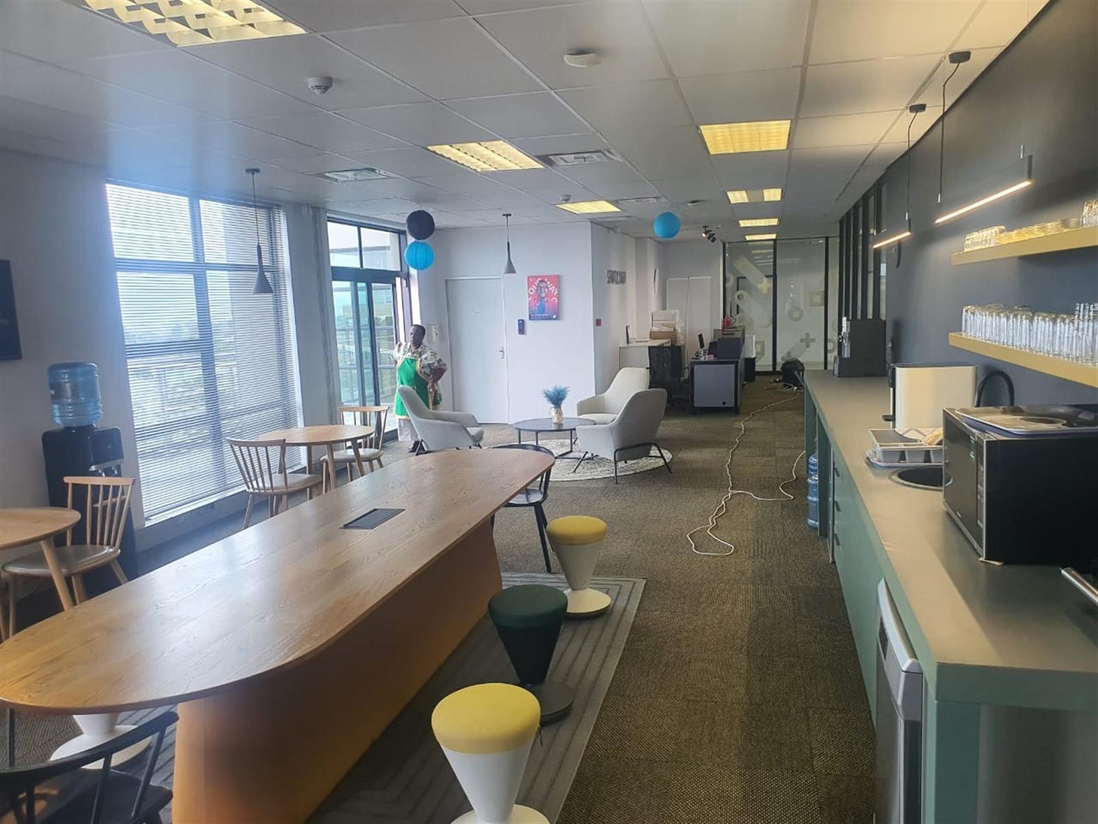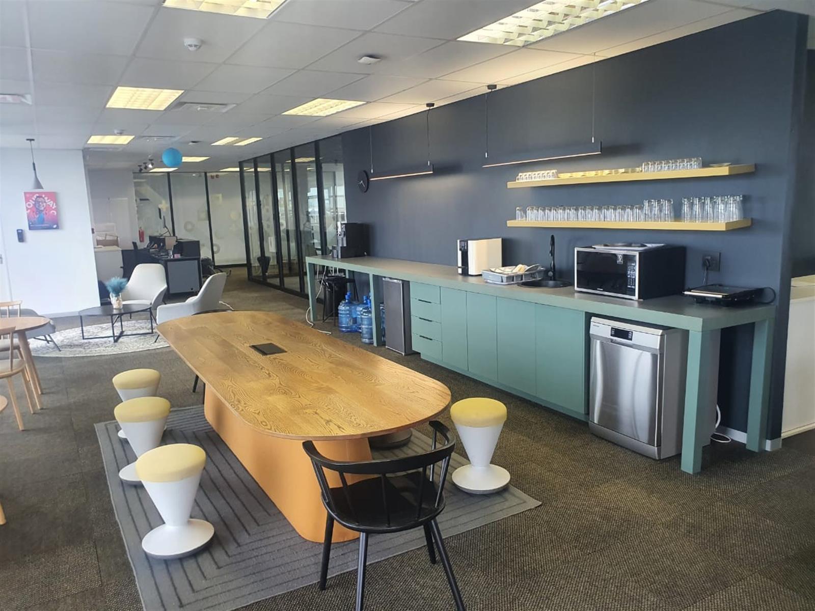 Additional amenities include separate male and female ablutions, a modern kitchen, and a large open-plan pause and entertainment area—perfect for staff interaction or informal meetings. Three private patio areas provide breathtaking 360-degree views, adding to the exclusivity of this premium space.