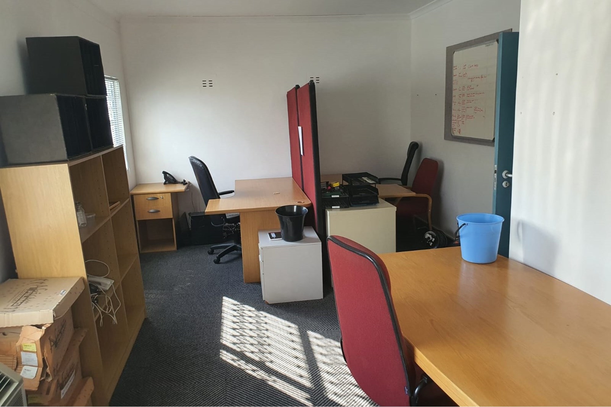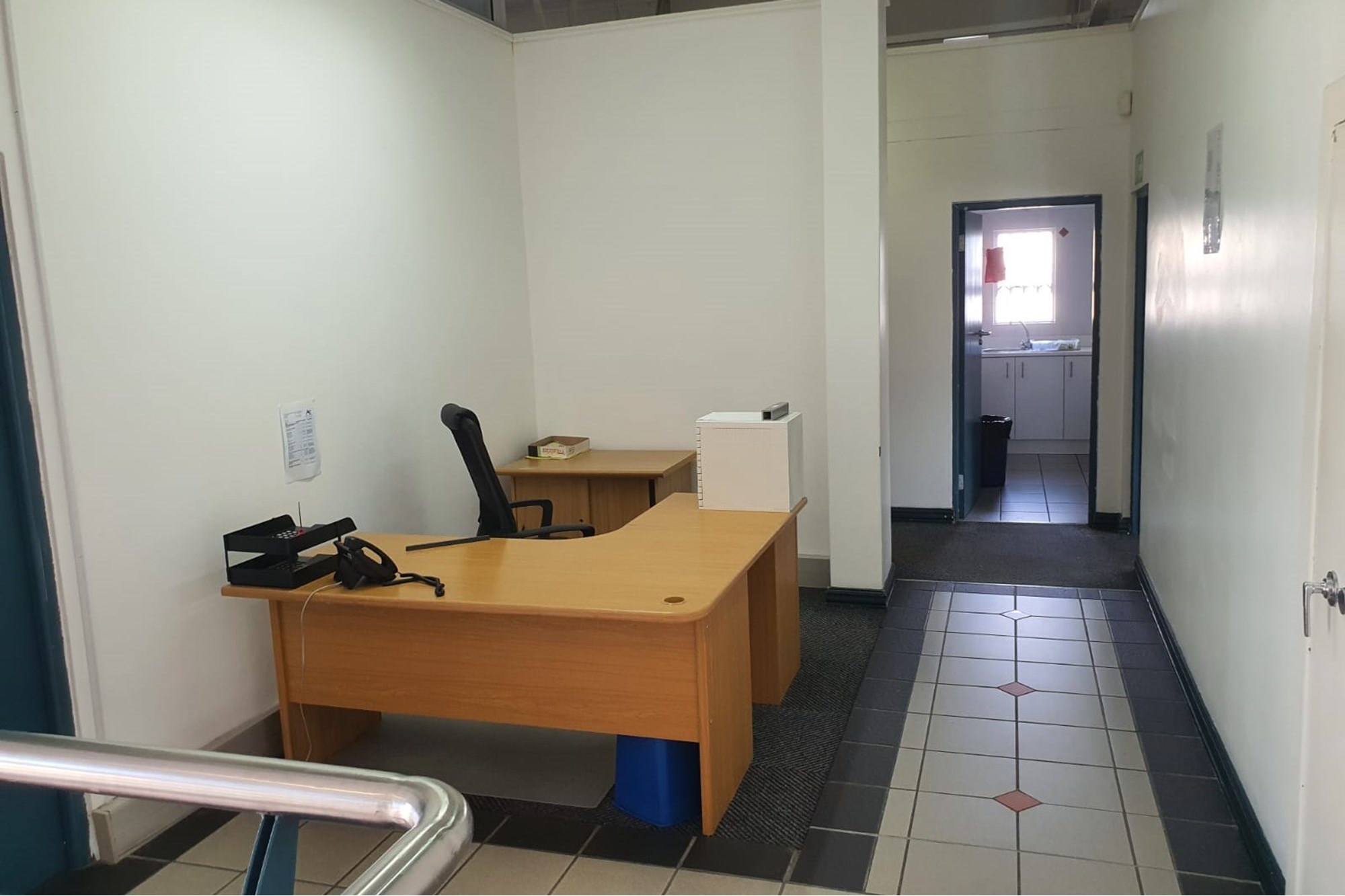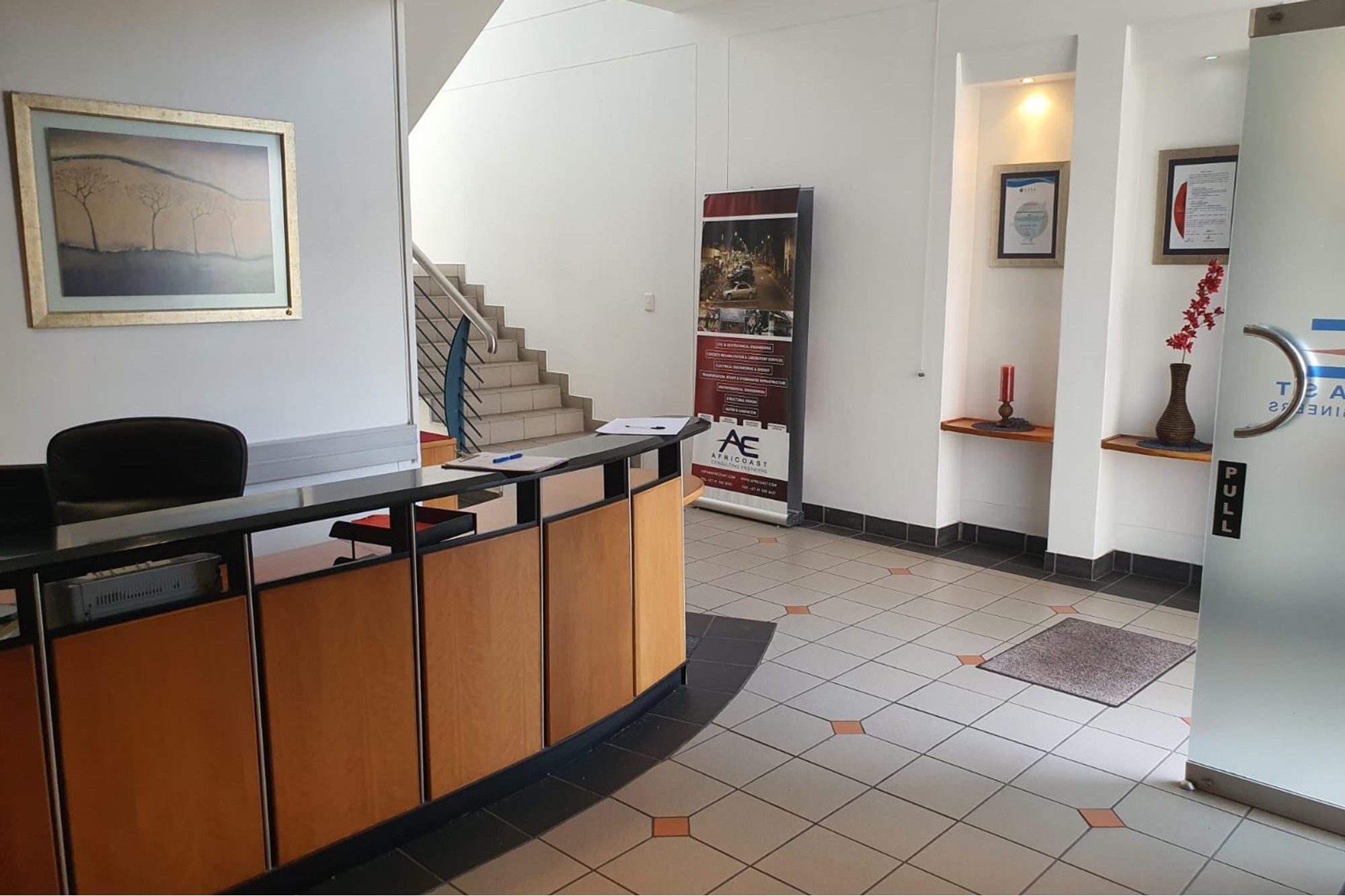 The ground floor features a large, air-conditioned reception area that opens onto an enclosed braai and entertainment space—perfect for informal meetings or staff functions. It also includes a spacious air-conditioned boardroom, an open-plan office area, as well as separate male and female ablutions and a kitchen for staff convenience.