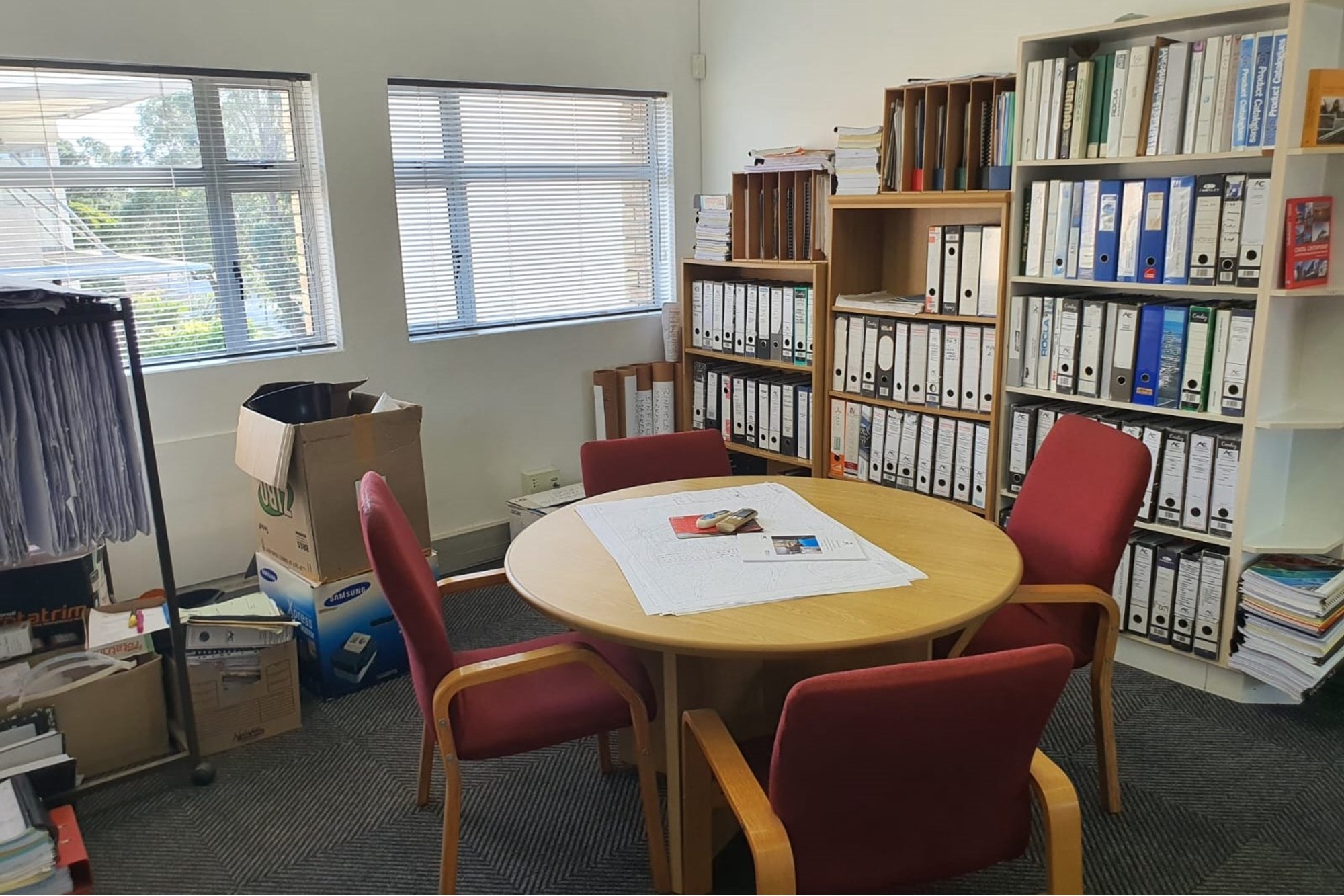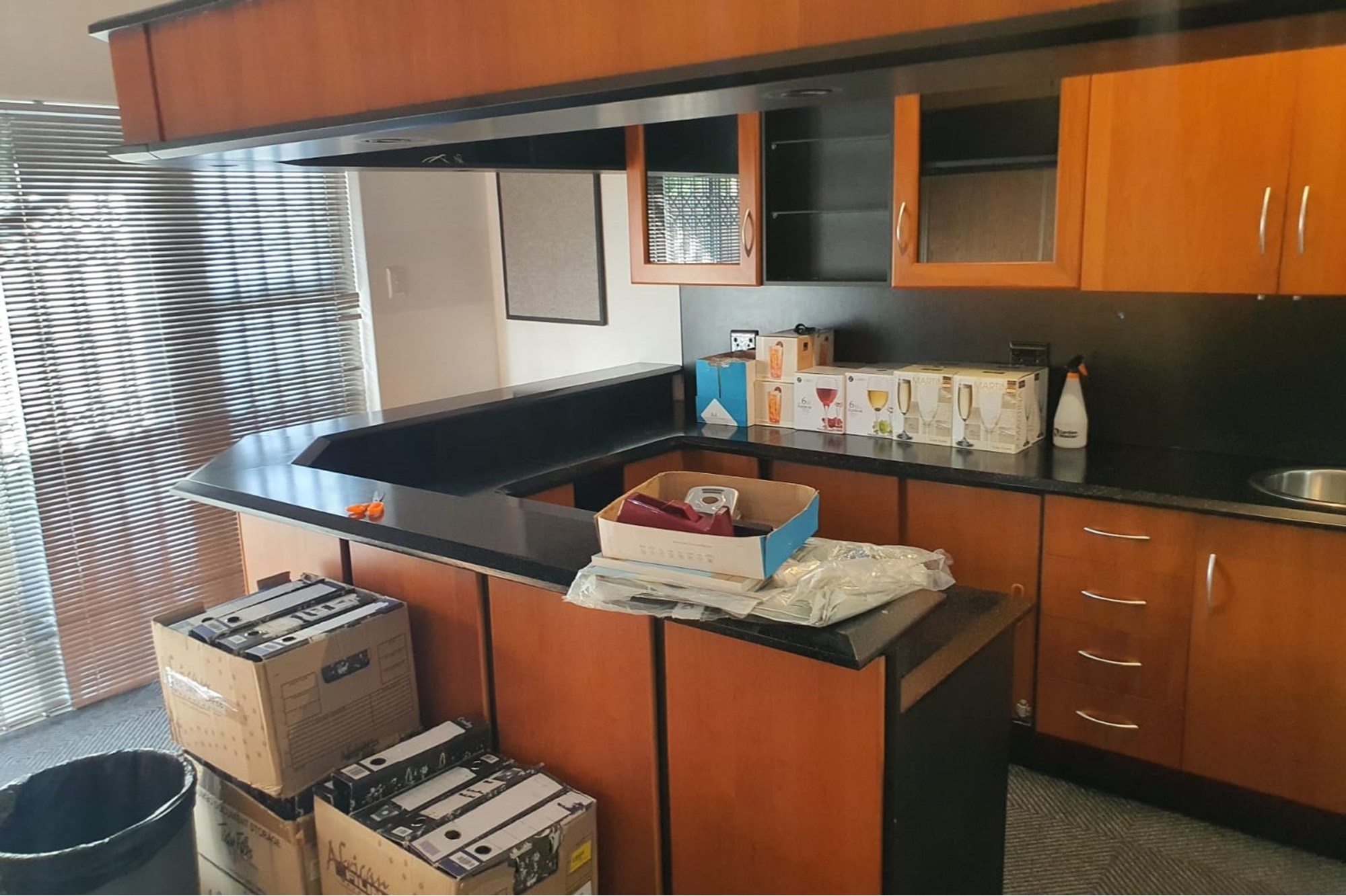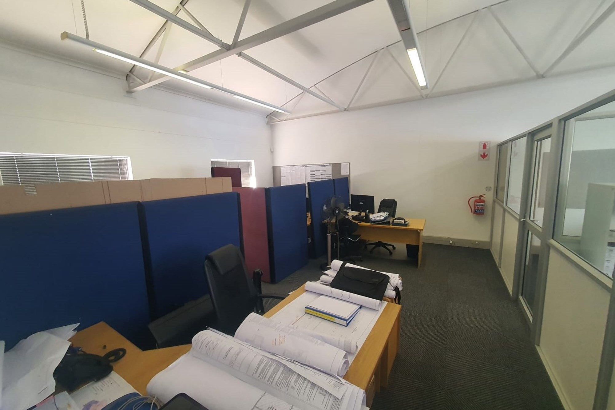 The ground floor features a large, air-conditioned reception area that opens onto an enclosed braai and entertainment space—perfect for informal meetings or staff functions. It also includes a spacious air-conditioned boardroom, an open-plan office area, as well as separate male and female ablutions and a kitchen for staff convenience.