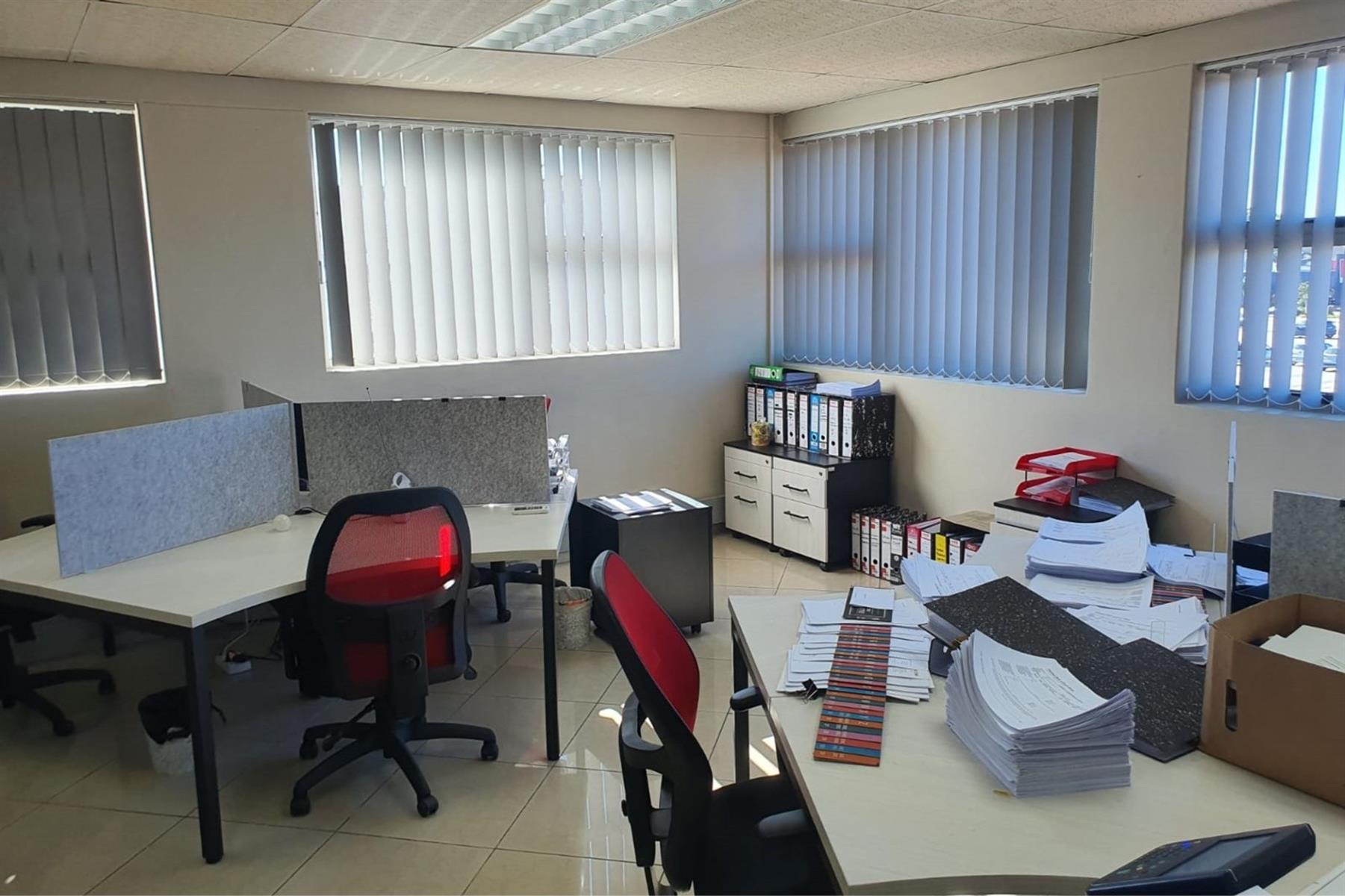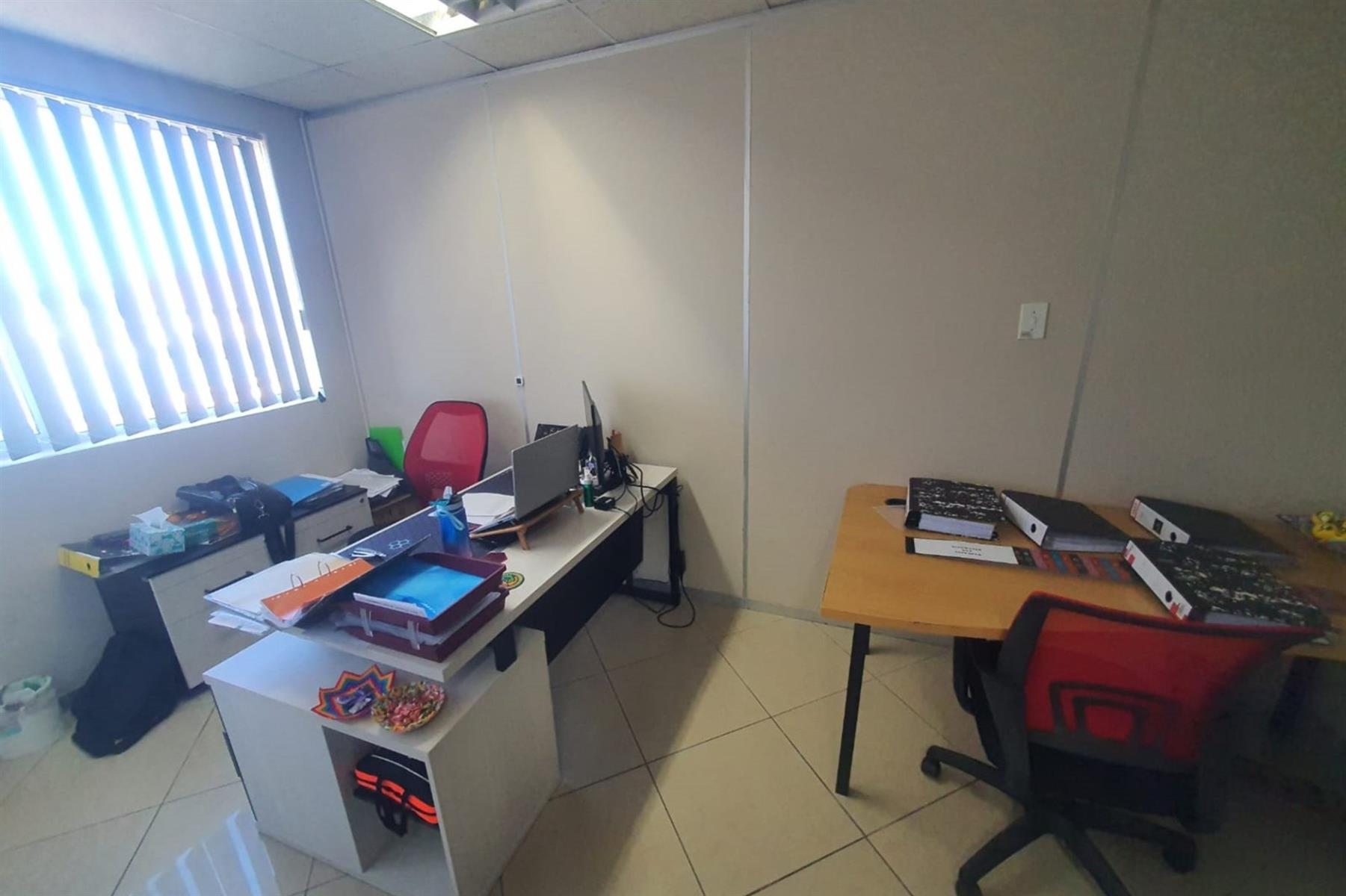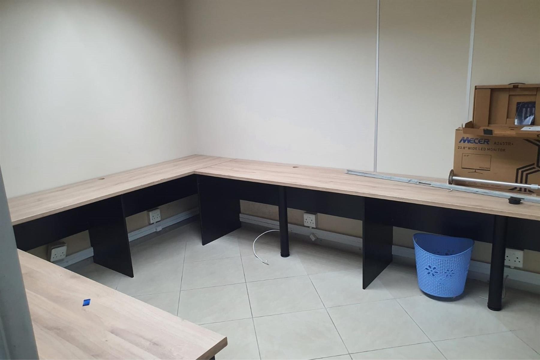 The space comprises a large modern air-conditioned reception area, eight individual air-conditioned offices, and two spacious open-plan areas ideal for team collaboration. A well-appointed modern kitchen adds to the functionality, while communal male and female ablutions are located on the same floor.