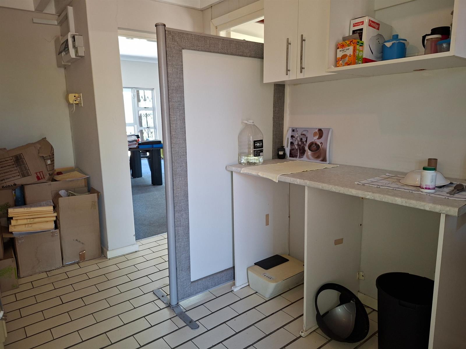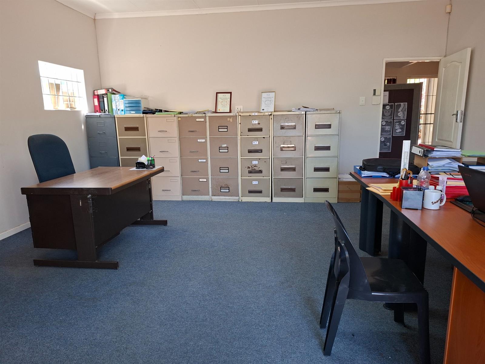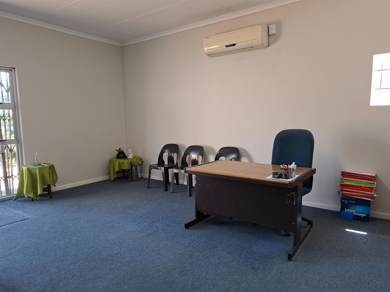 This versatile workspace features a generous open-plan area ideal for desks, shared workstations, or collaborative teams. A separate enclosed office at the rear provides privacy for meetings, consultations, or management use. The space includes a functional kitchen area, making it convenient for day-to-day operations and longer working hours.